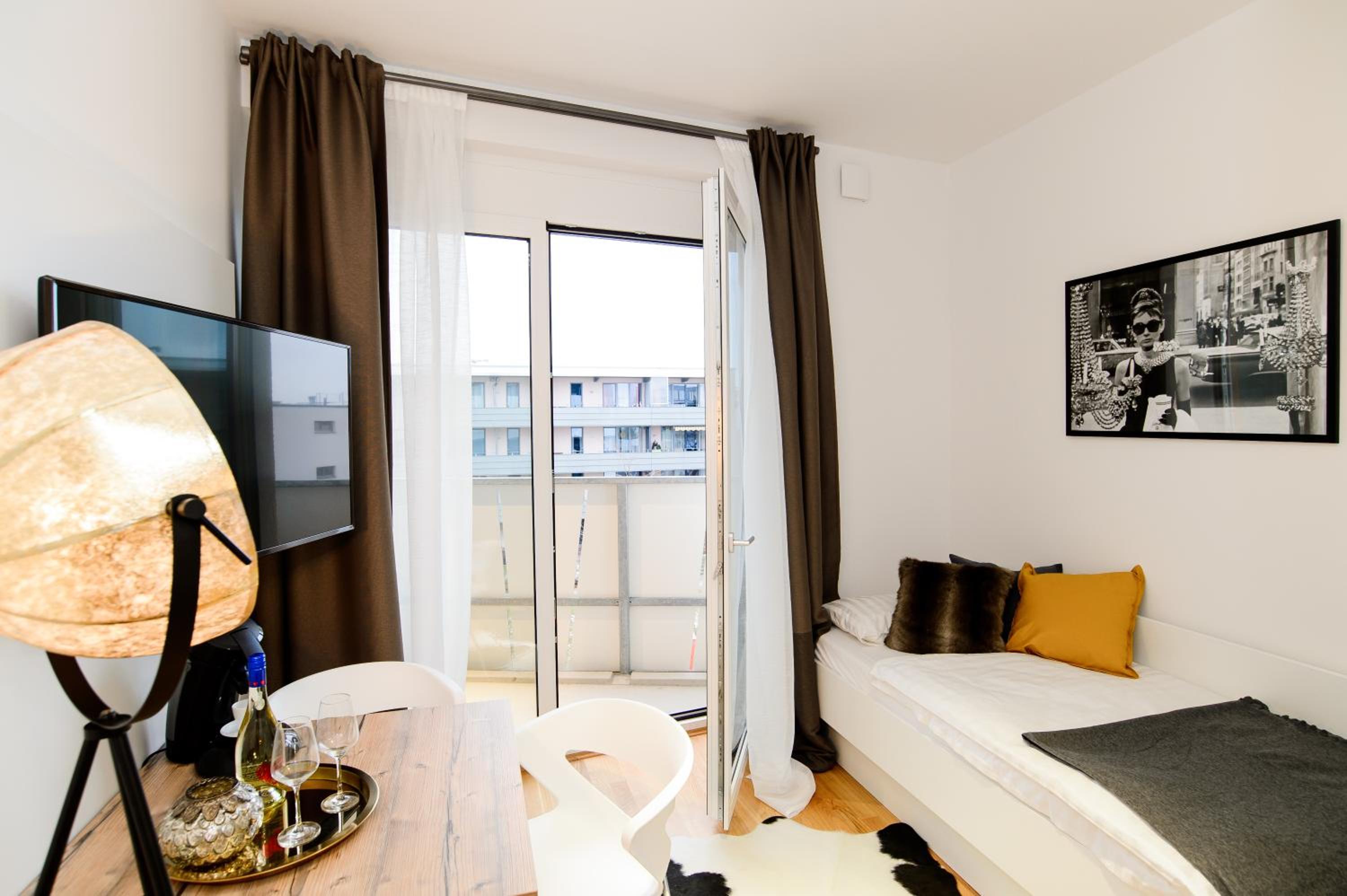 Apart Hotel Messe Munich - my room Apartments offers environmentally friendly accommodation close to ICM-Internationales Congress Center Munich. The property provides allergy-free units and features a fully equipped kitchen, balcony, and garden views for a comfortable stay.