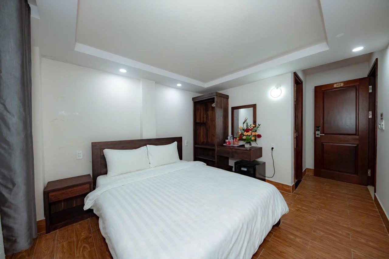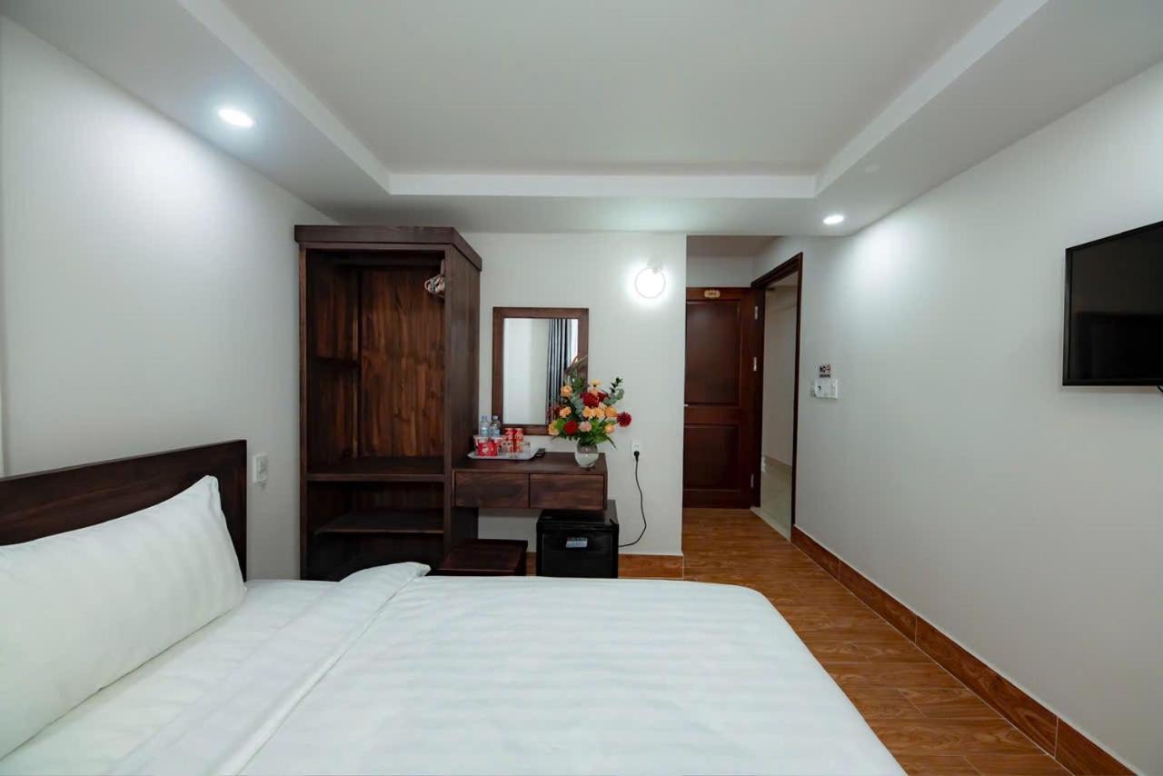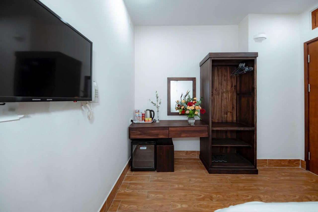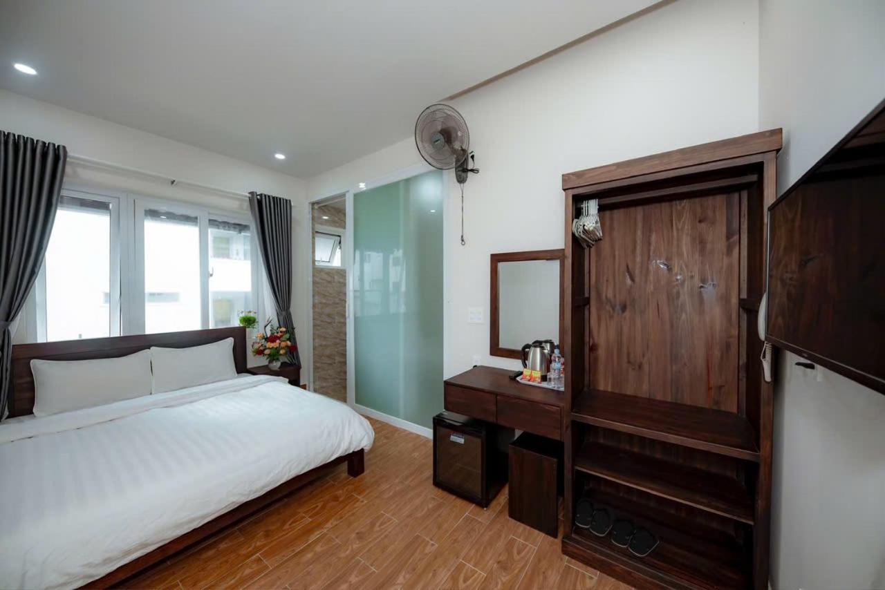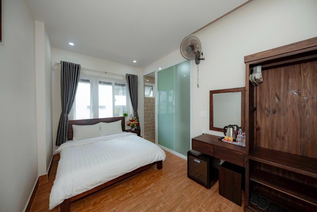 Each room at An Vy House is thoughtfully equipped with modern amenities including a flat-screen TV, private bathroom, and cozy bedding, providing a comfortable stay for guests to unwind after a day of sightseeing.