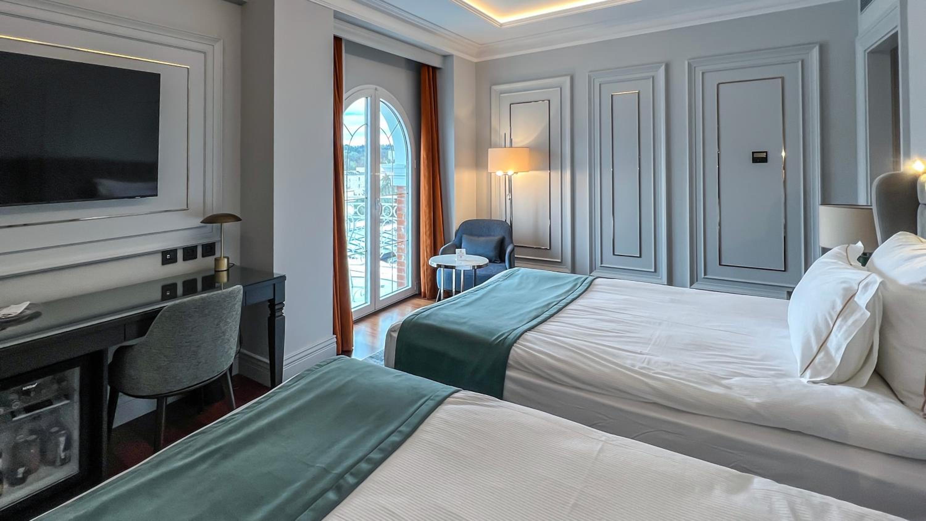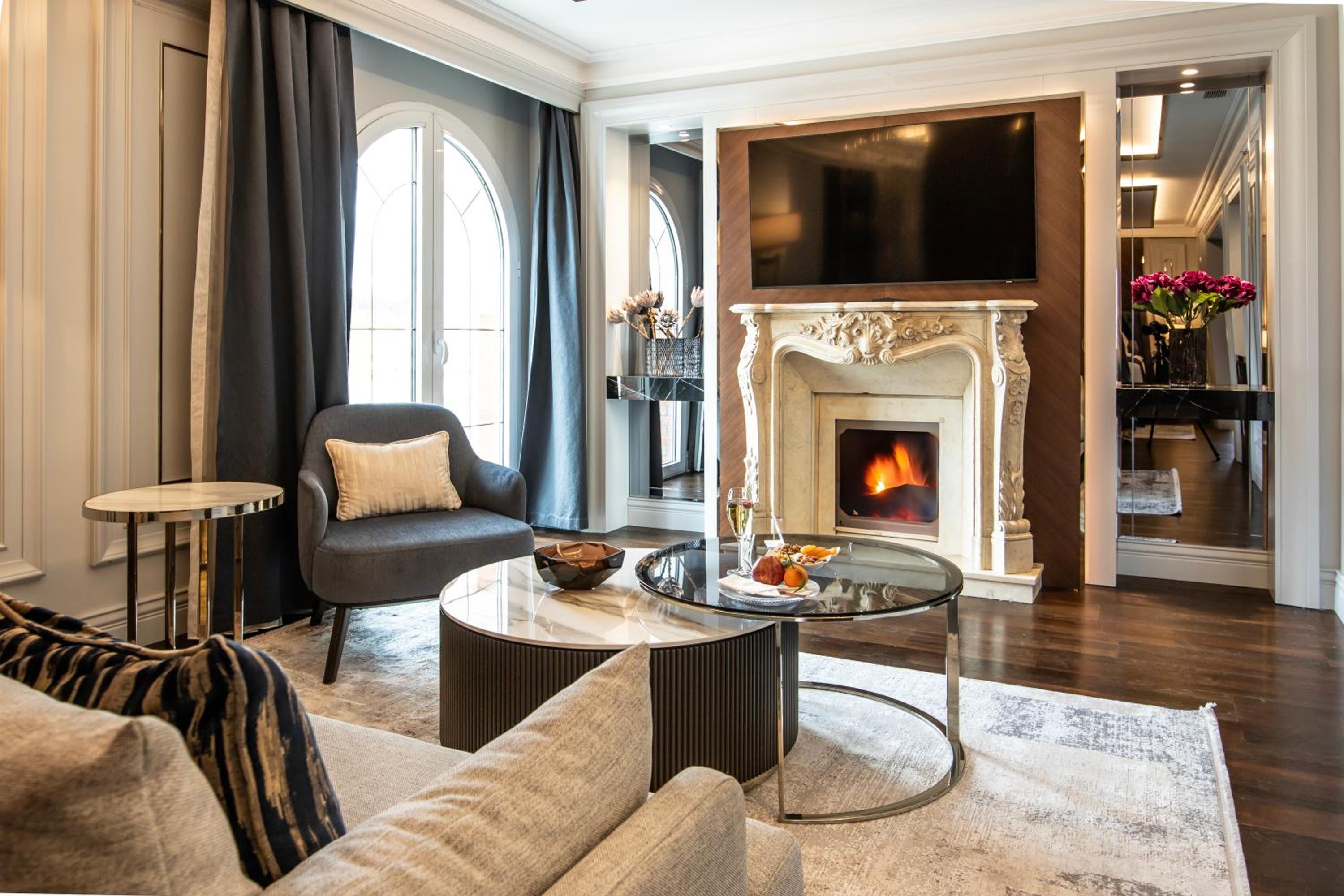 Experience lavish furnishings and modern amenities in our accommodation units, including air-conditioning, flat-screen TVs, and French balconies. Enjoy complimentary water, fruit, and deluxe toiletries in each room for a luxurious stay.