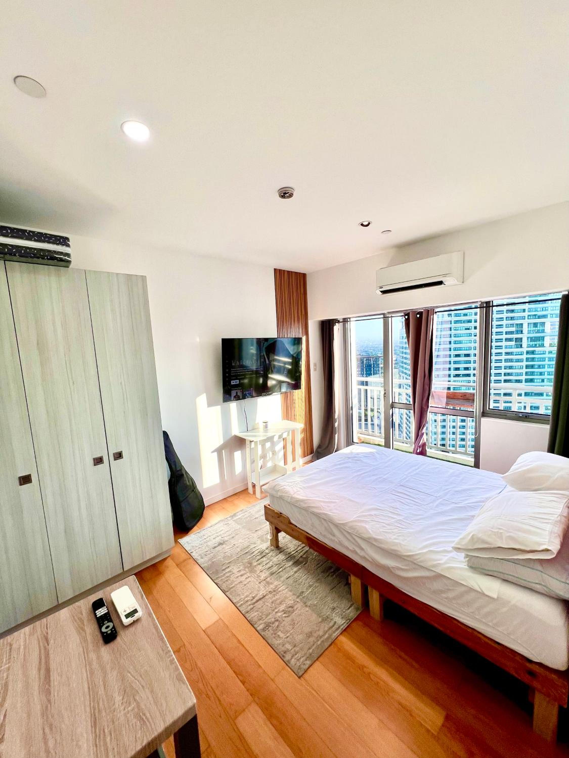 Immaculately clean, functional and well equipped kitchen. Checkin was smooth and comtactless. I stayed solo for this trip but the room had extra beddings good for 3. Owner thoughtful to have a quaint nook for coffee and drinks at the balcony to just savour the stunning views of the Makati skyline! Highly recommended place, clean, cozy, comfortable.