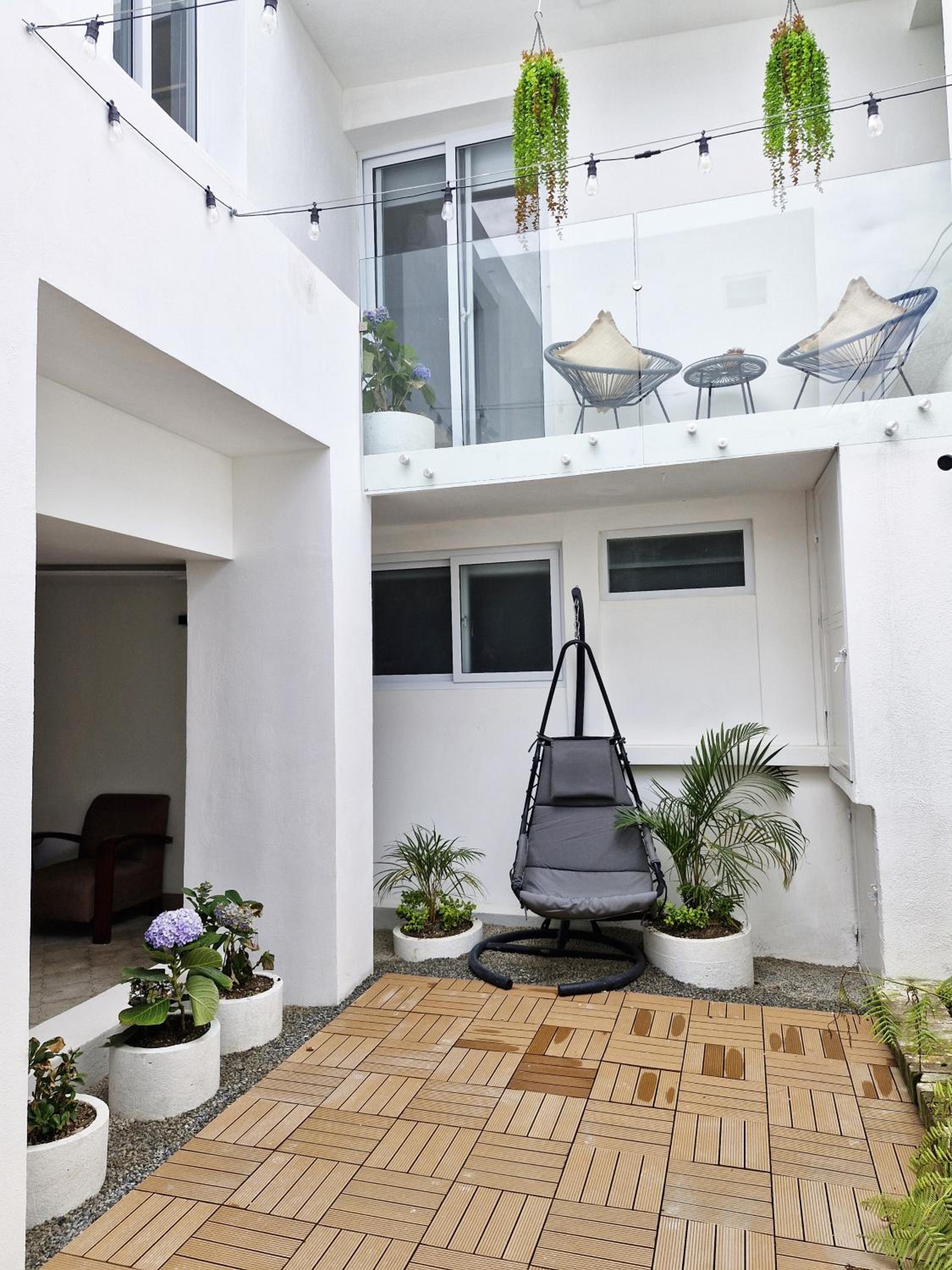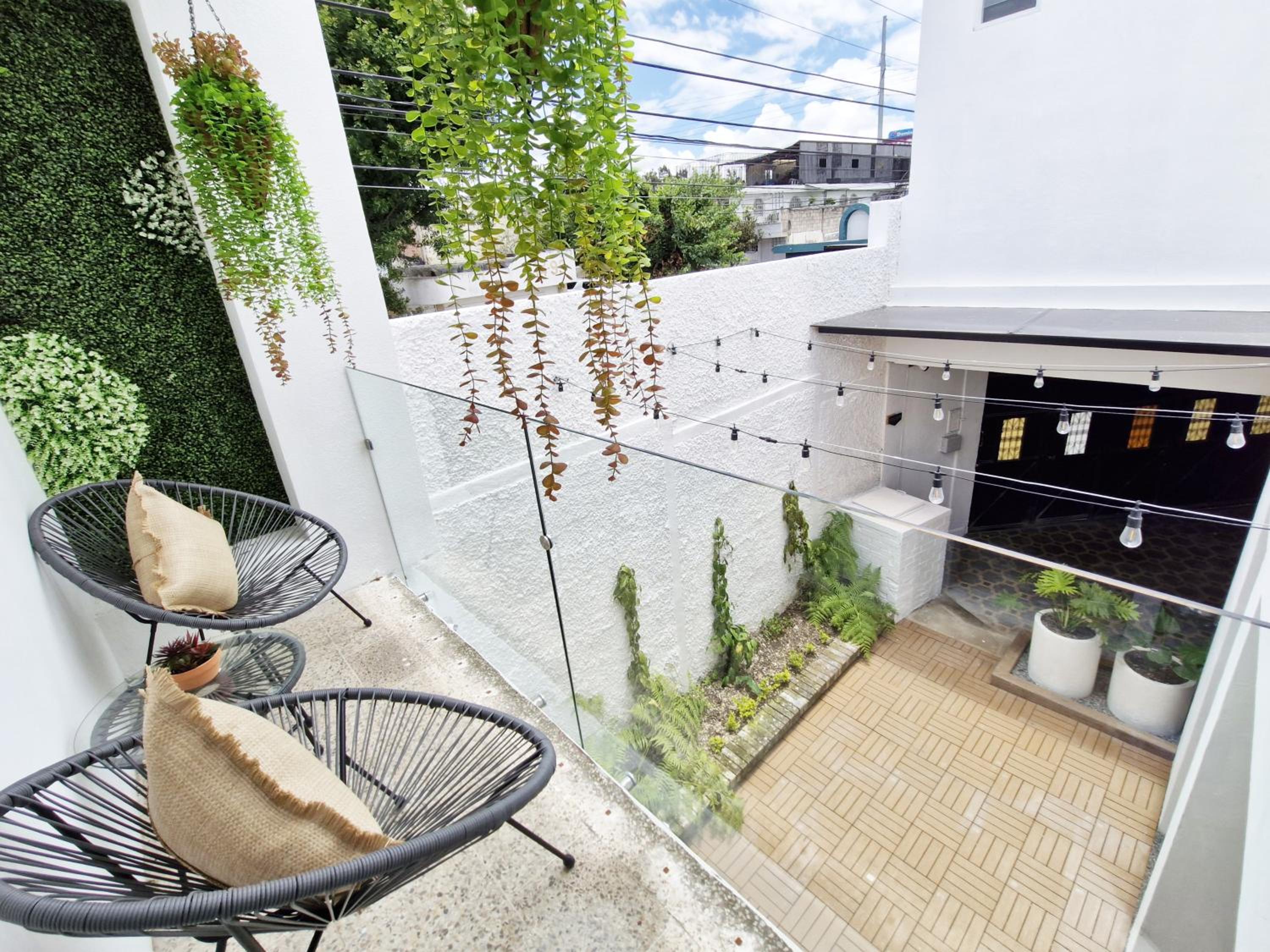Gaze upon the serene garden and inner courtyard views at Amplia, Moderna y Elegante Cerca Tikal Futura y Miraflores H8. This elegant aparthotel boasts modern amenities and stylish decor for a truly luxurious stay.
