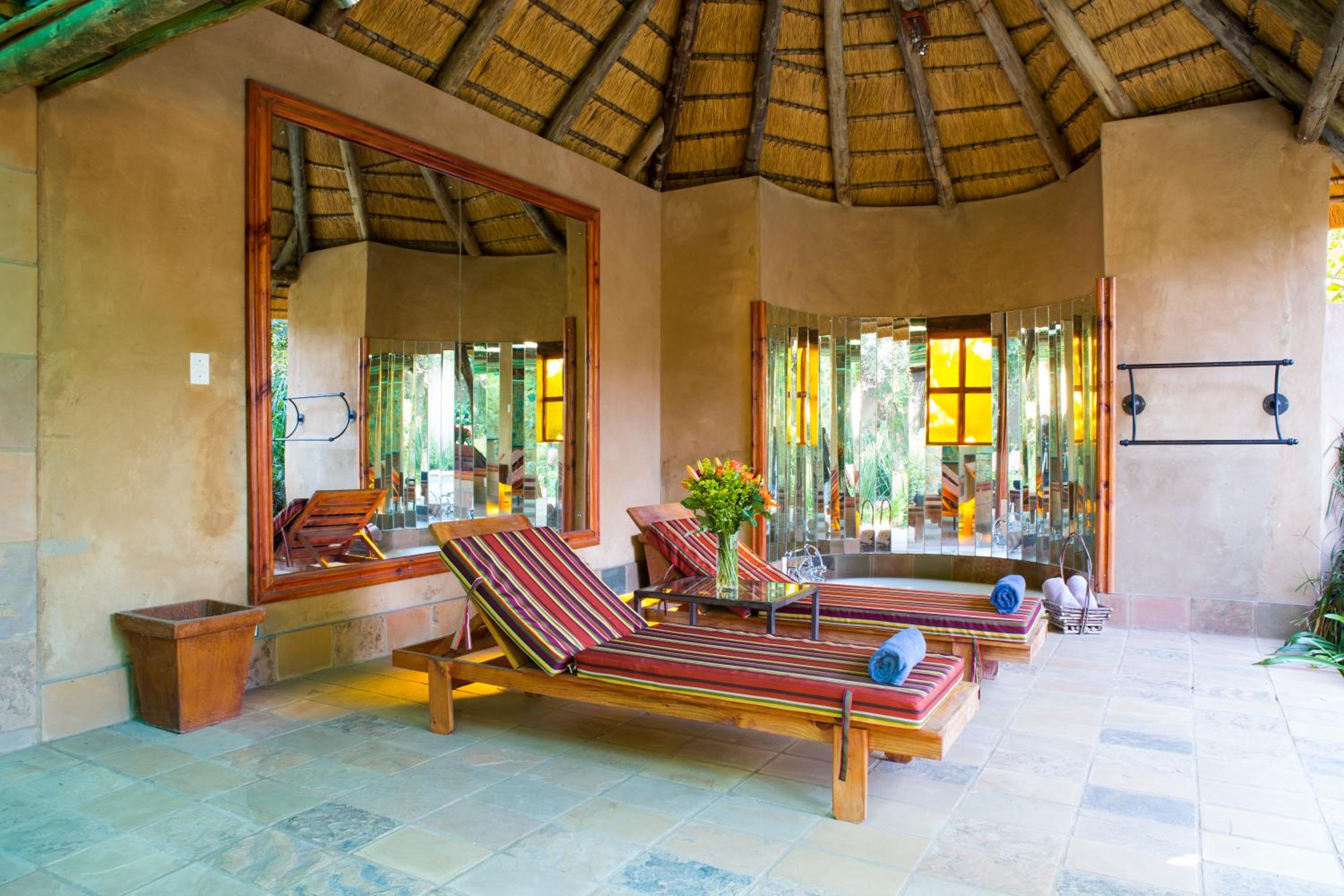 Indulge in the elegantly furnished stone-built thatched rooms and suites equipped with modern amenities. Savor delectable dishes at the Carnivore Restaurant or enjoy traditional barbecues at the Lapa.