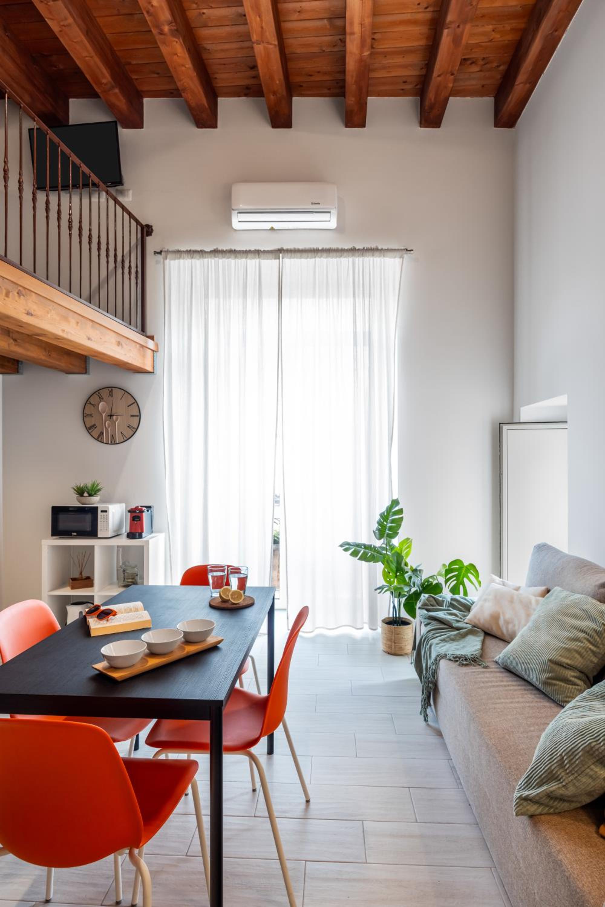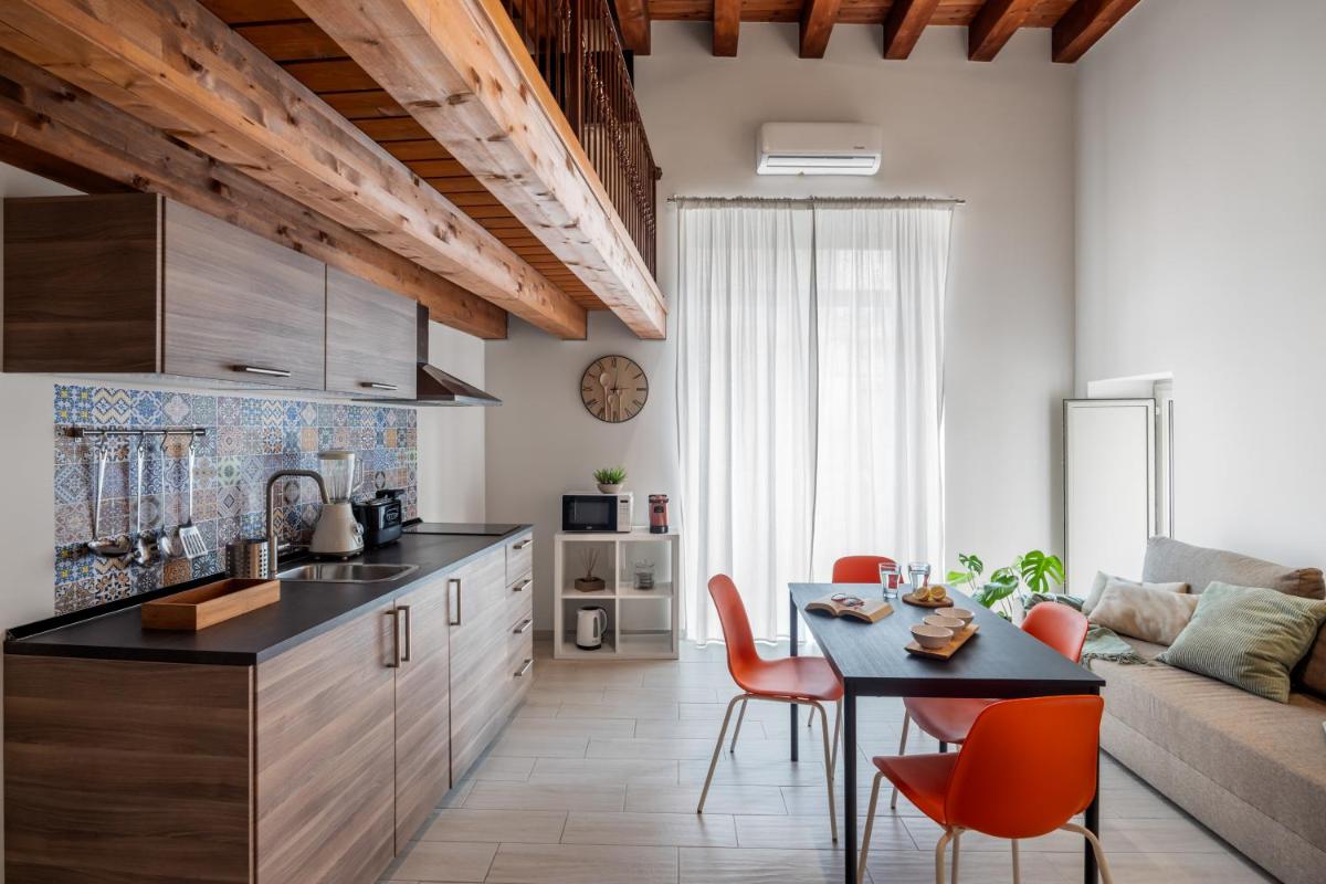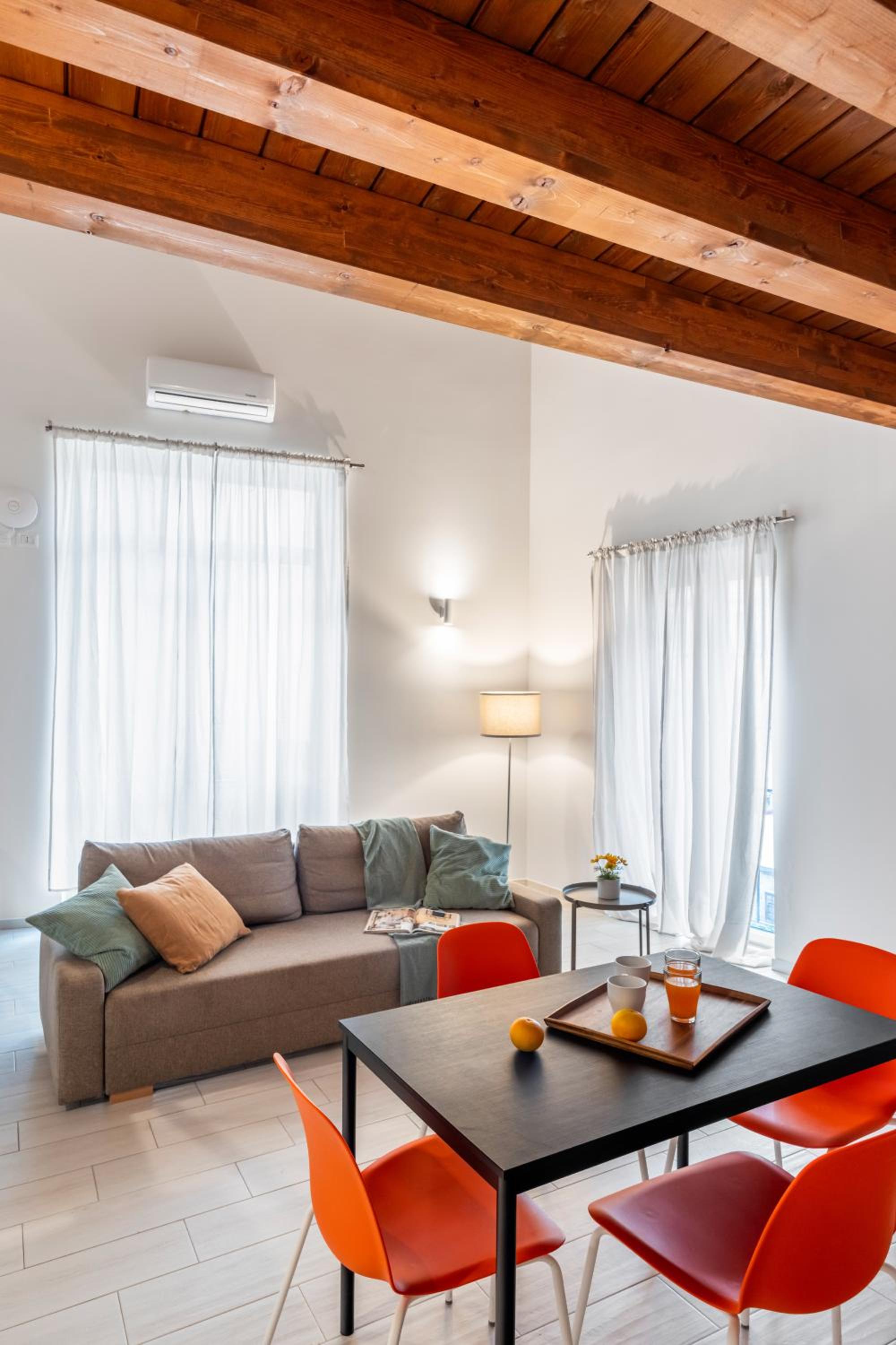 Posizione comodissima per visitare a piedi la città. L'appartamento è ben ristrutturato, all'interno di un palazzo storico; è dotato di ogni sorta di apparecchiatura (macchinetta del caffè con cialde a disposizione, forno a microonde, tostiera, spremiagrumi ecc.). Valerio è stato molto preciso e puntuale nelle comunicazioni. Ci ha fornito informazioni utili per i posti dove cenare e per la prima colazione (stupenda la pasticceria del Chiostro), dove depositare i bagagli, con quali mezzi arrivare dall'aeroporto, ecc.