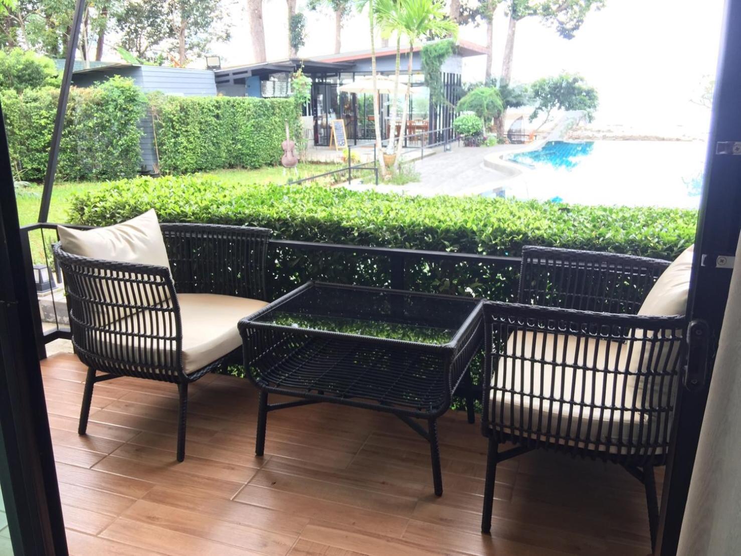 It has a beatiful garden with the pool in the middle which is always a few steps away from your room.