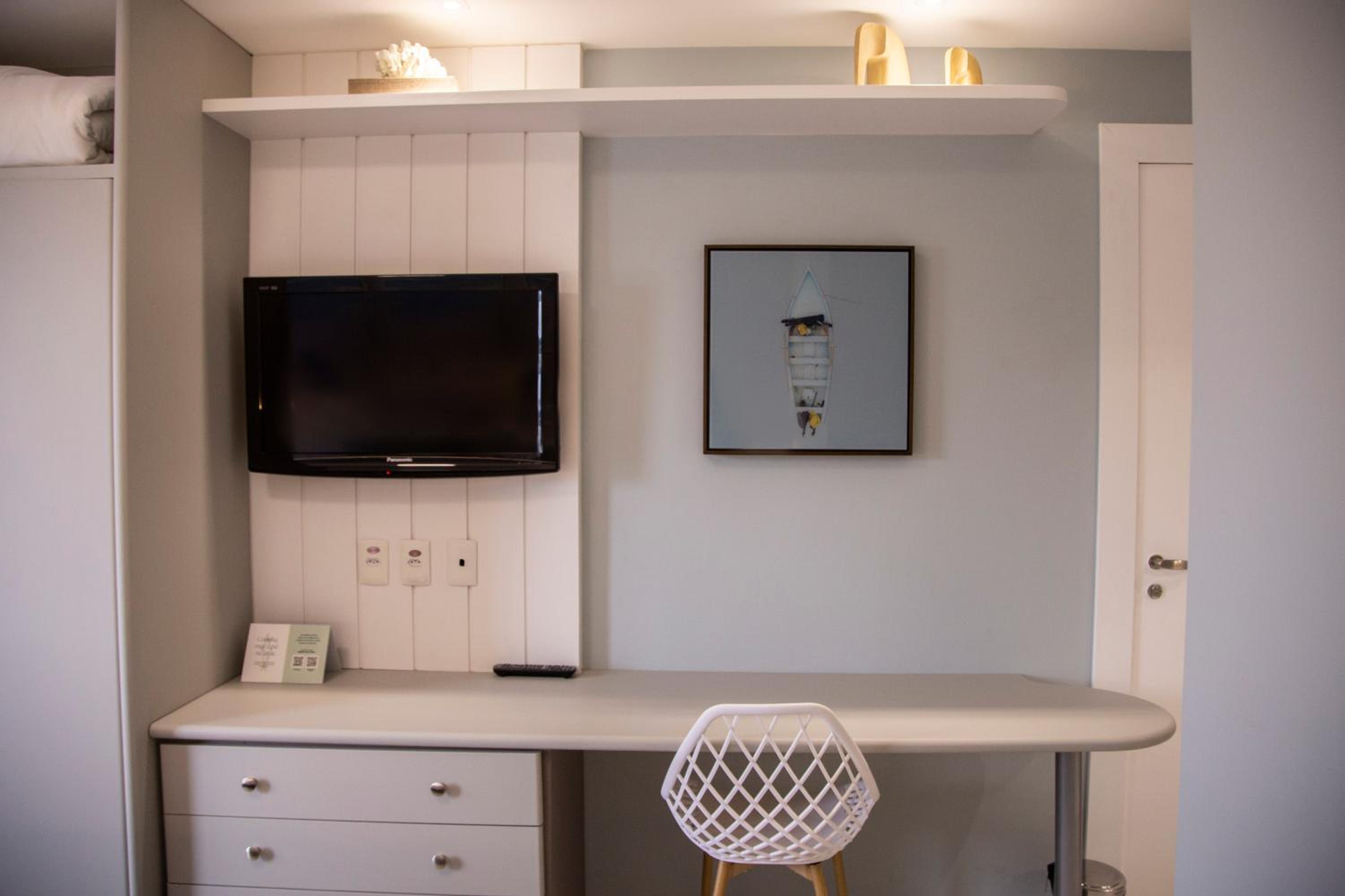 Tv do quarto antiga, não era smart e fez falta no dia de chuva.