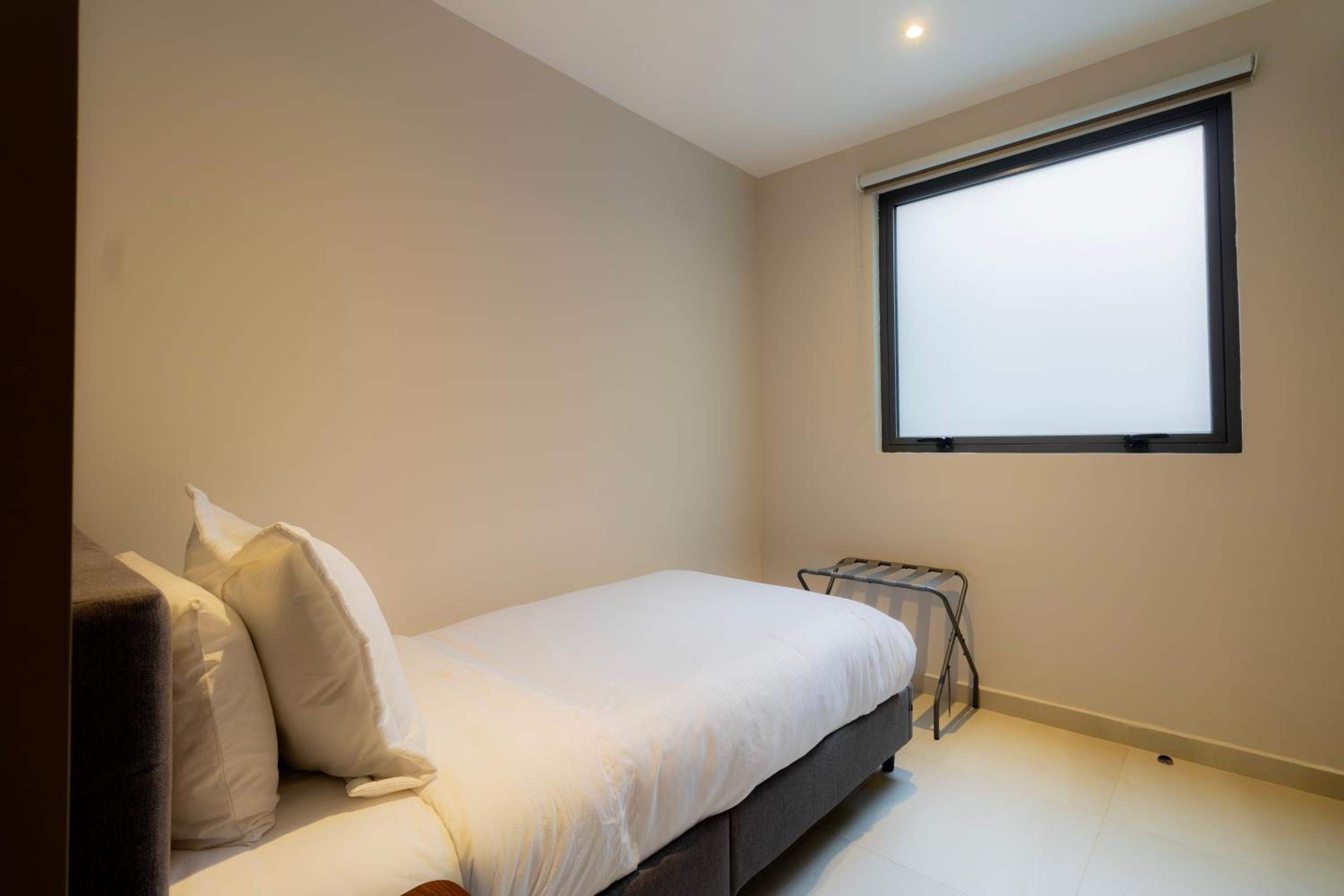 Decía 3 habitaciones, claramente son 2 y una que se usa en Latinoamérica para el servicio doméstico con una pequeña cama, sin closet; solo un pequeño estante para poner alguna cosa y el baño sin mueble ni conexión eléctrica para una rasuradora o un secador de pelo. Era interior lo cual tampoco fue el mejor escenario. Por lo demás, está muy bien ubicado. Por lo demás estaba bien.