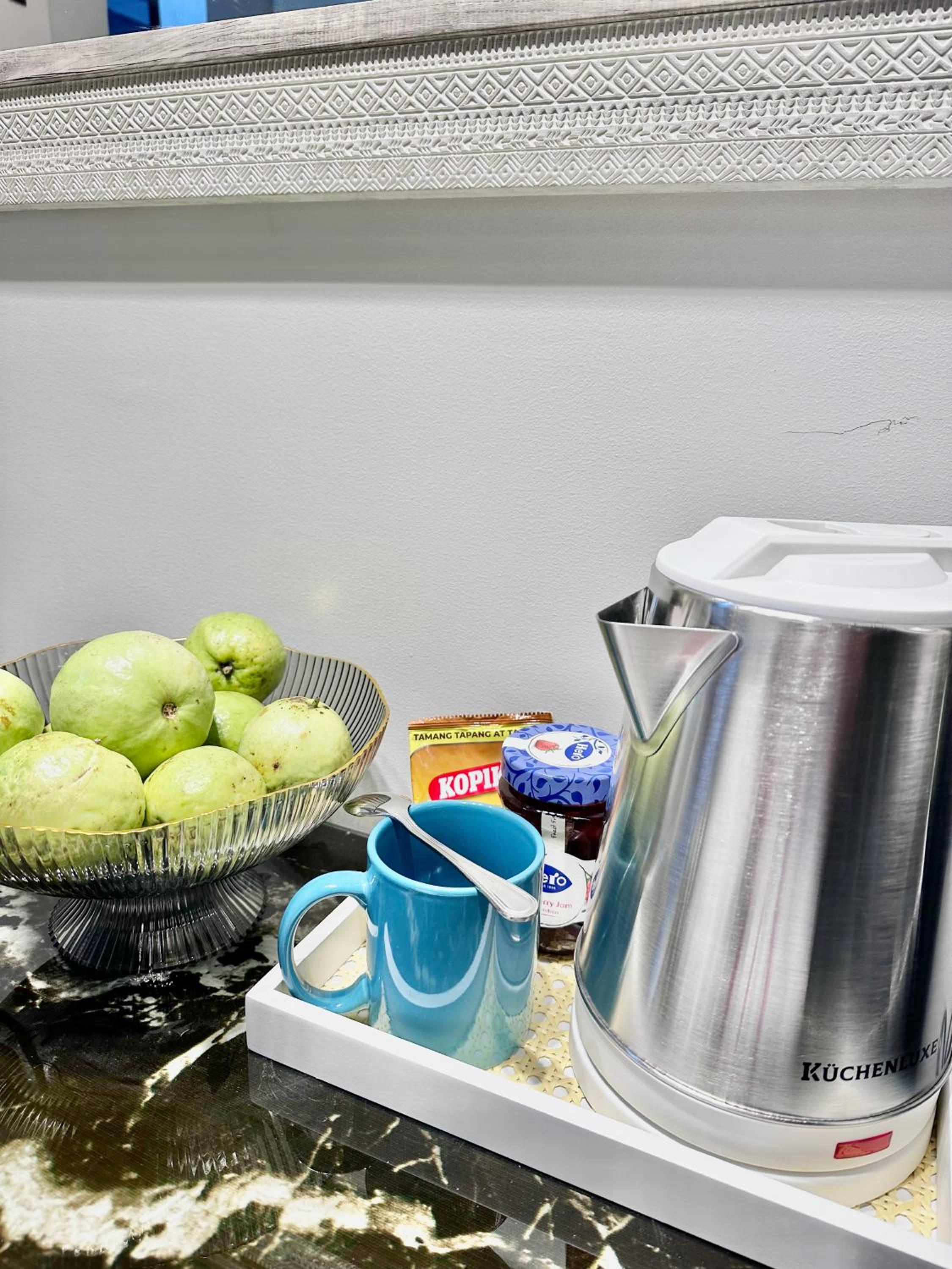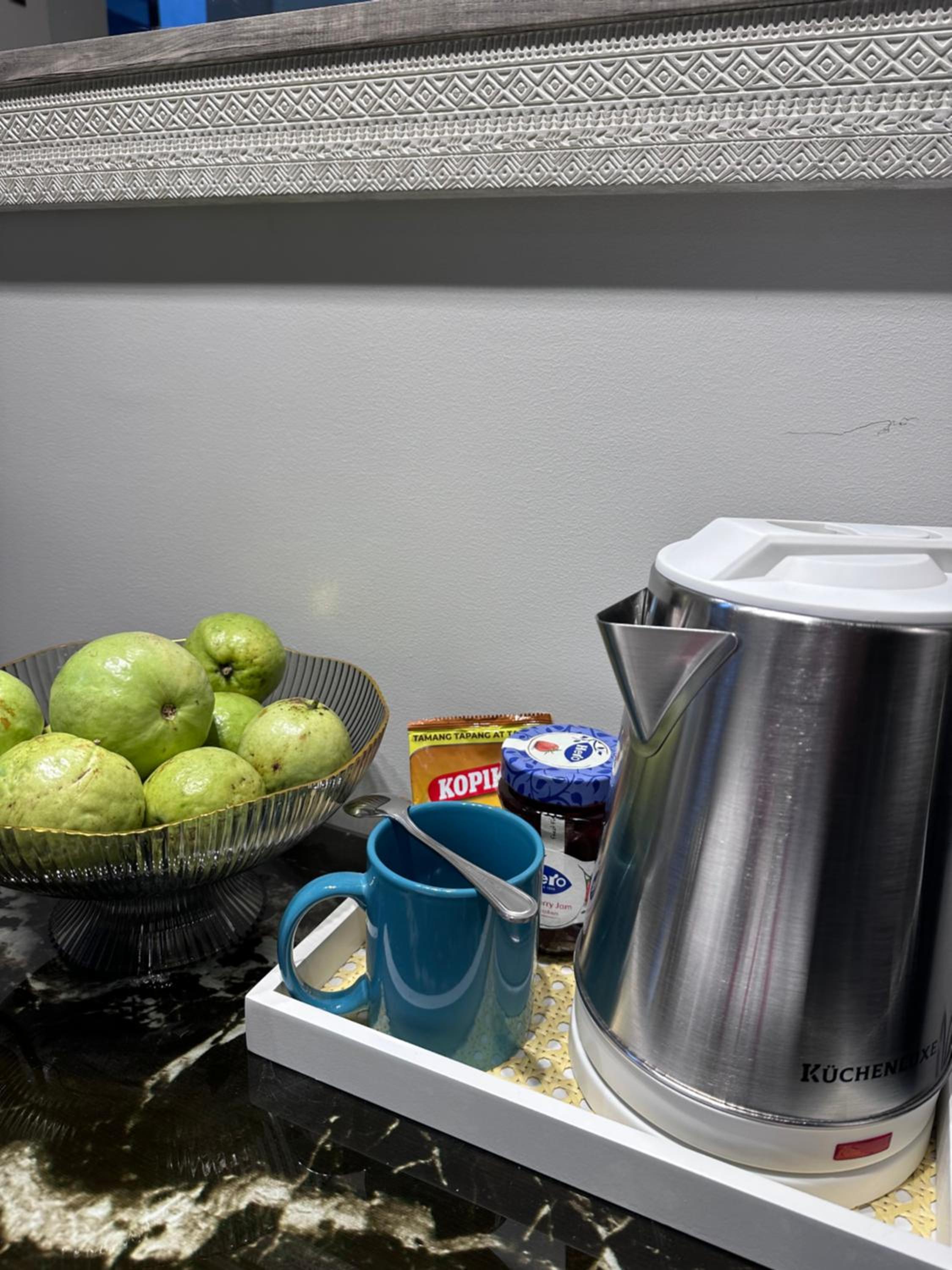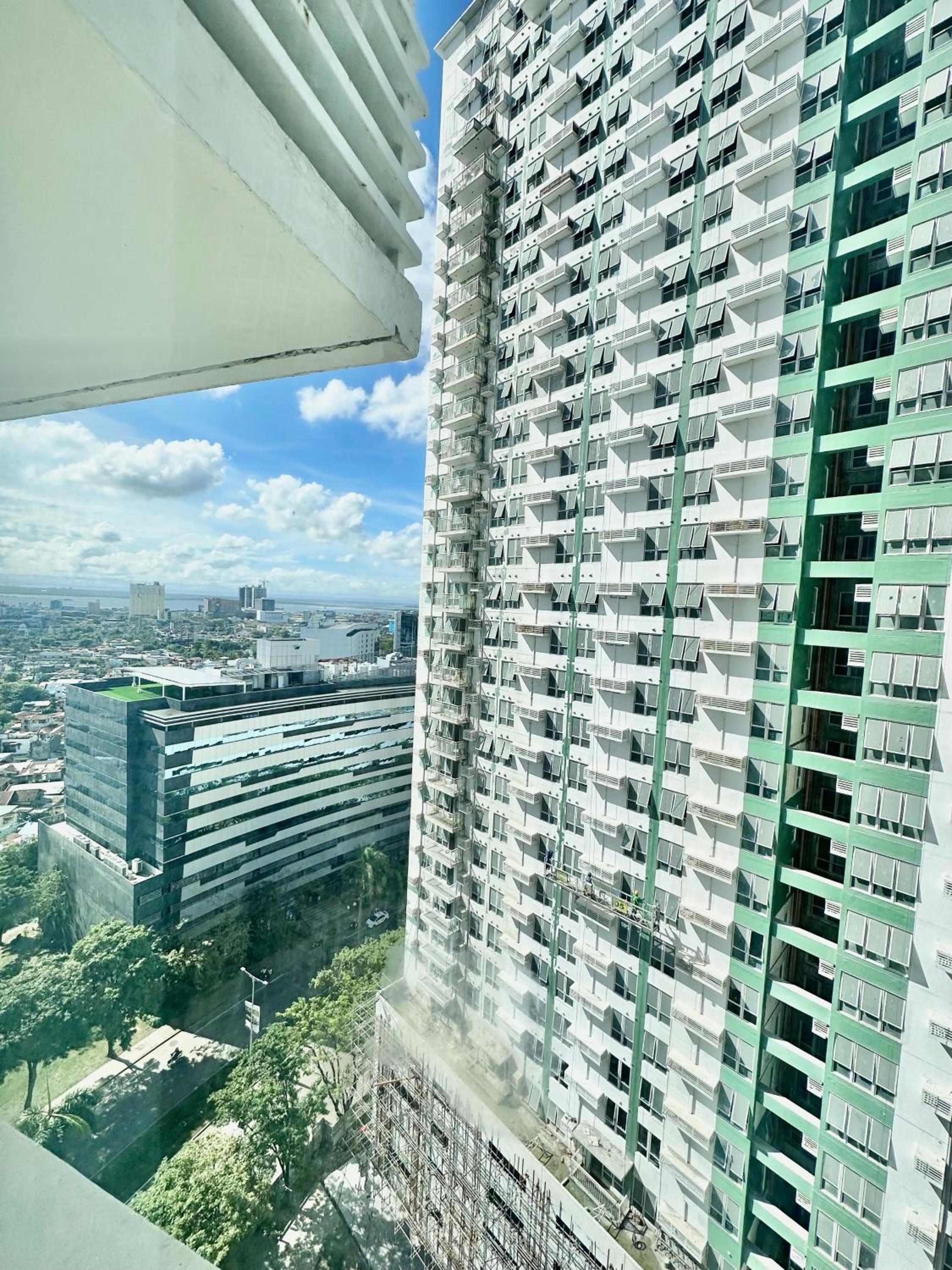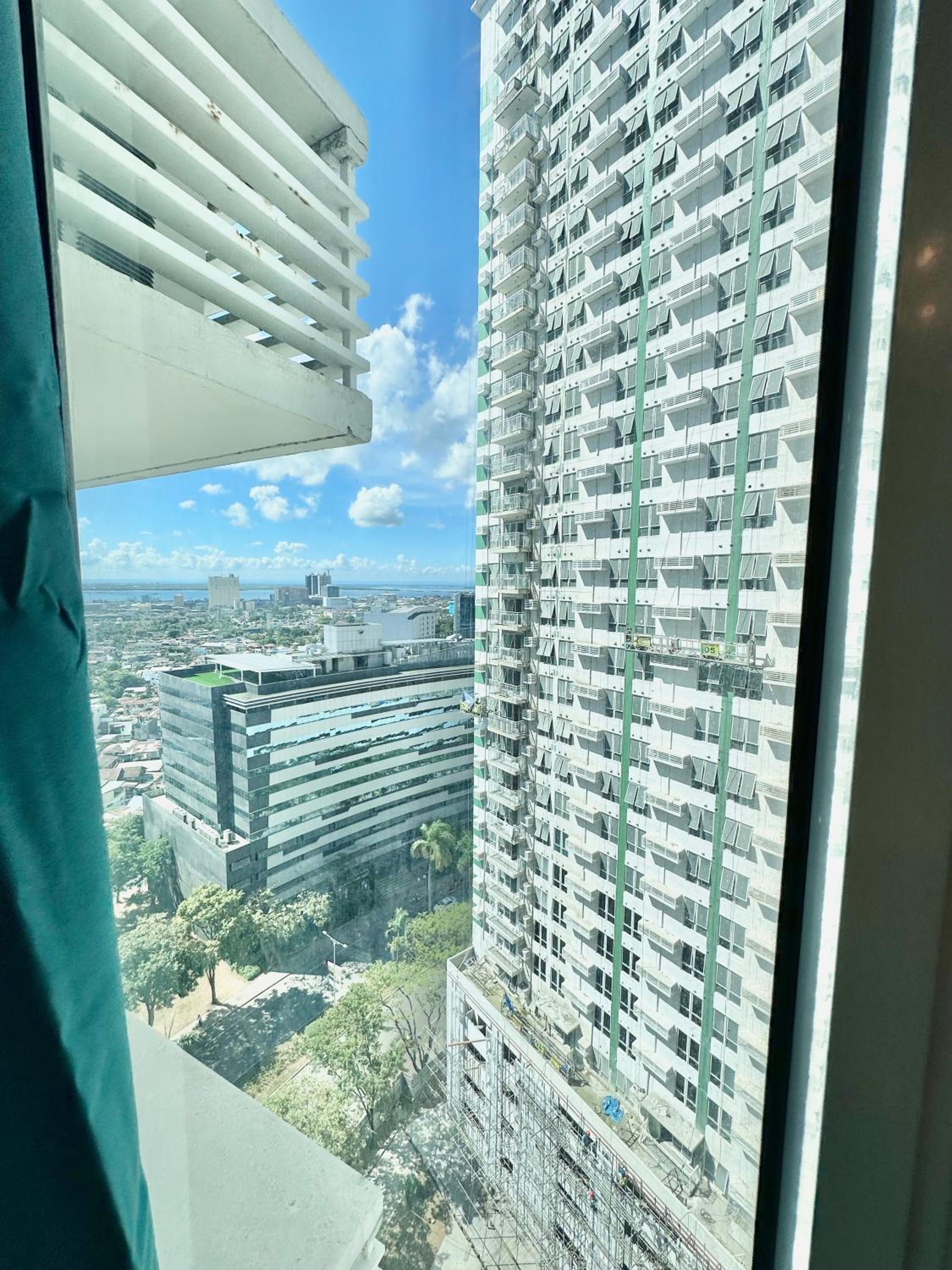 Queen Size Studio in Solinea, Cebu City offers a stylish and comfortable stay with city views, a kitchen with modern amenities, and a private bathroom with bathrobes and slippers.