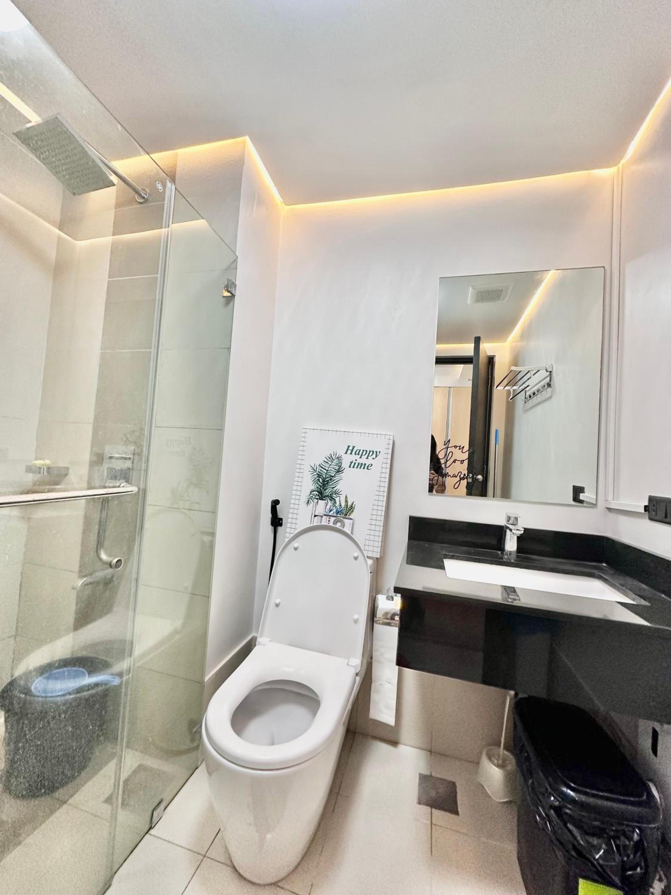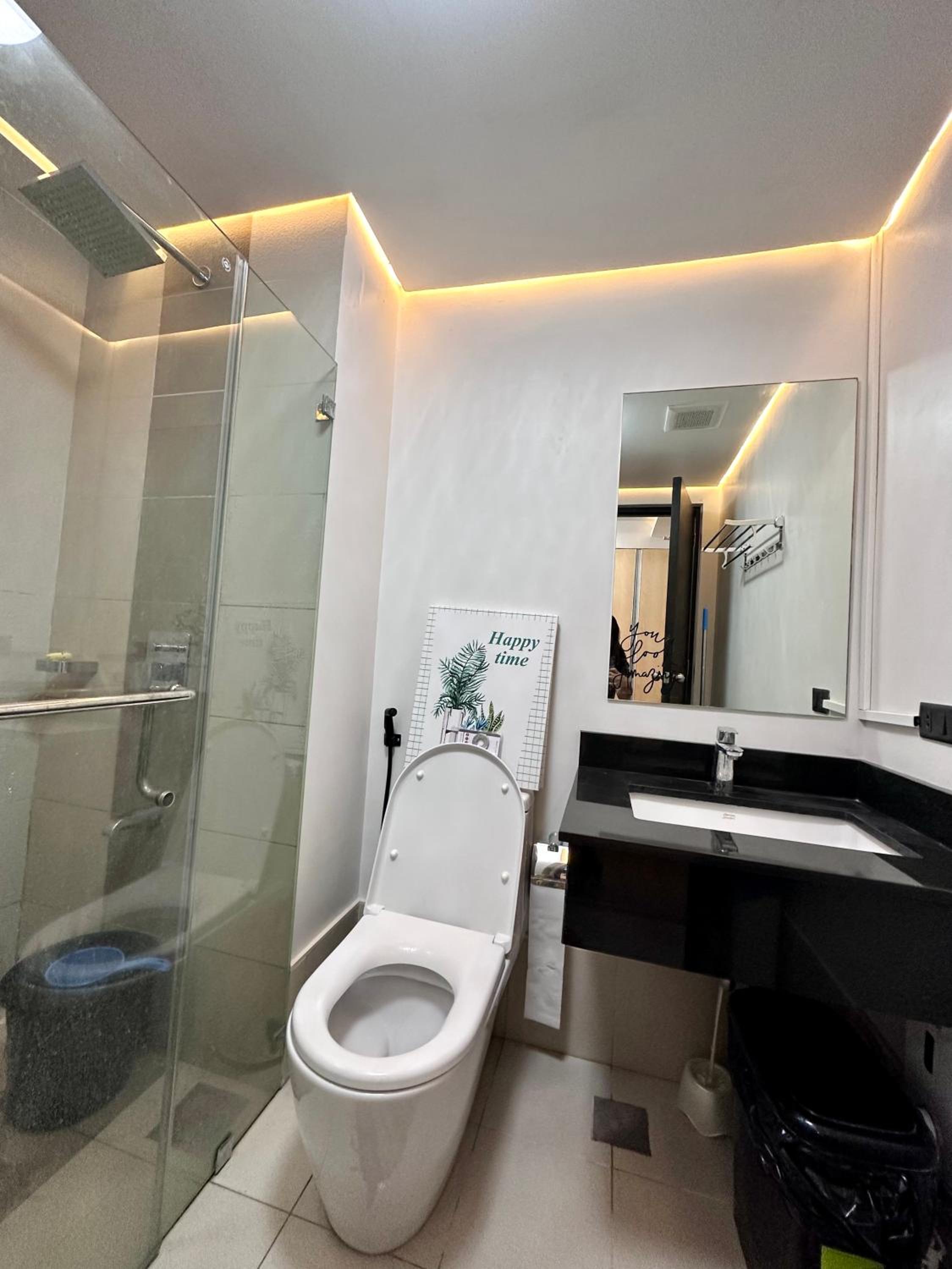 Advertise that has shower but shower does not even work properly. 0 communication from the host, apart from the check in details given. Host did not let us know ahead of time regarding water interruption —It was overnight water interruption but communication is key. We only knew about it when we directly asked the security downstairs. We messaged all numbers given but not heard from them at all. Toilet bowl was wobbly (not glued or put on properly) like you get uncomfortable sitting cos it might break anytime.