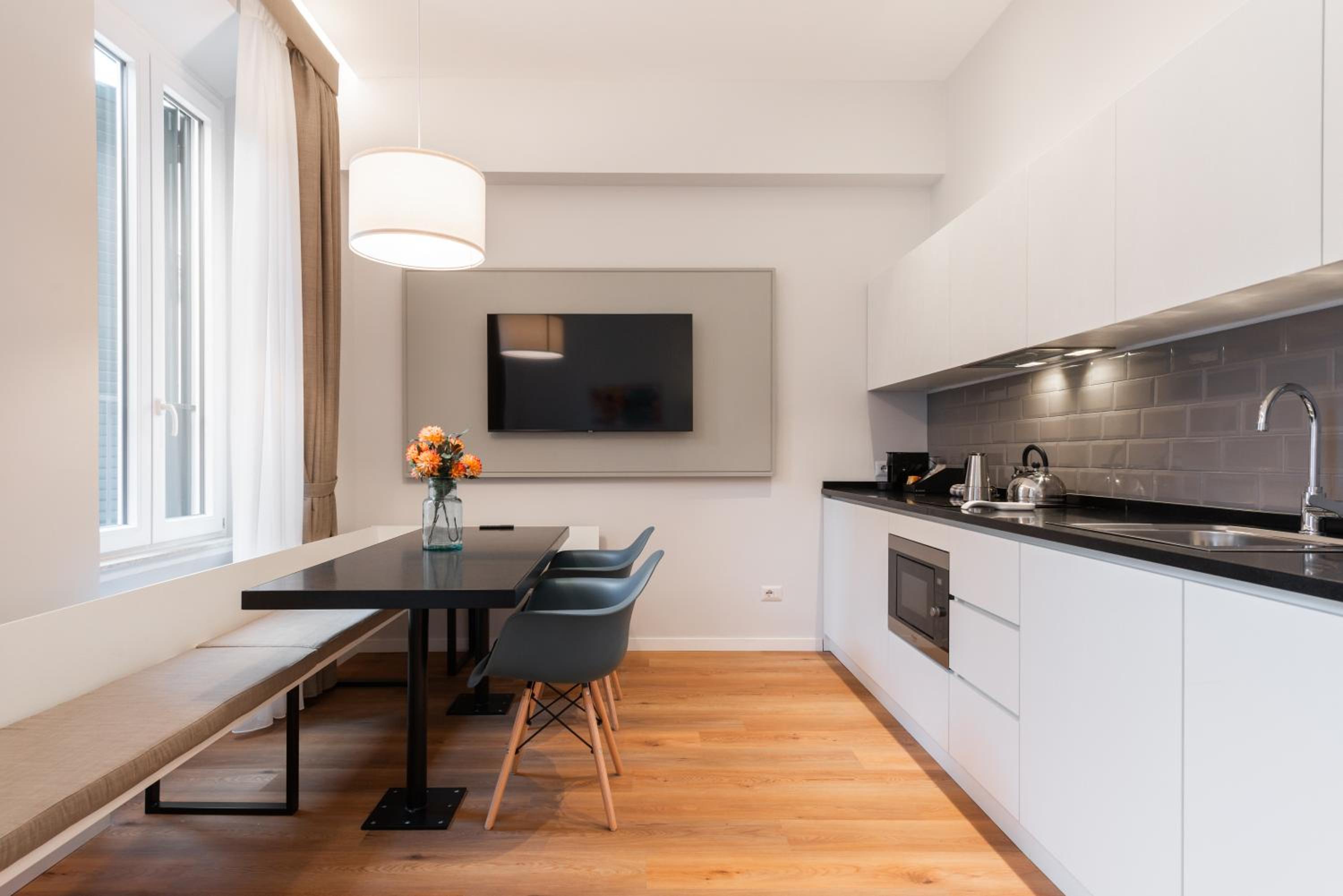 The apartment was clean and had all the amenities would have been even better if it had a washing machine ,nevertheless it was a great place and very convenient with shops and the train ,metro and trams very easy to access.