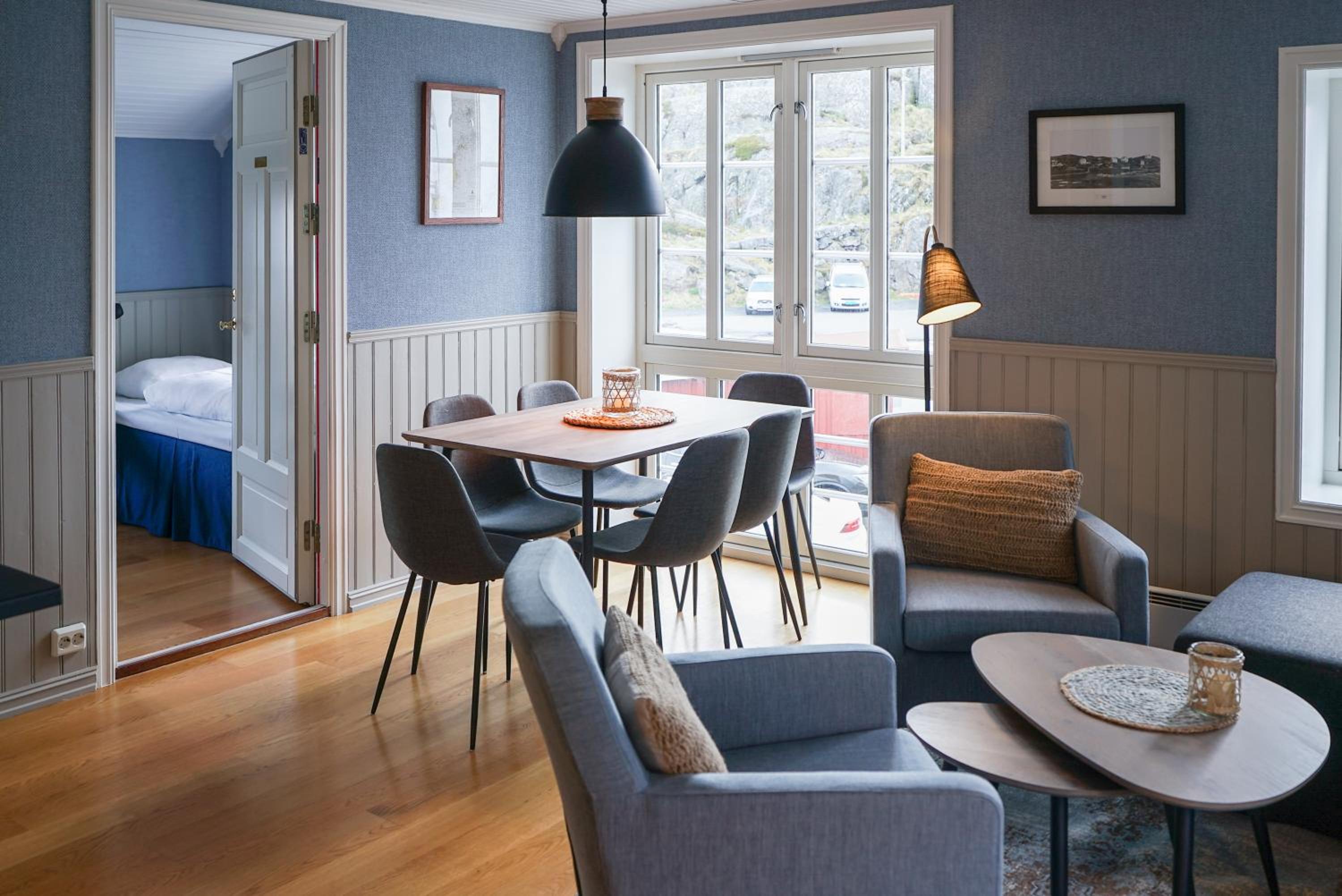 Luxurious Accommodations: Choose from five modern apartments or four newly built hotel rooms, all elegantly designed with one or two bedrooms. Each apartment boasts a spacious living room and kitchen, providing a comfortable stay with panoramic views of the Norwegian Sea.