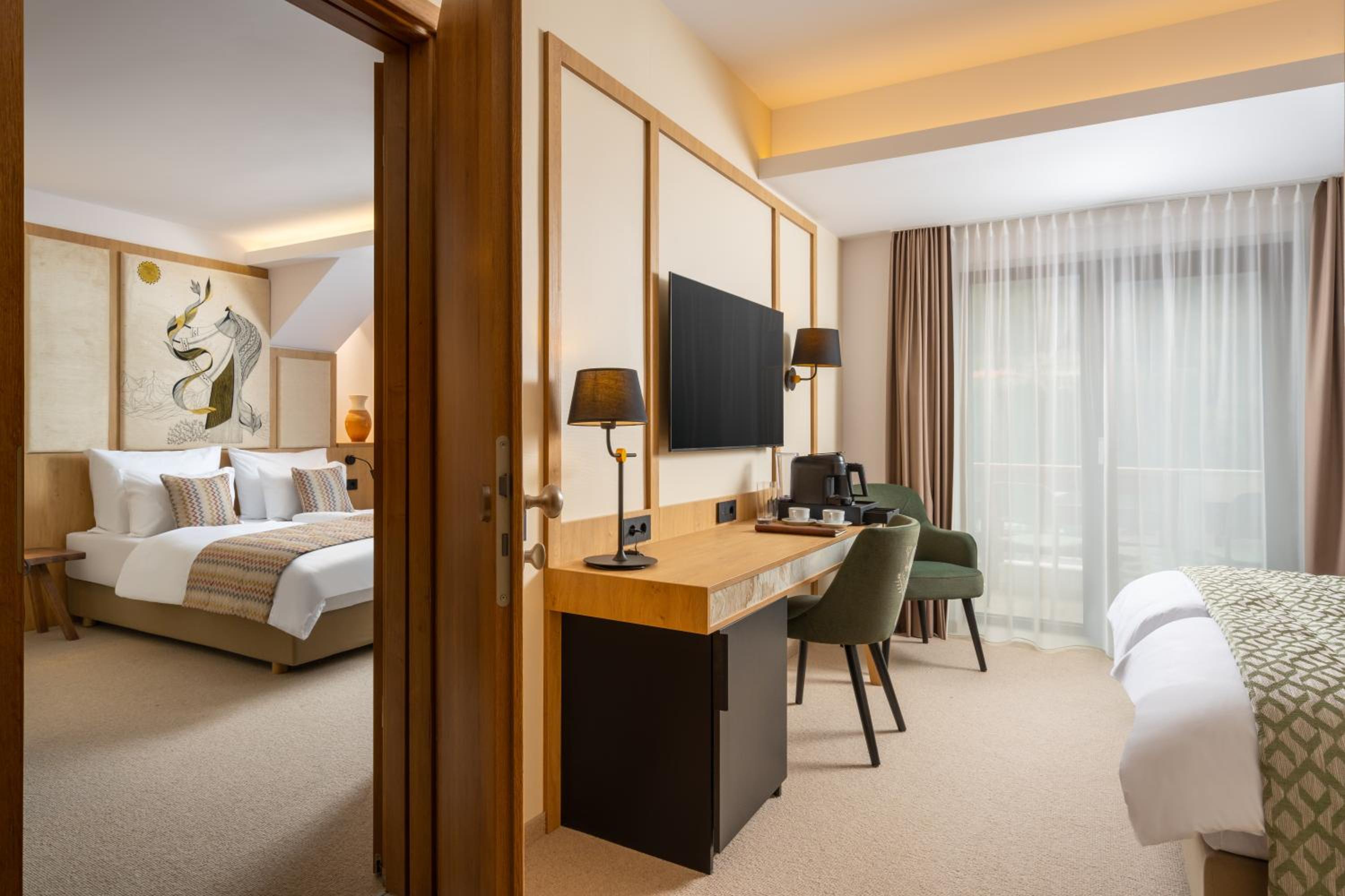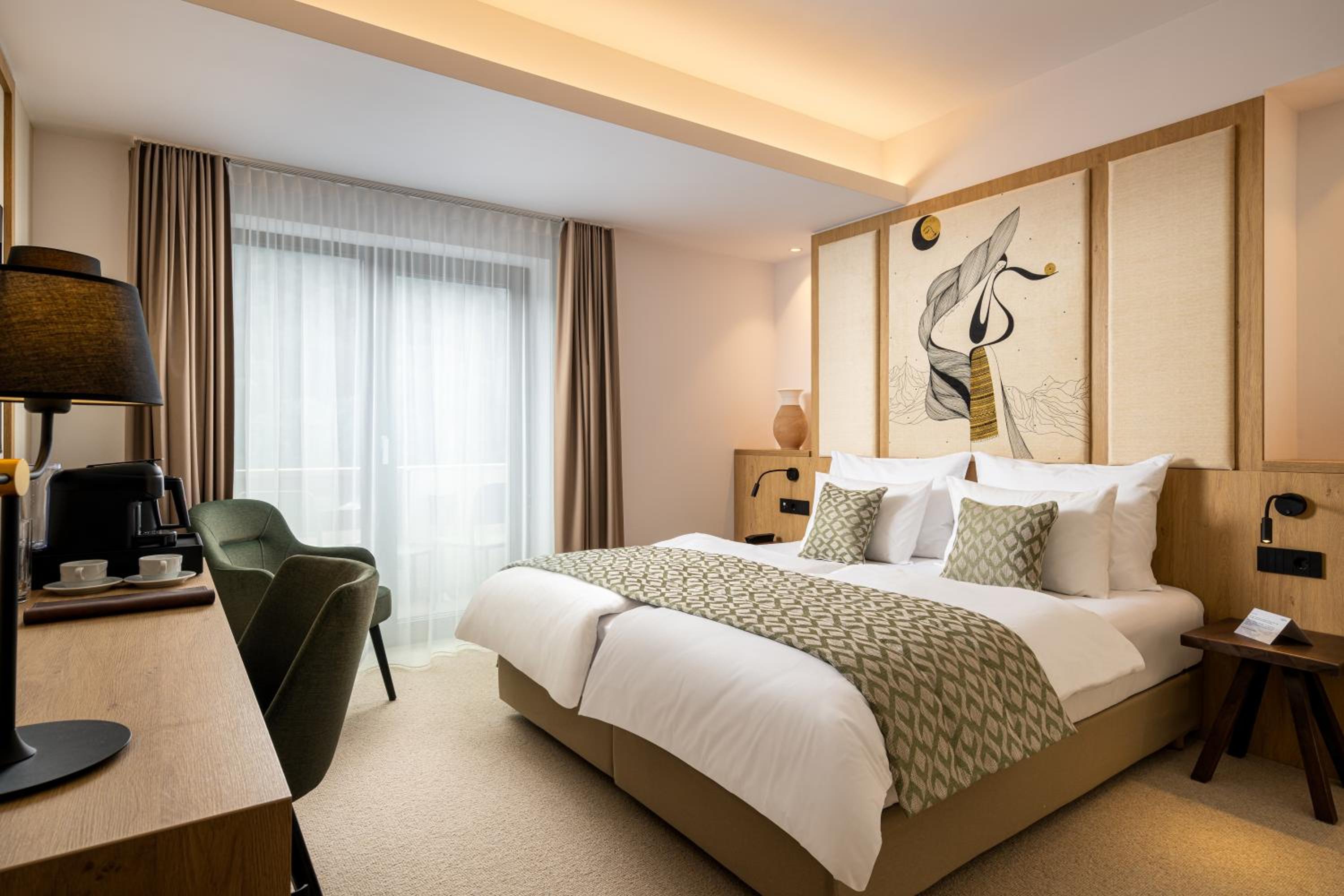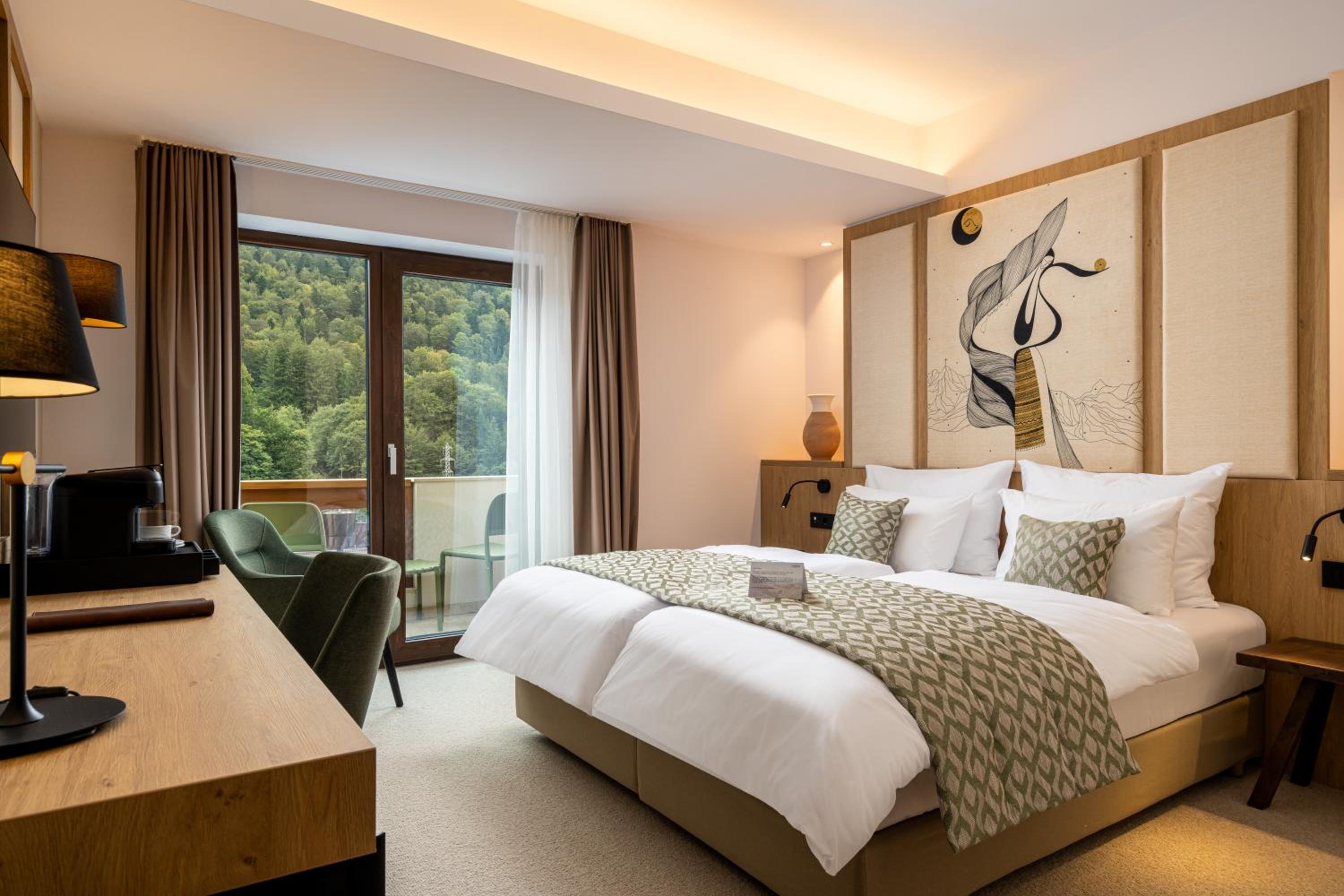 Indulge in air-conditioned rooms with modern amenities and breathtaking mountain views.