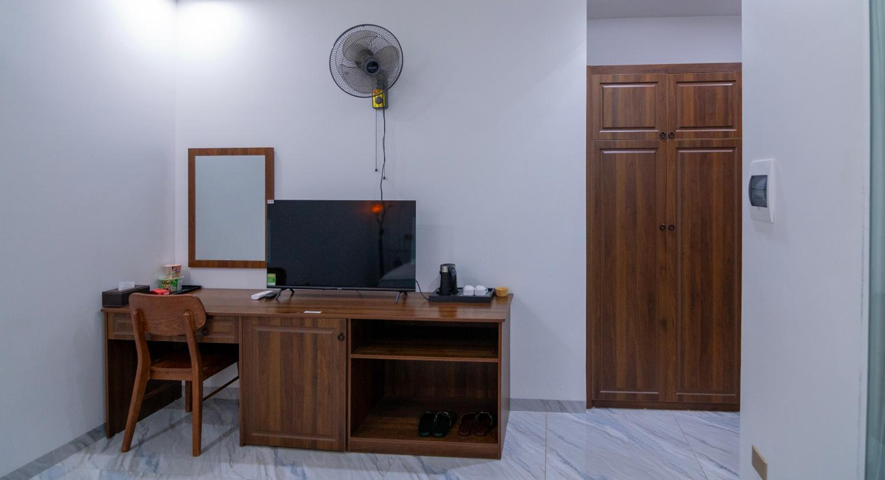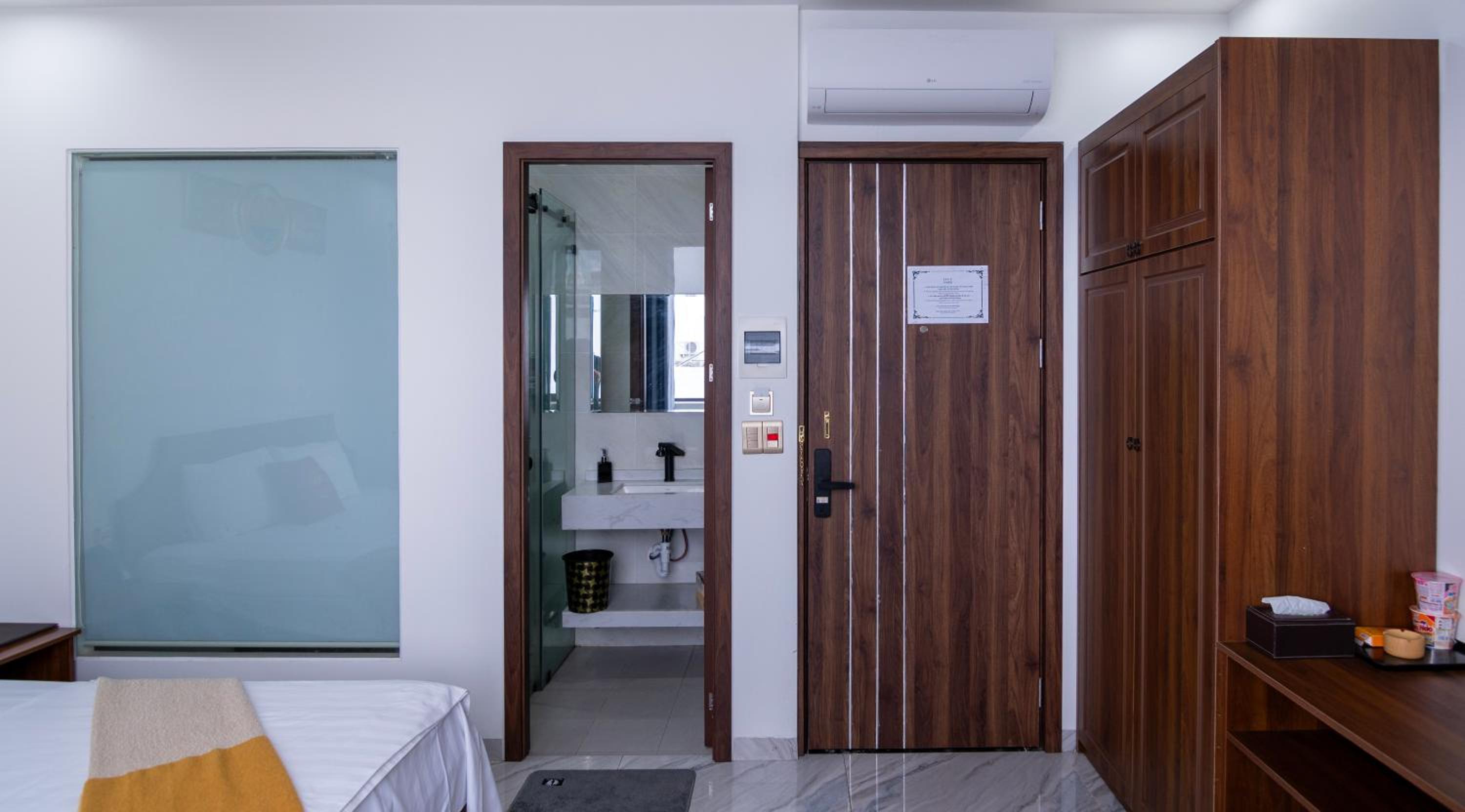 Guest rooms with amenities such as a kettle, air conditioning, and some with balconies for a pleasant stay.
