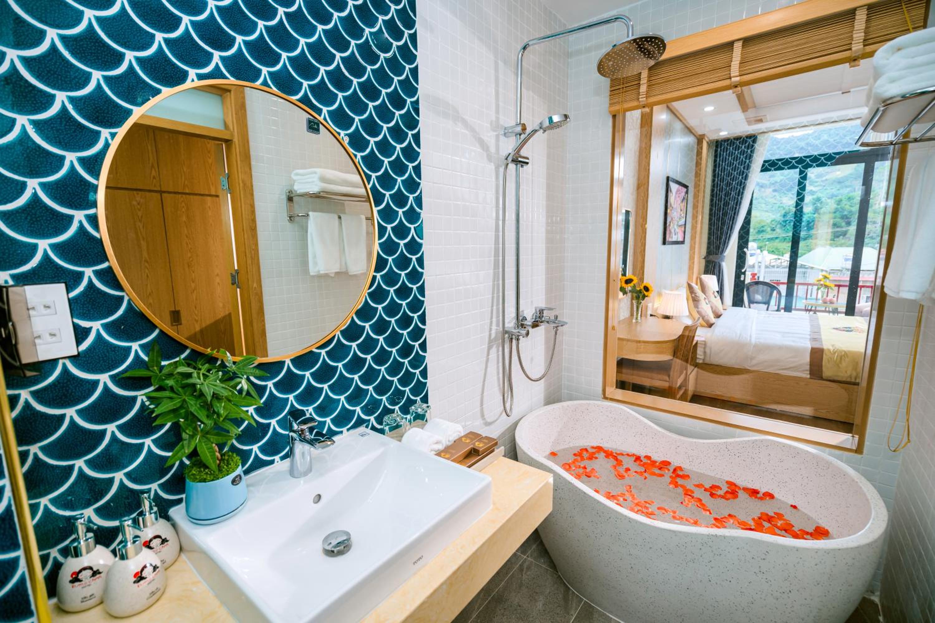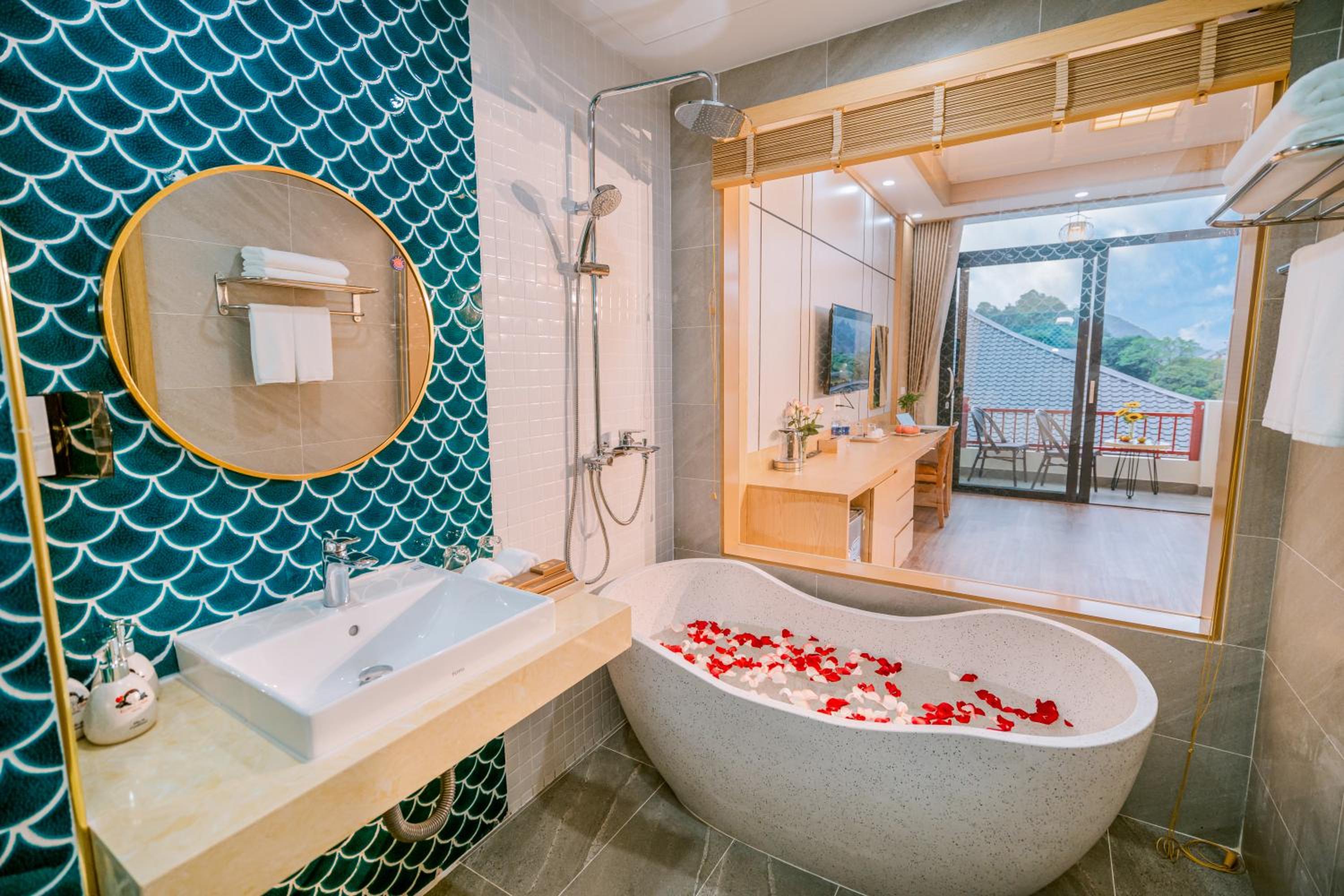 Enjoy breathtaking views of the surrounding mountains right from your room at Khách sạn Kumo Chan Mộc Châu.