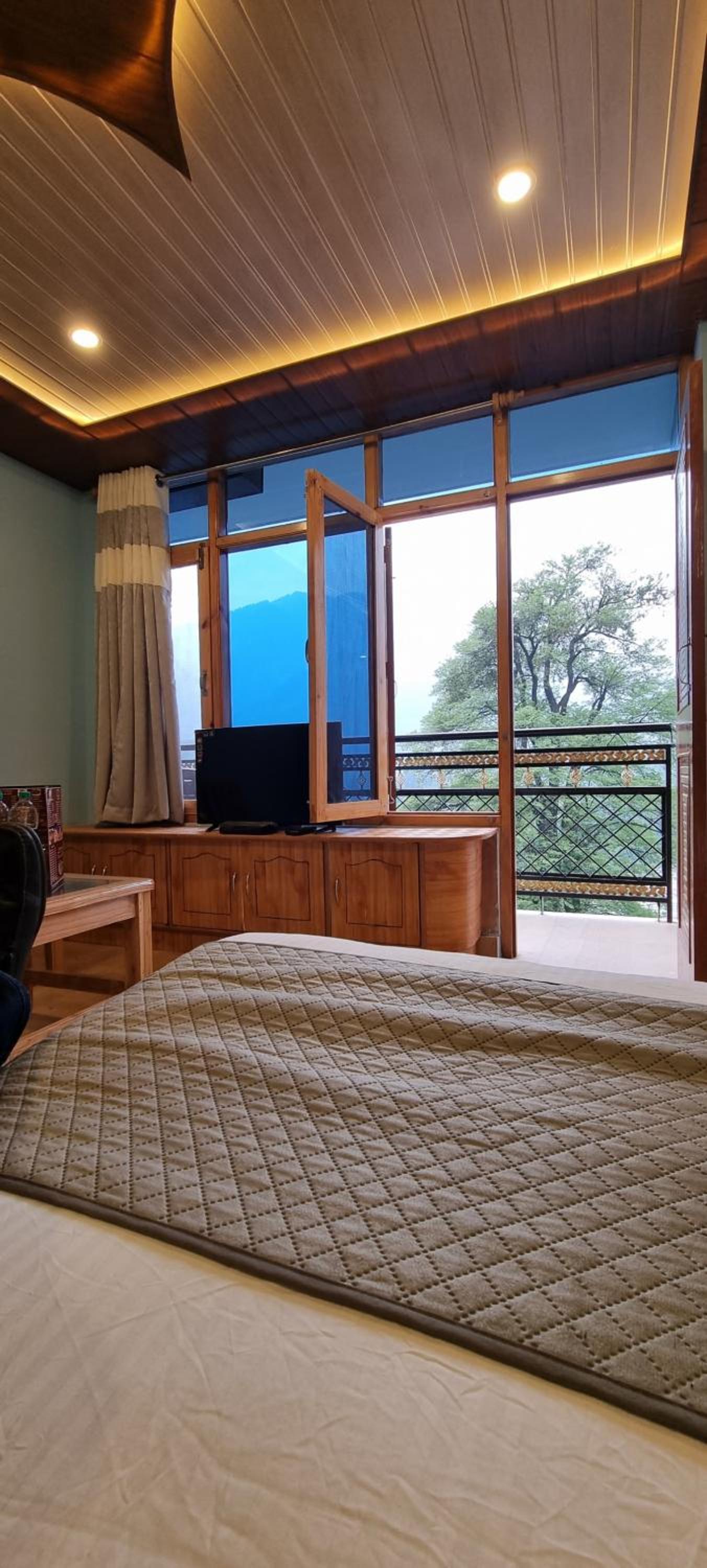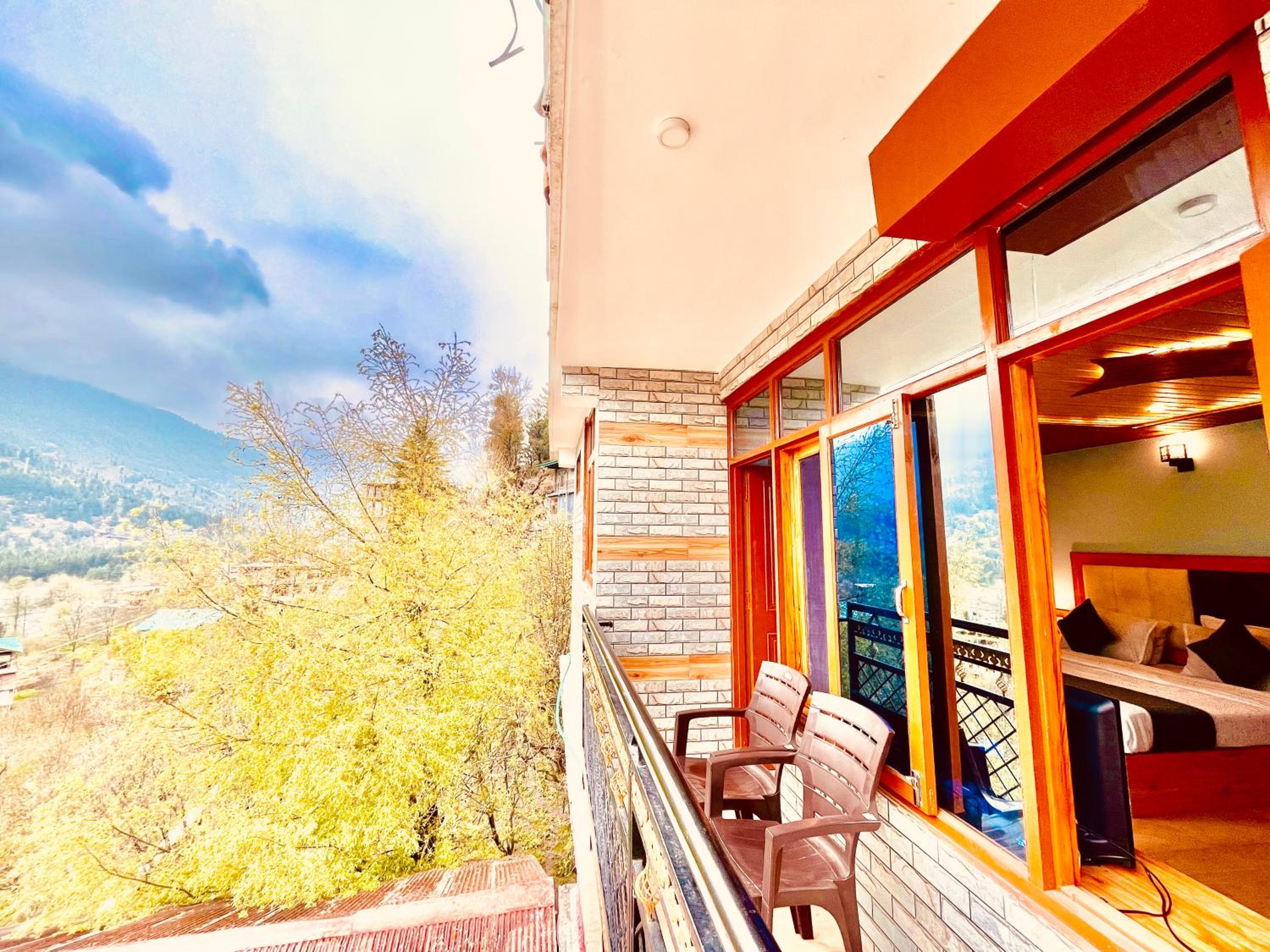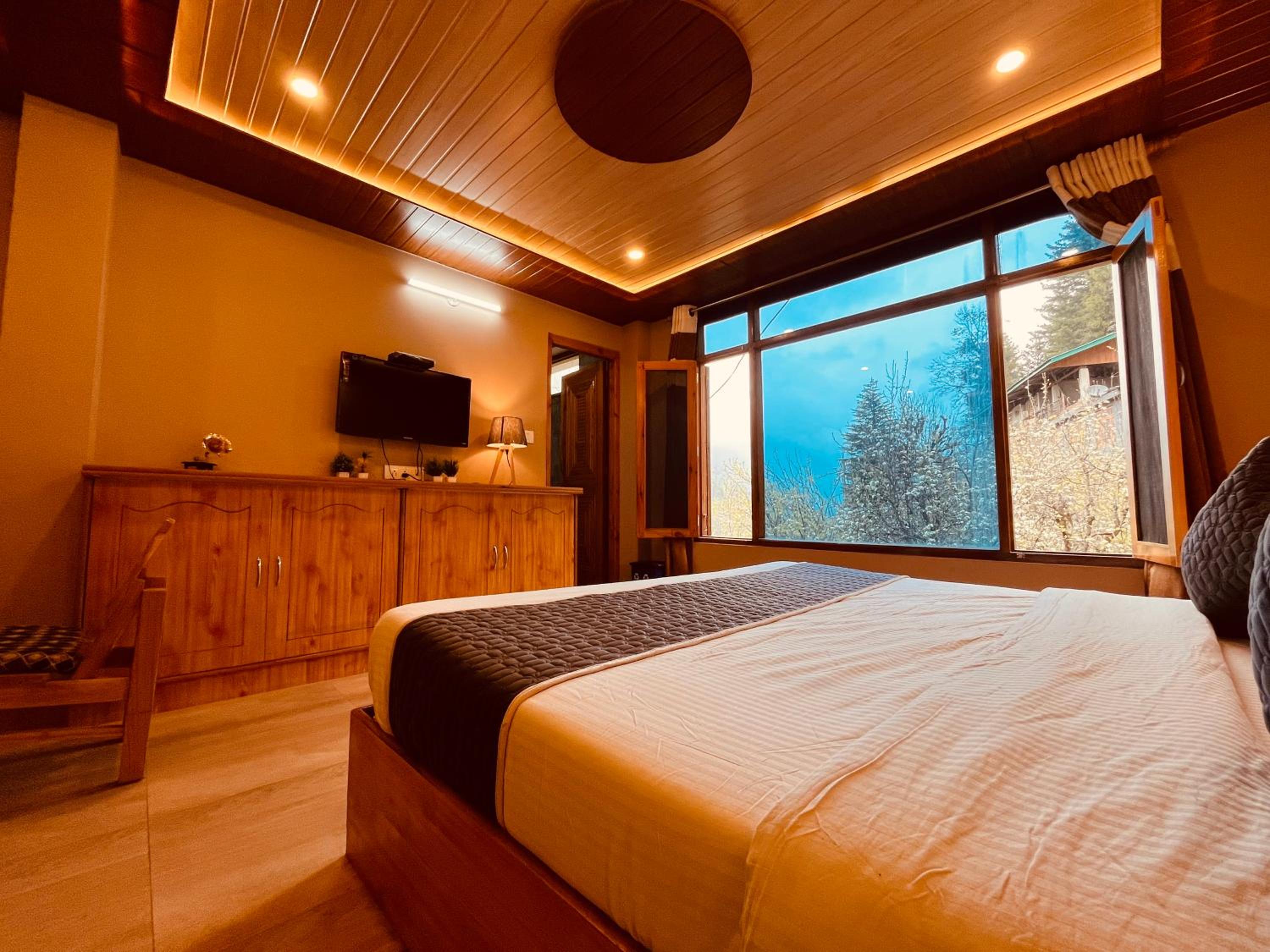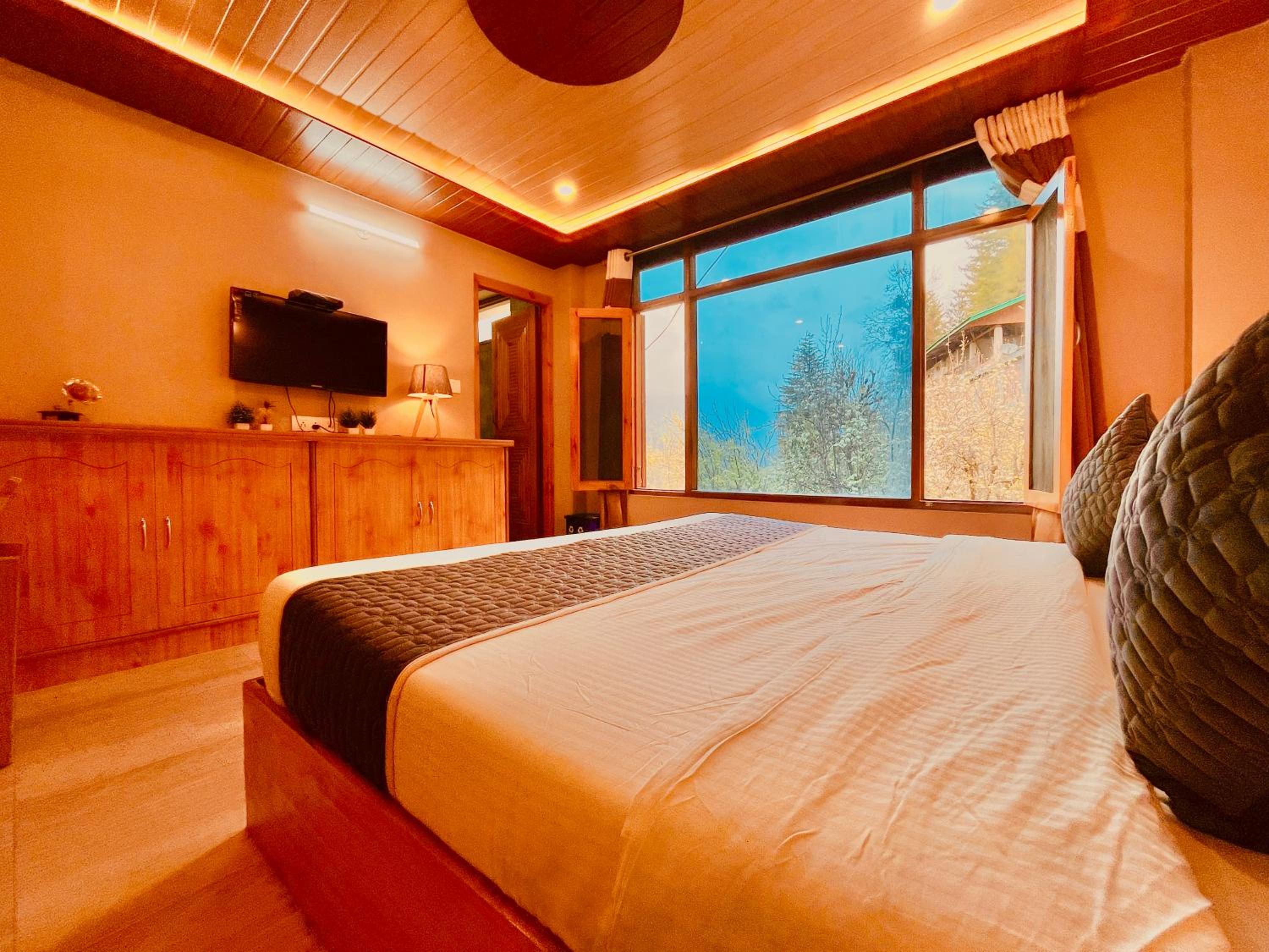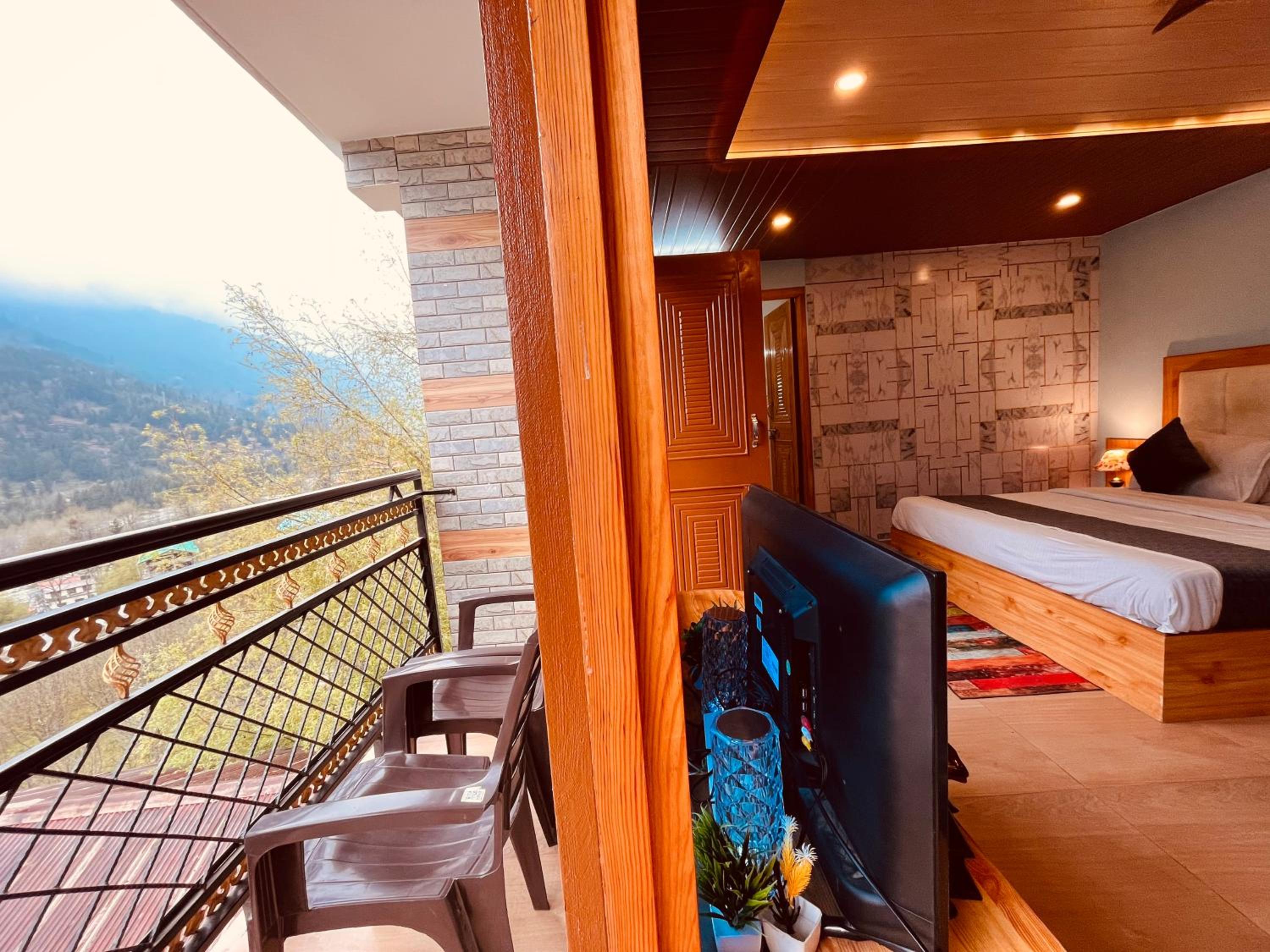 Enjoy breathtaking views of the surrounding mountains from the comfort of your room at The Sana Luxury Stay, Manali.