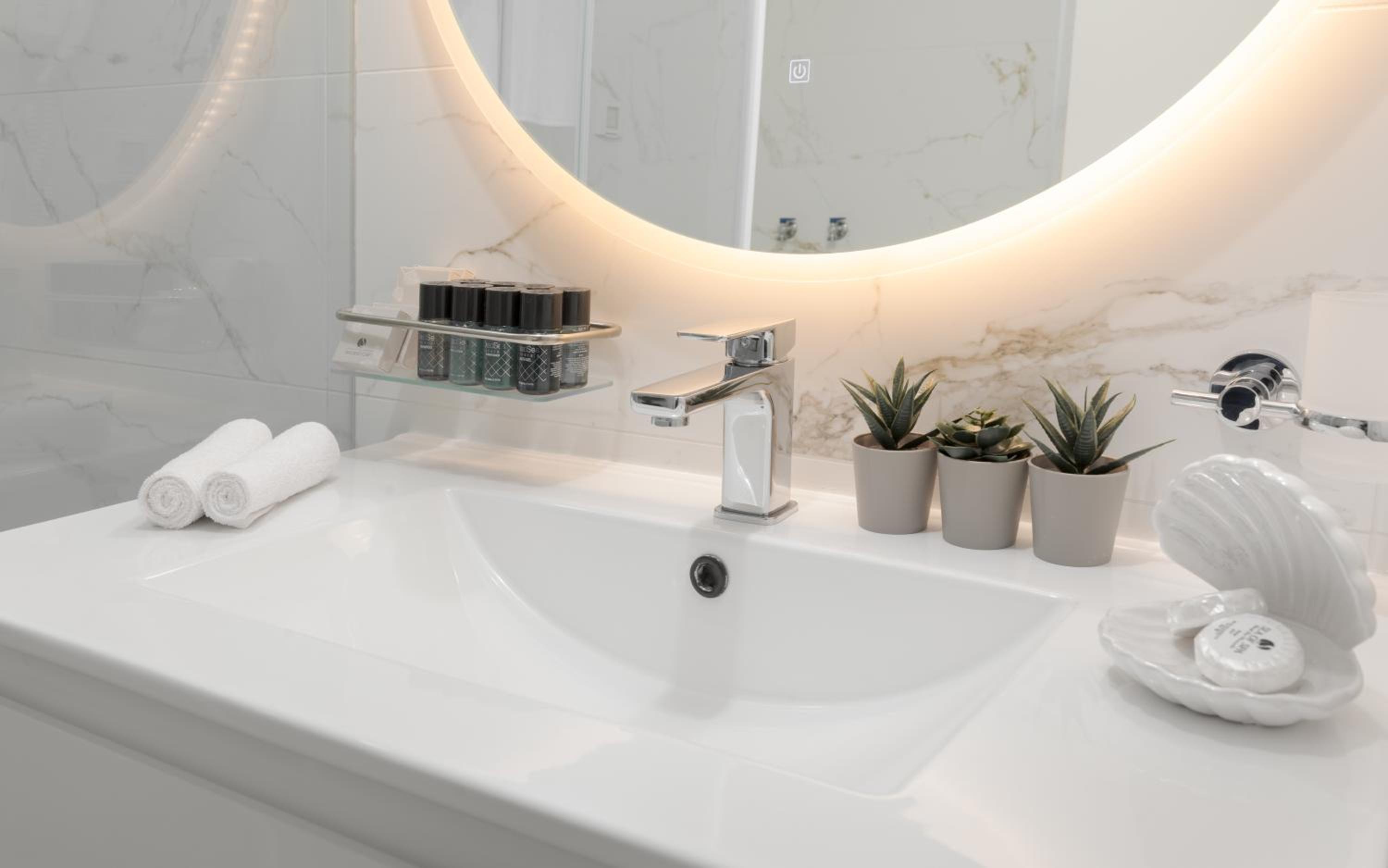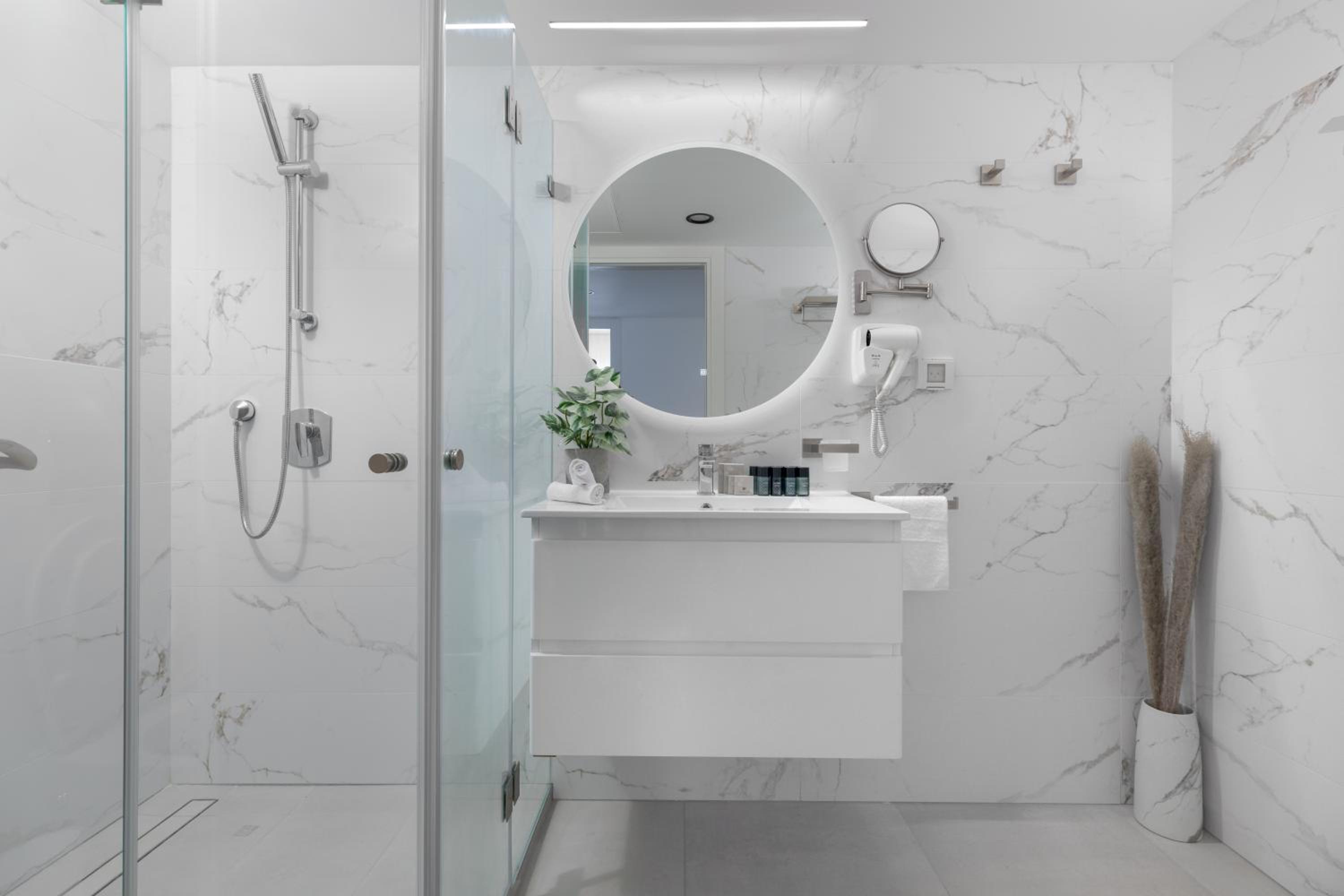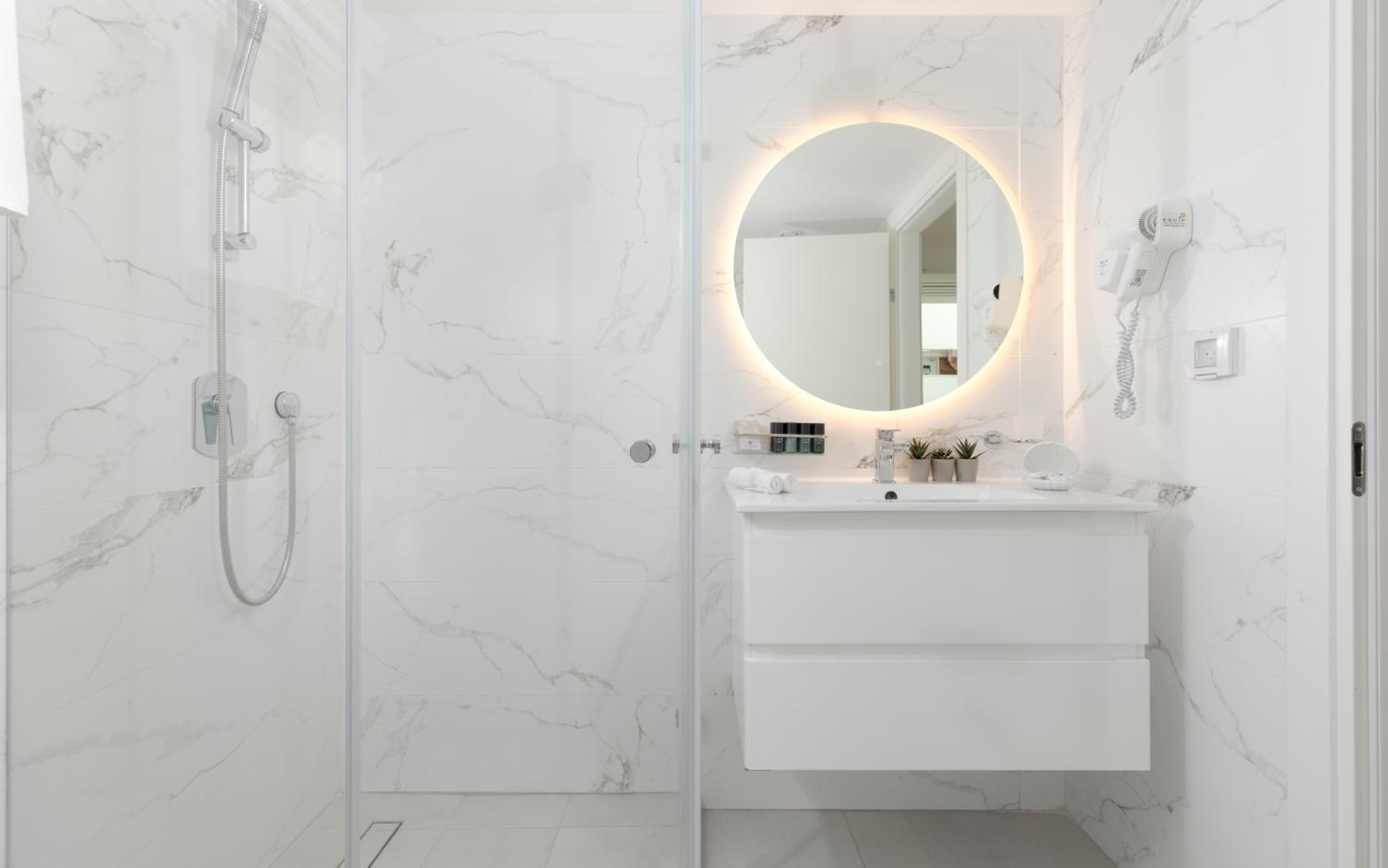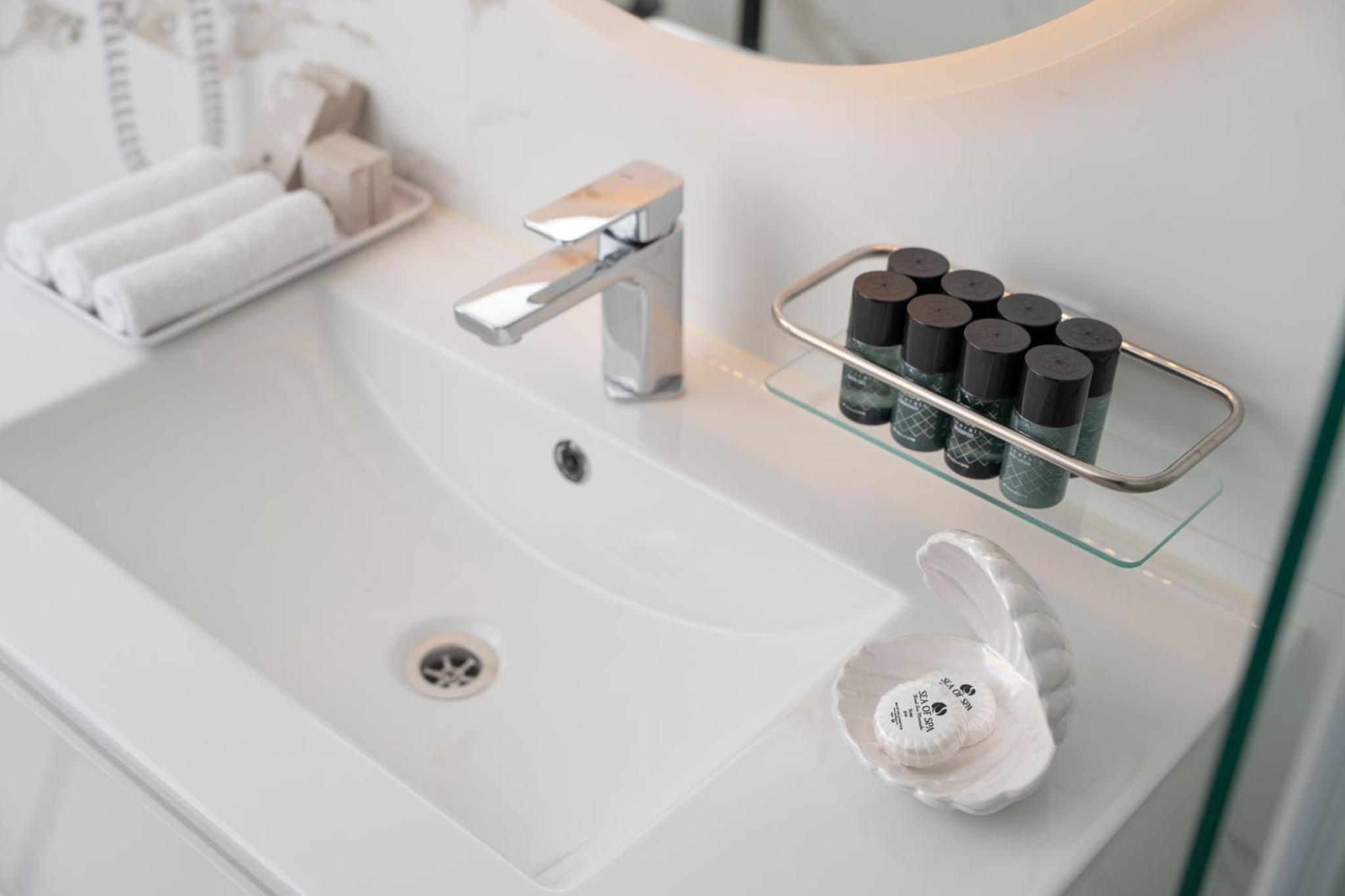 ראש המקלחת קטן, חבל אבל לא קריטי. חסרה בחדר מראת גוף.