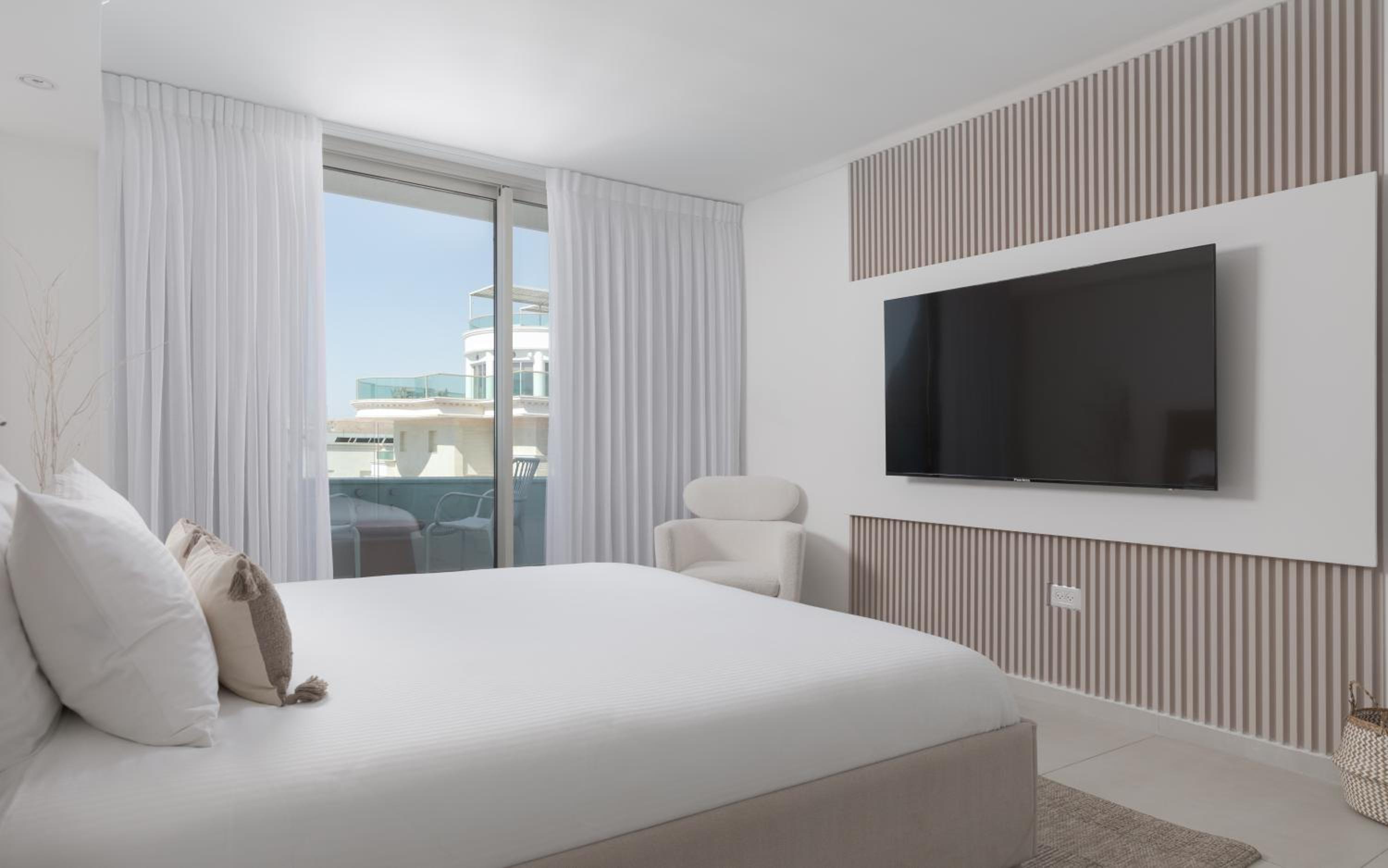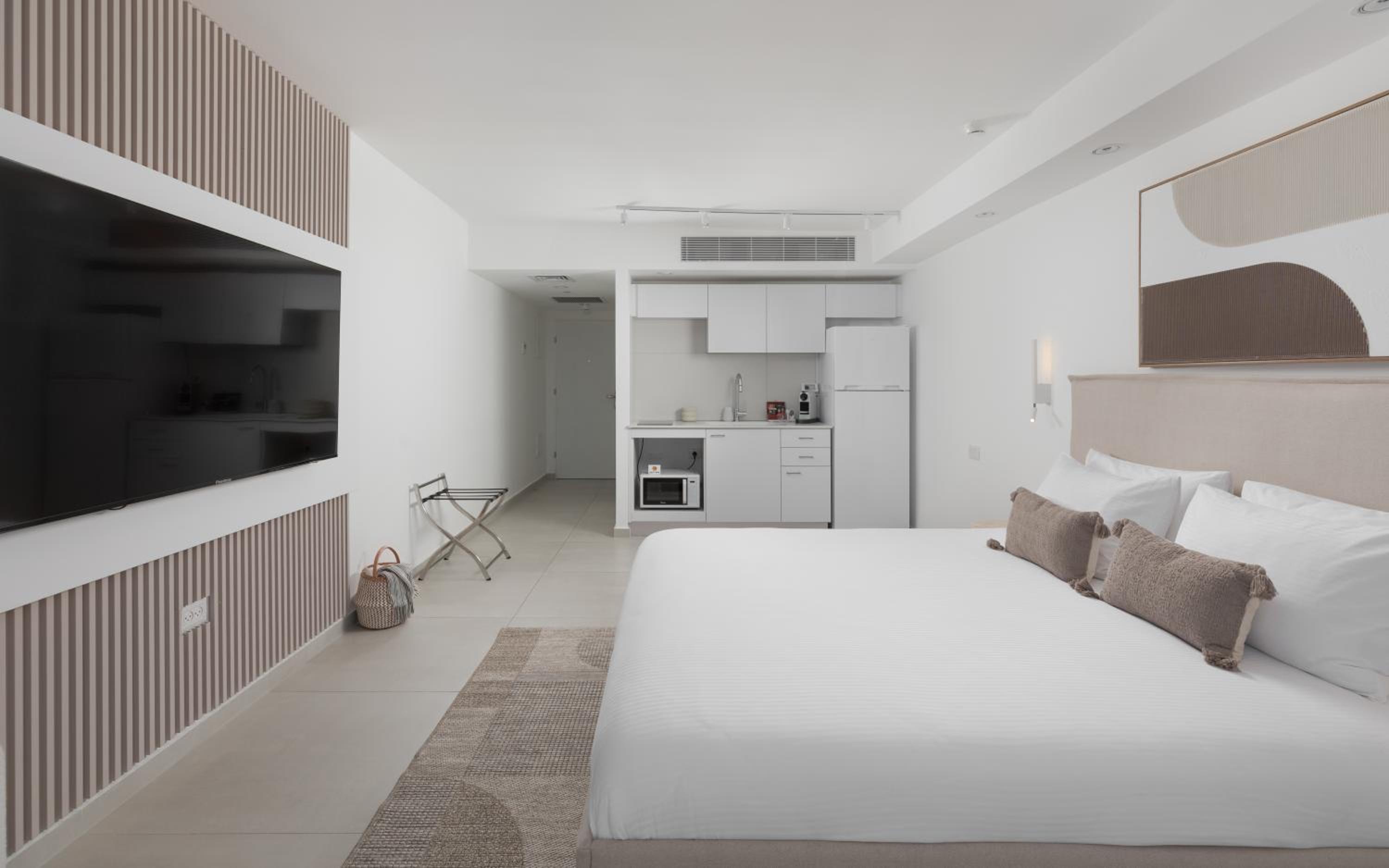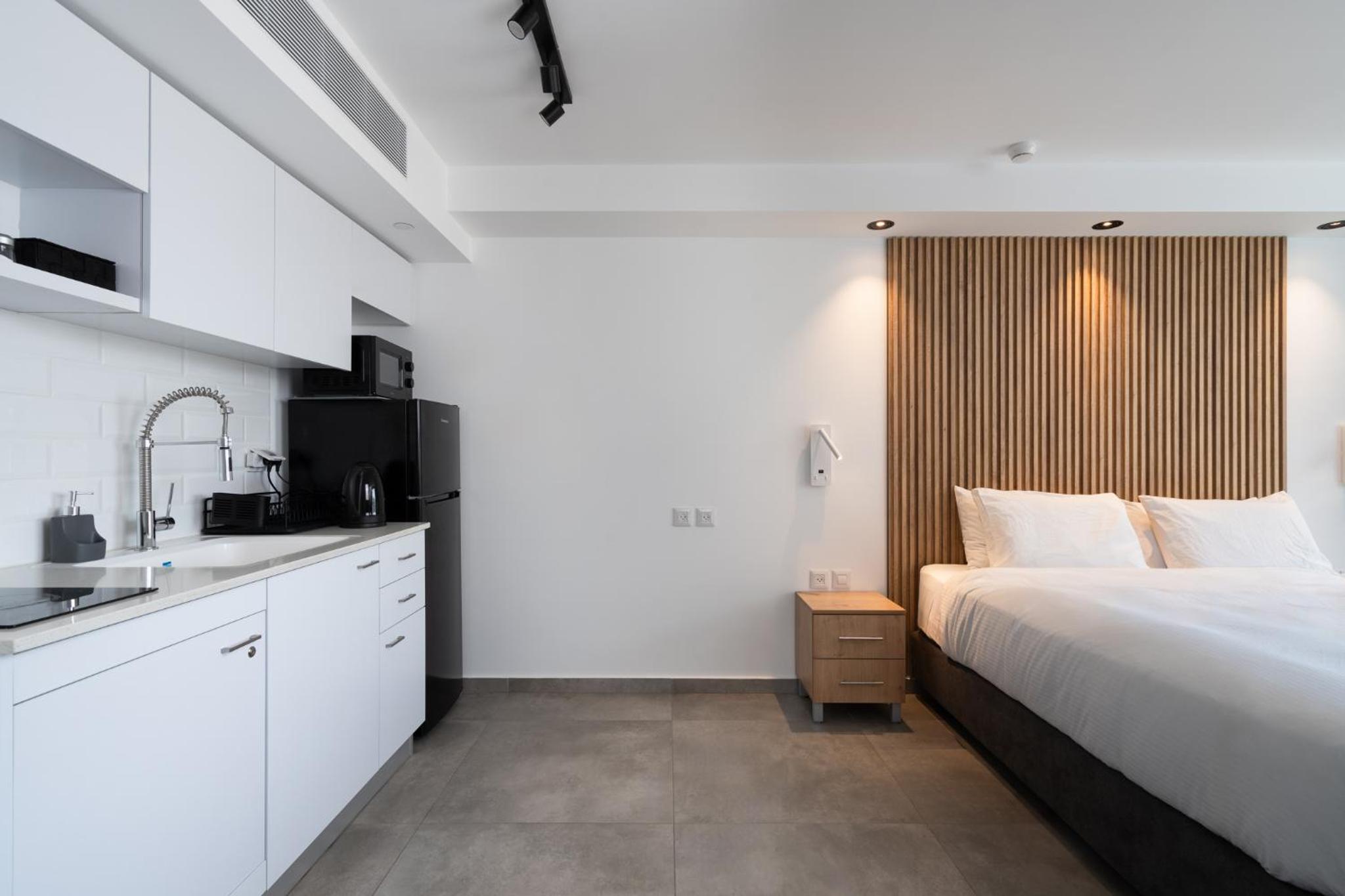 Nathan's Suites On The Beach in Eilat offers a perfect blend of comfort and convenience. Beachfront Bliss: Enjoy the stunning Papaya Beach and Kisuski Beach just steps away. Unwind by the outdoor swimming pool or in the open-air bath, surrounded by a lush garden. Home Away From Home: With a fully equipped kitchen, sea-view balcony, and modern amenities like a flat-screen TV, this aparthotel provides everything you need for a relaxing stay. Family-Friendly: Kids will love the on-site pool, ensuring fun for all ages. Book now for an unforgettable beach getaway at Nathan's Suites On The Beach.
