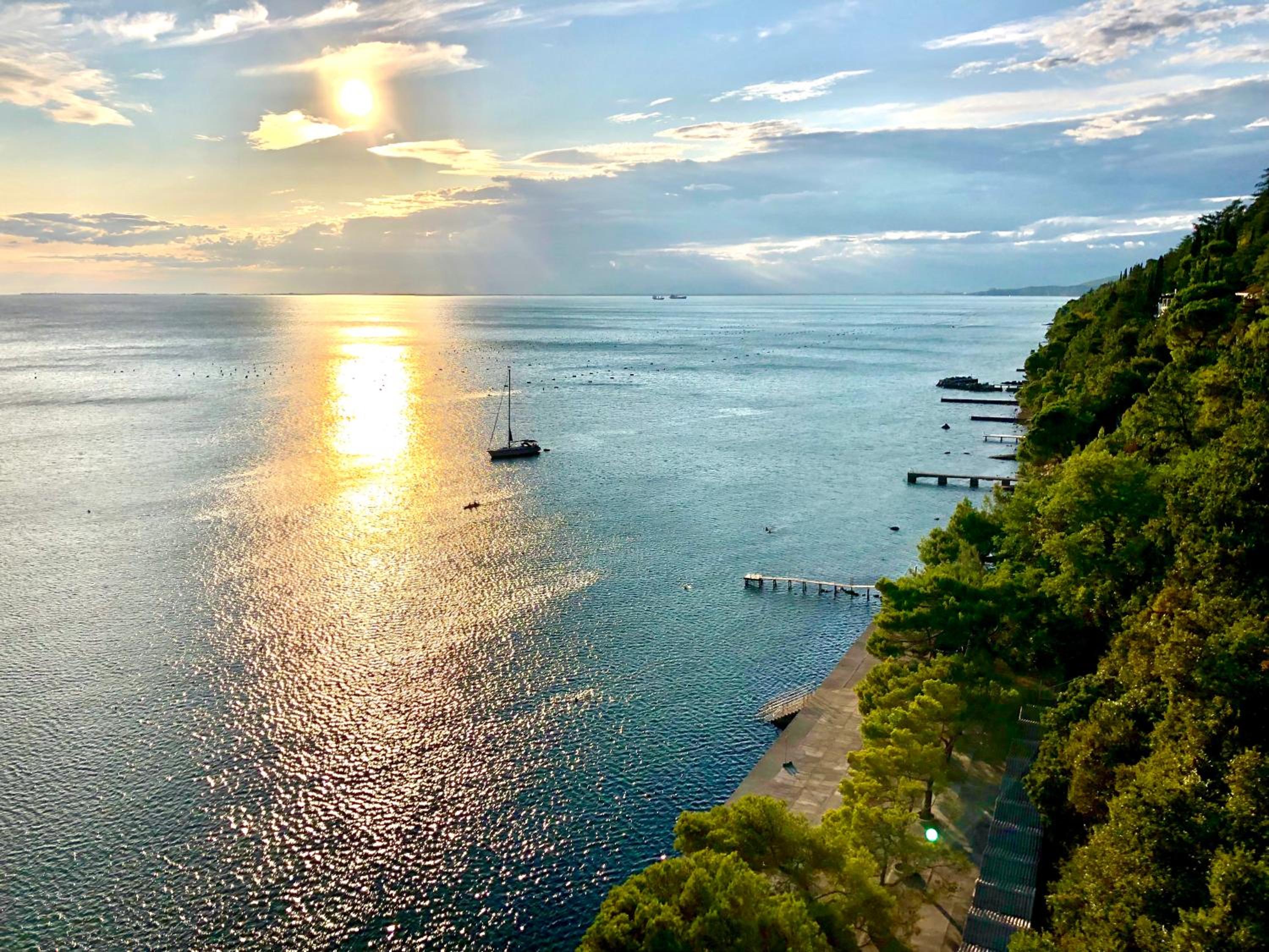 Izjemna lokacija na brežini nad obalo s pogledom na tržaški zaliv. Lepo urejen parkirni prostor. Možnost polnjenja EV na parkirišču. Hotel je izredno lepo urejen, prijeten ambijent, okolica v zelenju in cveticah, prečudovita terasa s pogledom na morje, dober zajtrk. Urejen je dostop do plaže, ki pa je žal izven sezone zaprt. Z doplačilom možnost uporabe SPA.