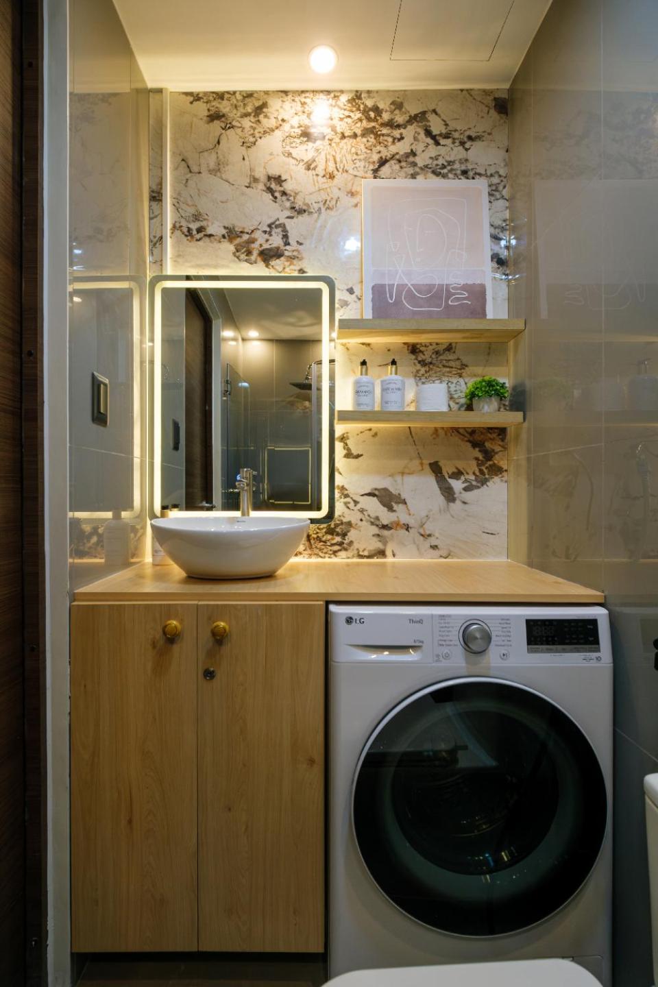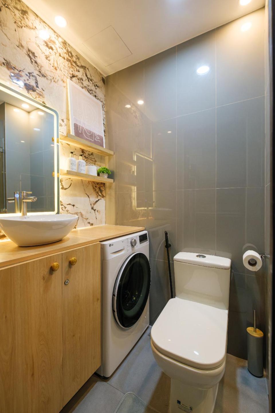 Das Badezimmer ist sehr klein, so dass man die Türe der Dusche nicht ganz aufmachen konnte und auch die Waschmaschine konnte man nur etwa zu 1/3 öffnen.