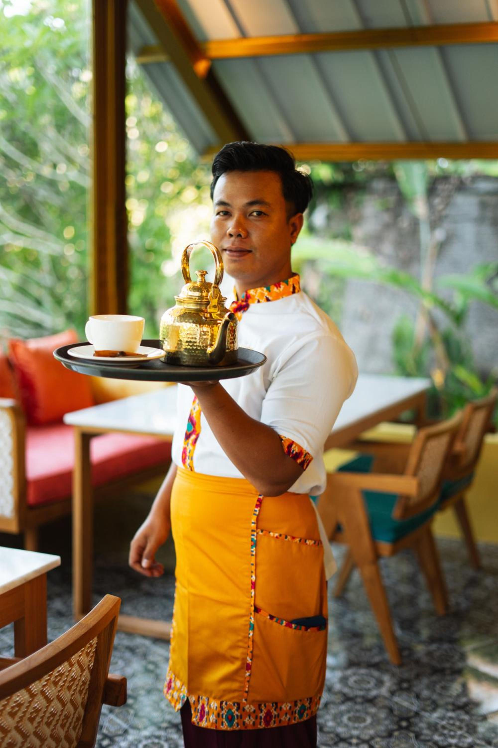 Next, the hotel aesthetics…. OMG, there are jewels, water features and gorgeous art everywhere. The decor has been picked with careful consideration by the owner who has an eye for Indian design, and the vibrant colours make it feel so special- an Indian inspired retreat in the heart of Bali.