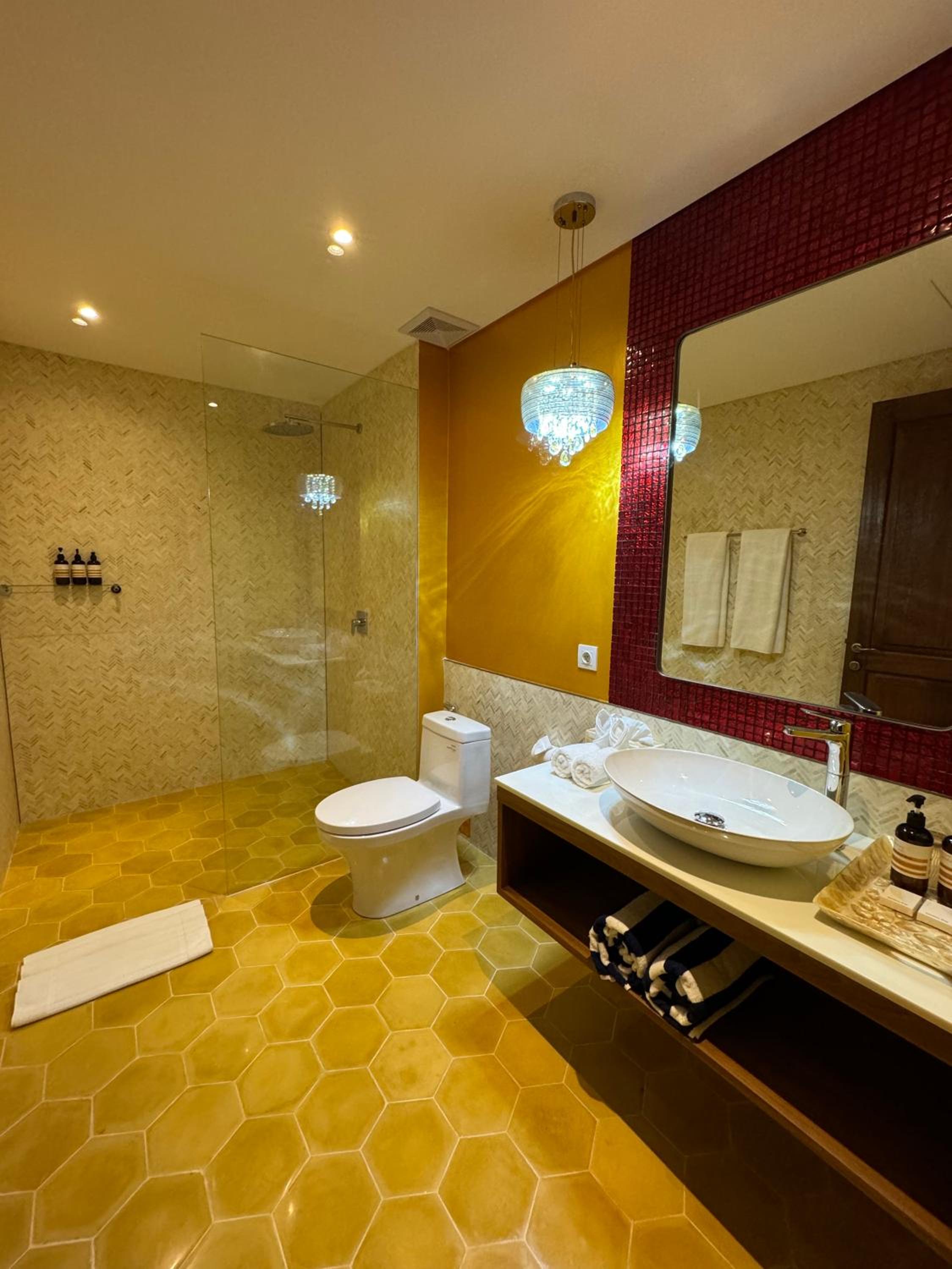 Beautiful hotel with nice details in the middle of the jungle. Very quiet and relaxing. Nice pool. Spacious and comfortable room, beautiful bathroom and shower. Nice and hot water.