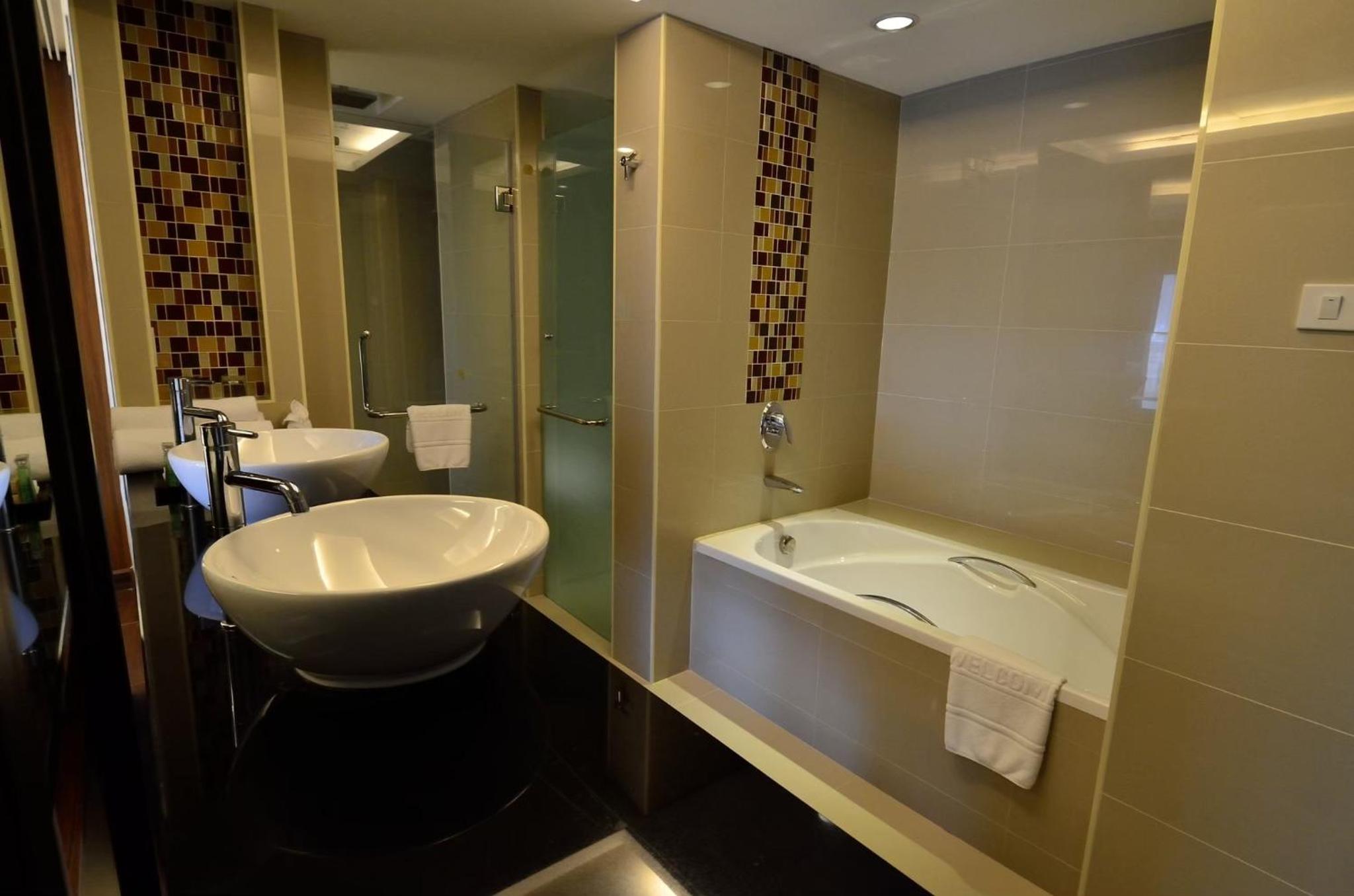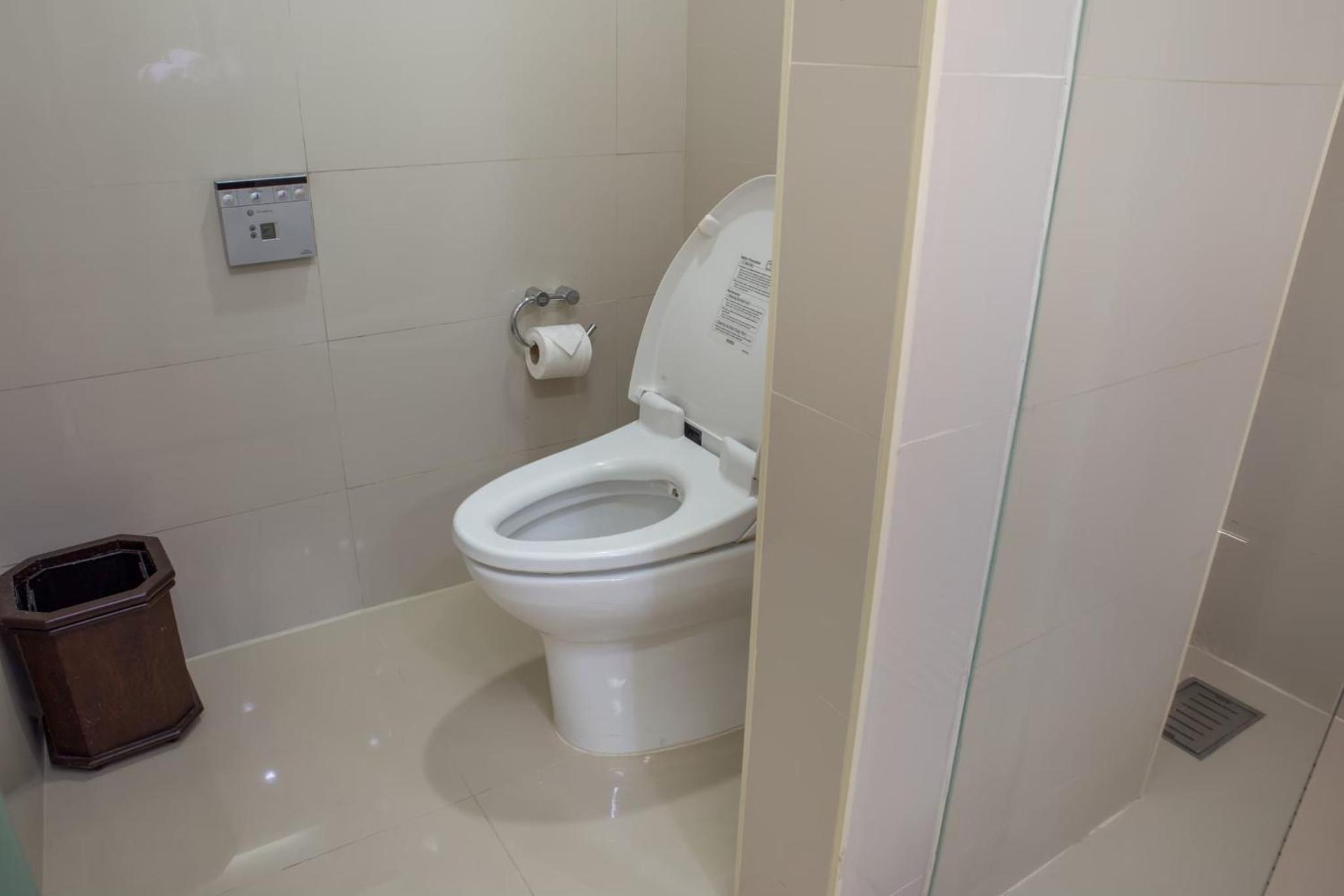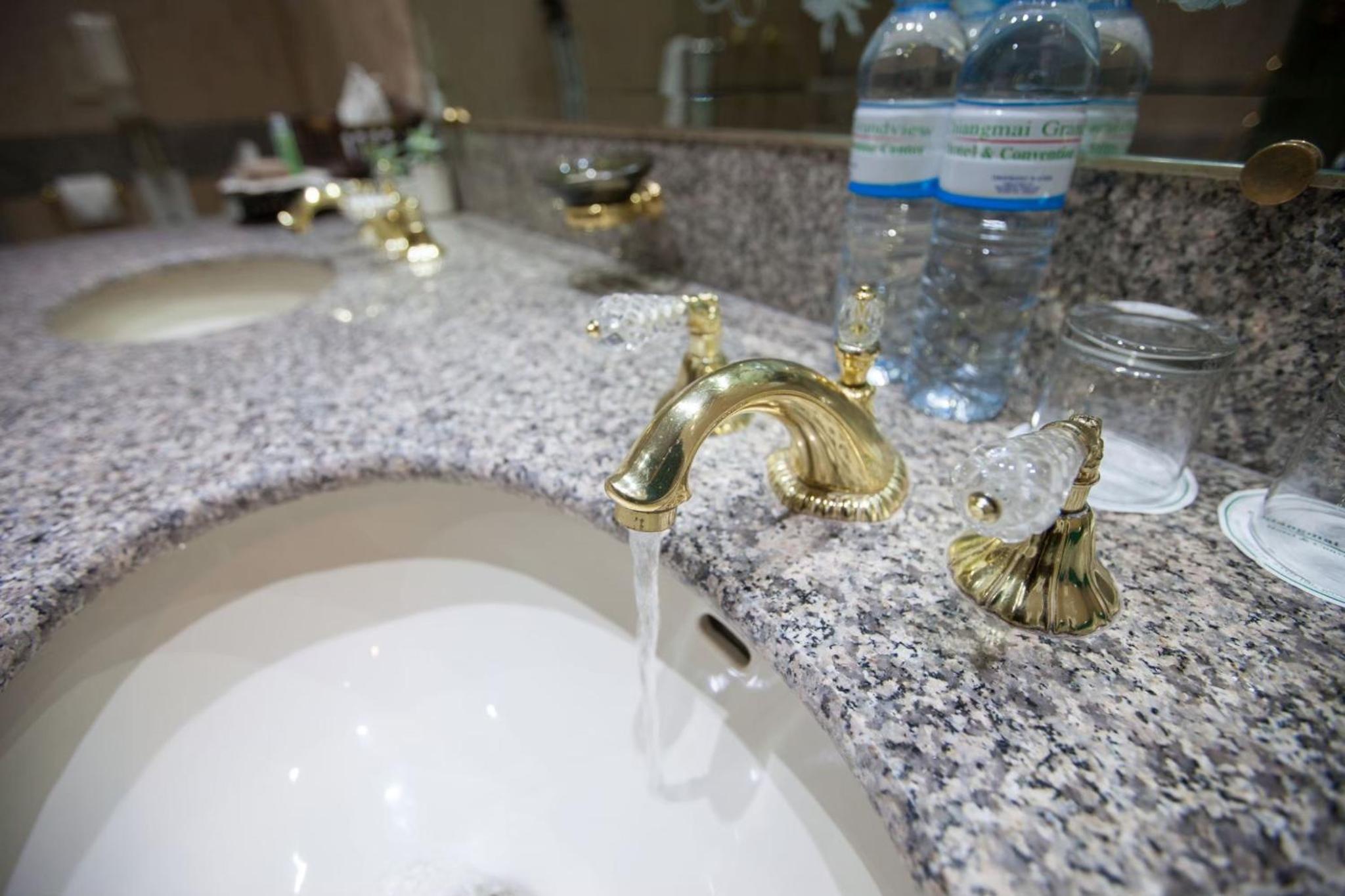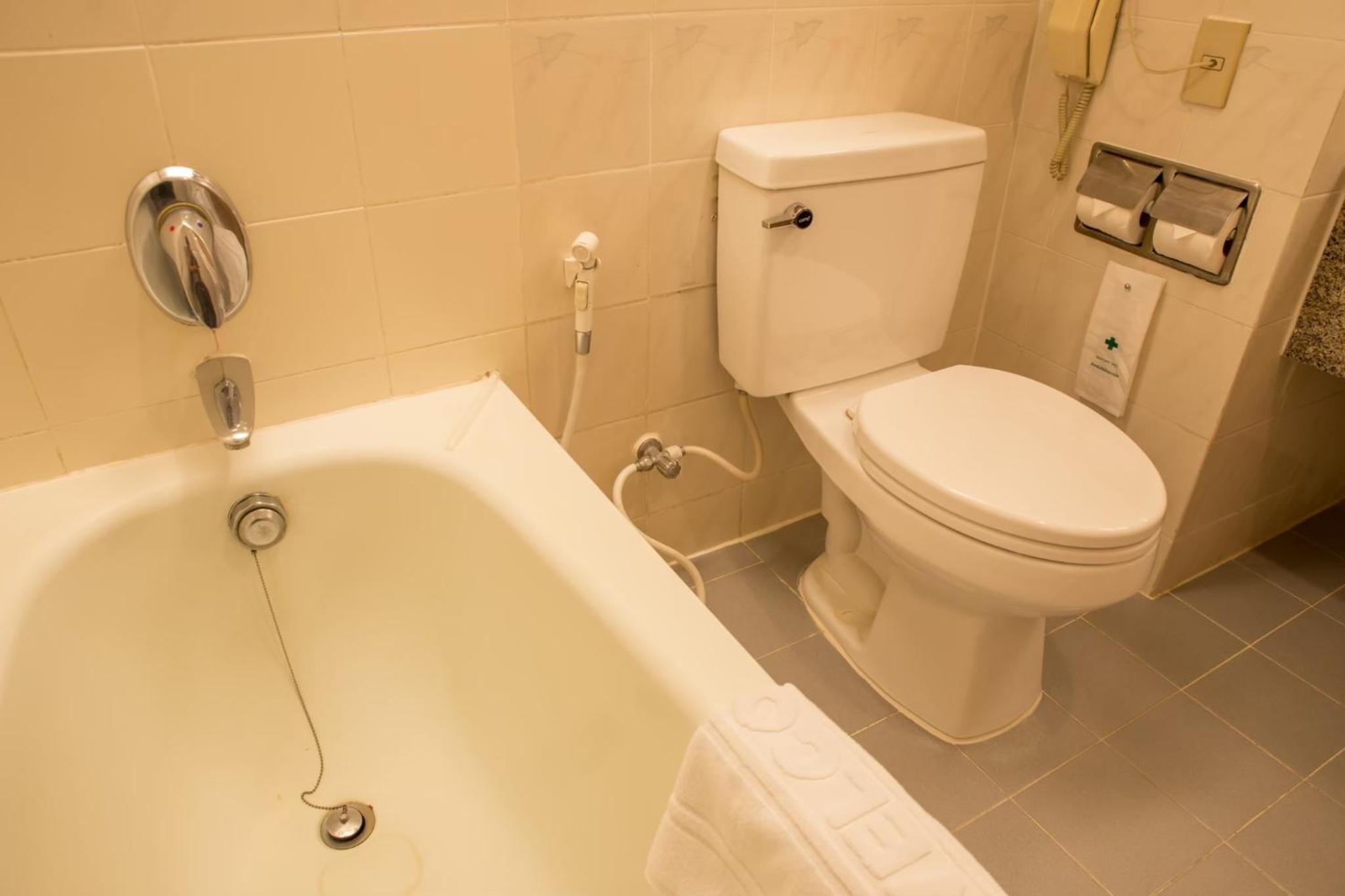 Nadeel van de badkamer op de 14e verdieping was dat het water uit de kraan en in de toiletpot af en toe duidelijk zichtbaar "bruin" gekleurd was. Ook de druk van de douche verschillende, waardoor de temperatuur van het water soms varieerde van koud tot heel heet.