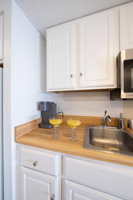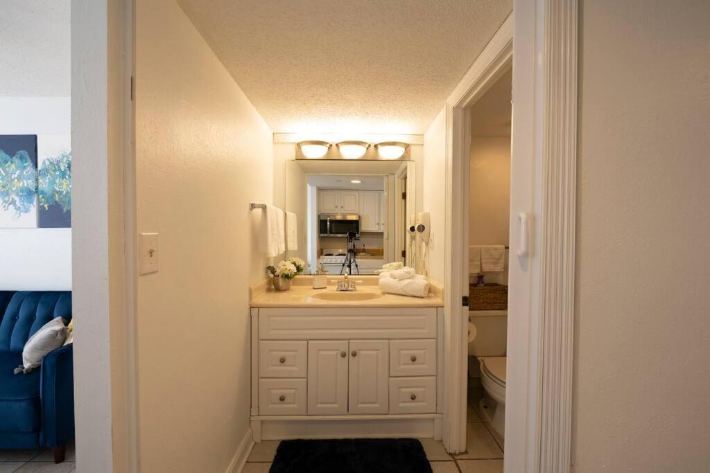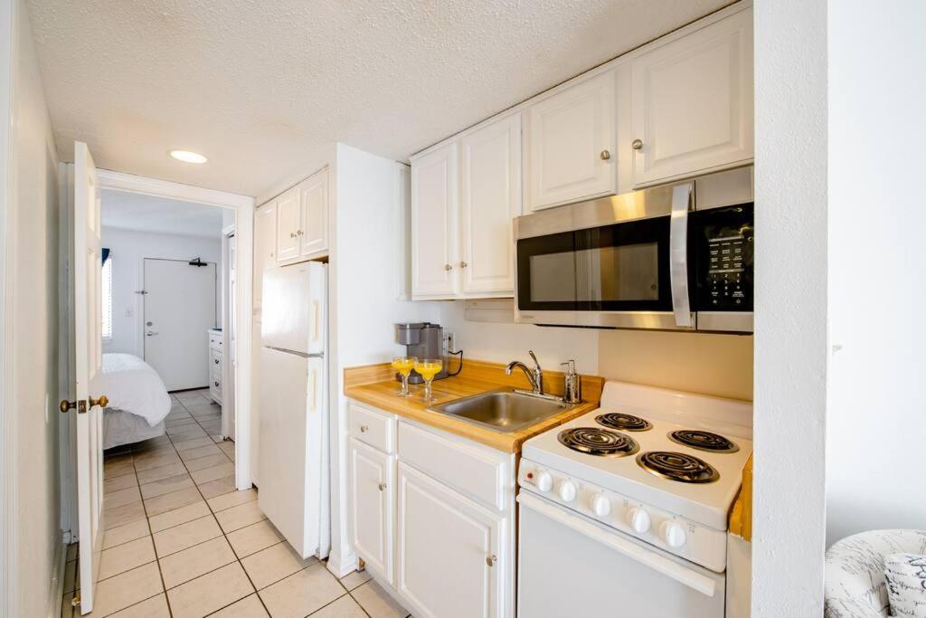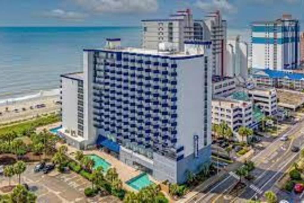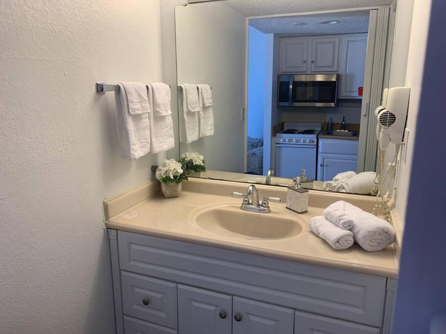 Easy access to the beach and easy check-in. If you needed something that the property doesn’t provide, you can walk within a block of the property to buy it. The walkways outside were clean. The tiki bar (and bartender) was nice and convenient. Free parking garage. It was decorated cute. My husband and I thought the king bed was comfortable. The inside was clean and bug free. We liked that it had a futon couch for our 10 y/o son to sleep on.