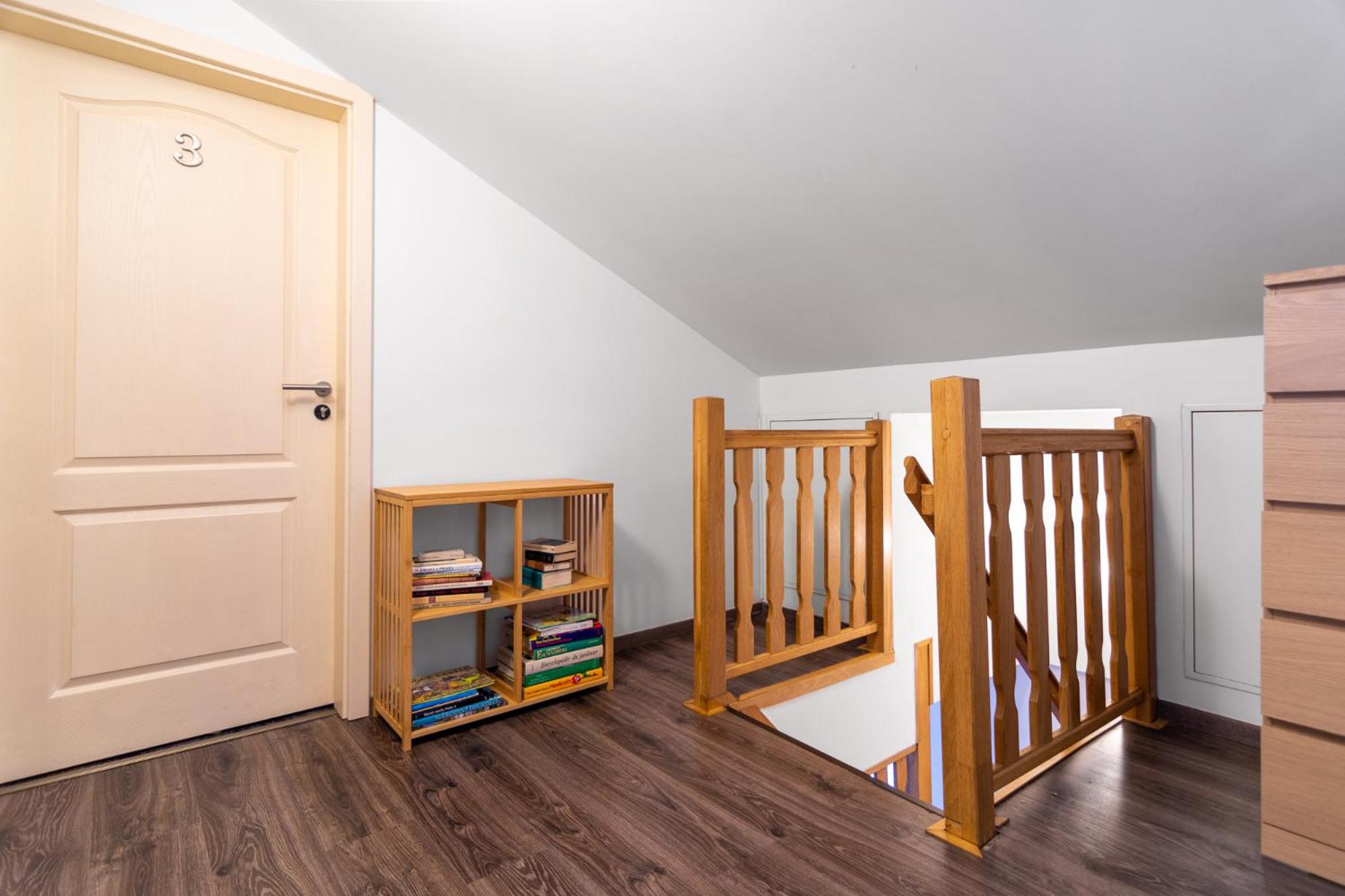 Для высоких людей неудобно ходить на верхнем этаже из-за скошенной крыши.