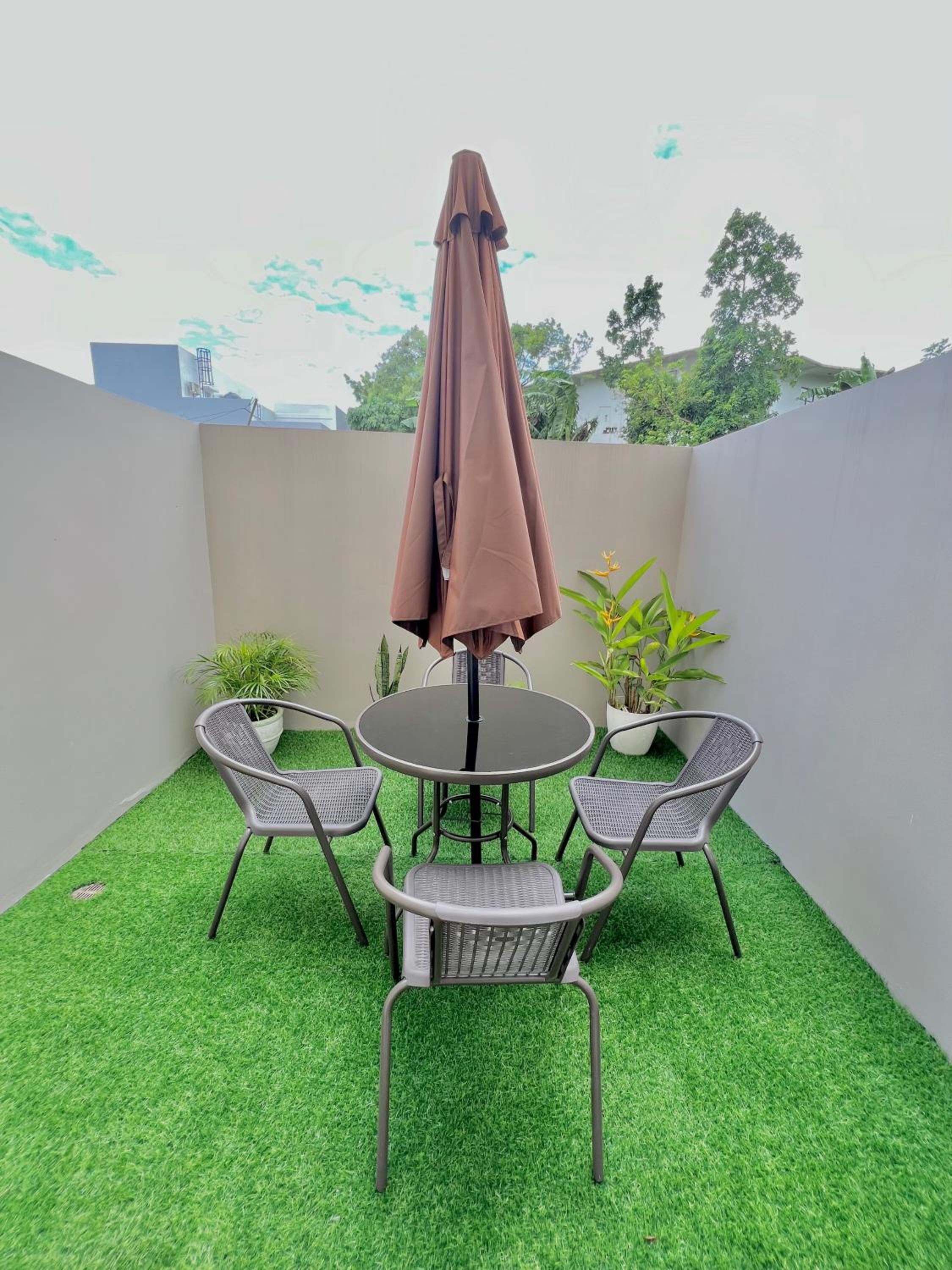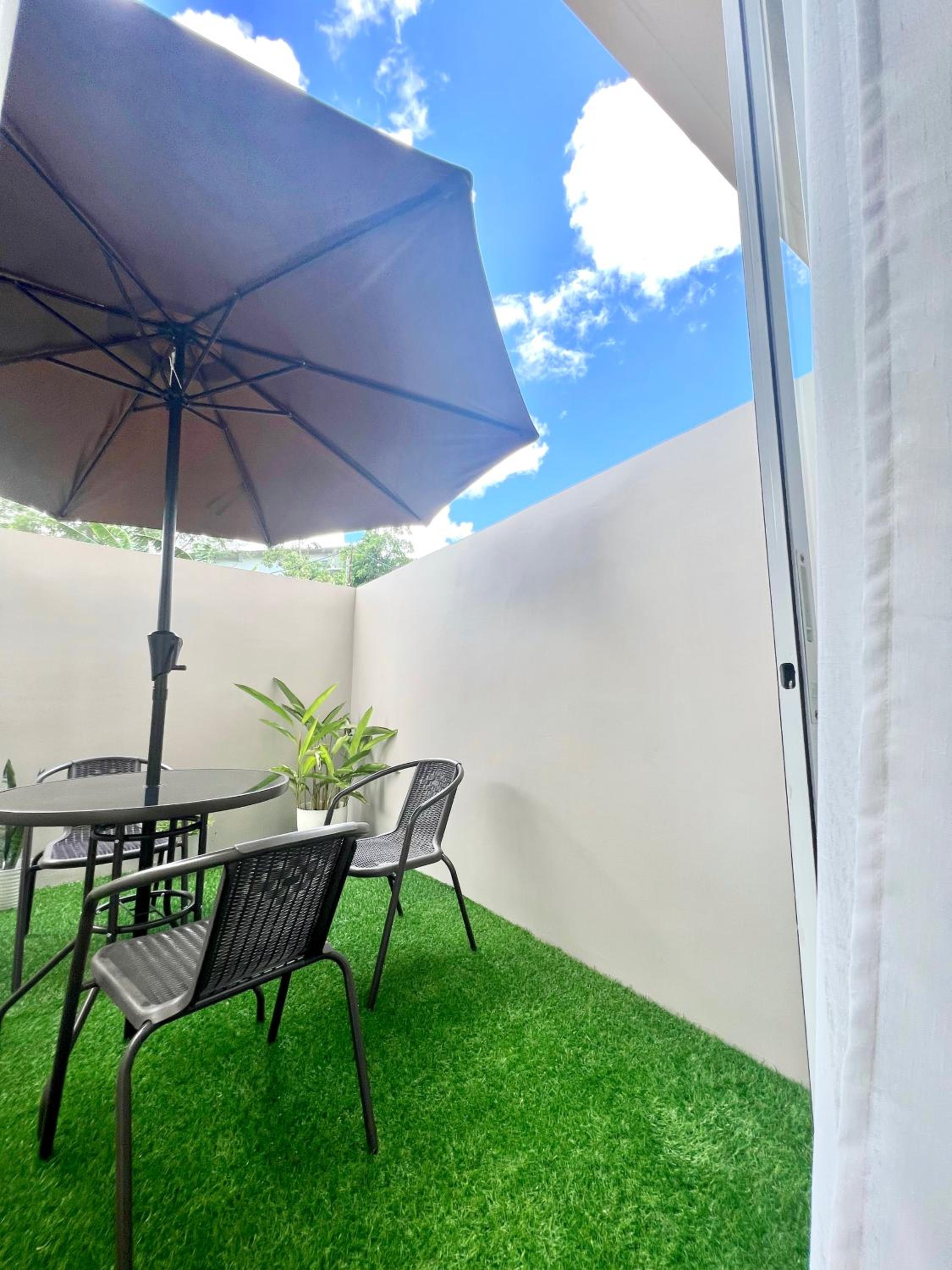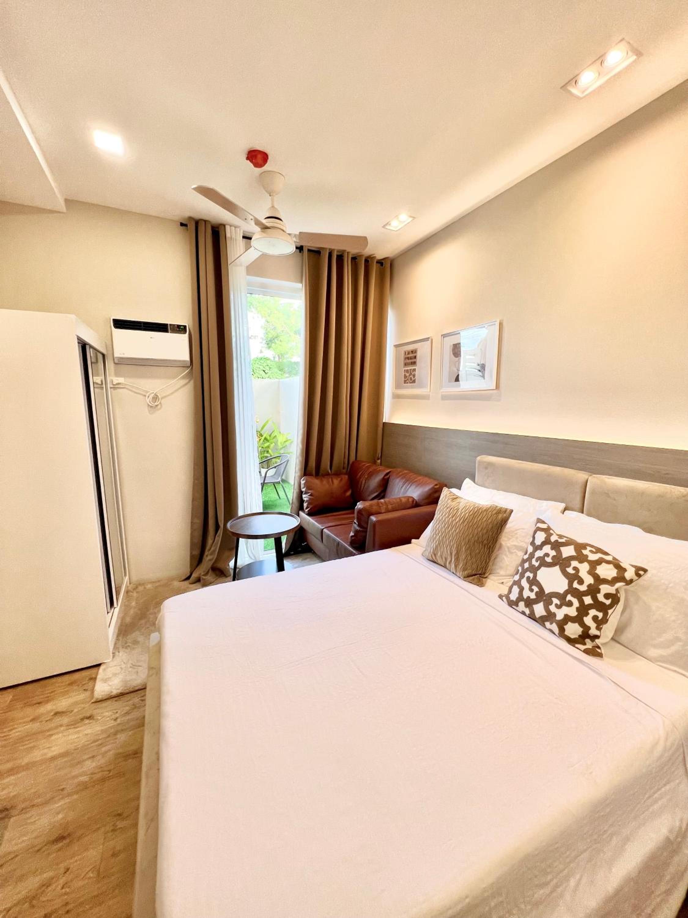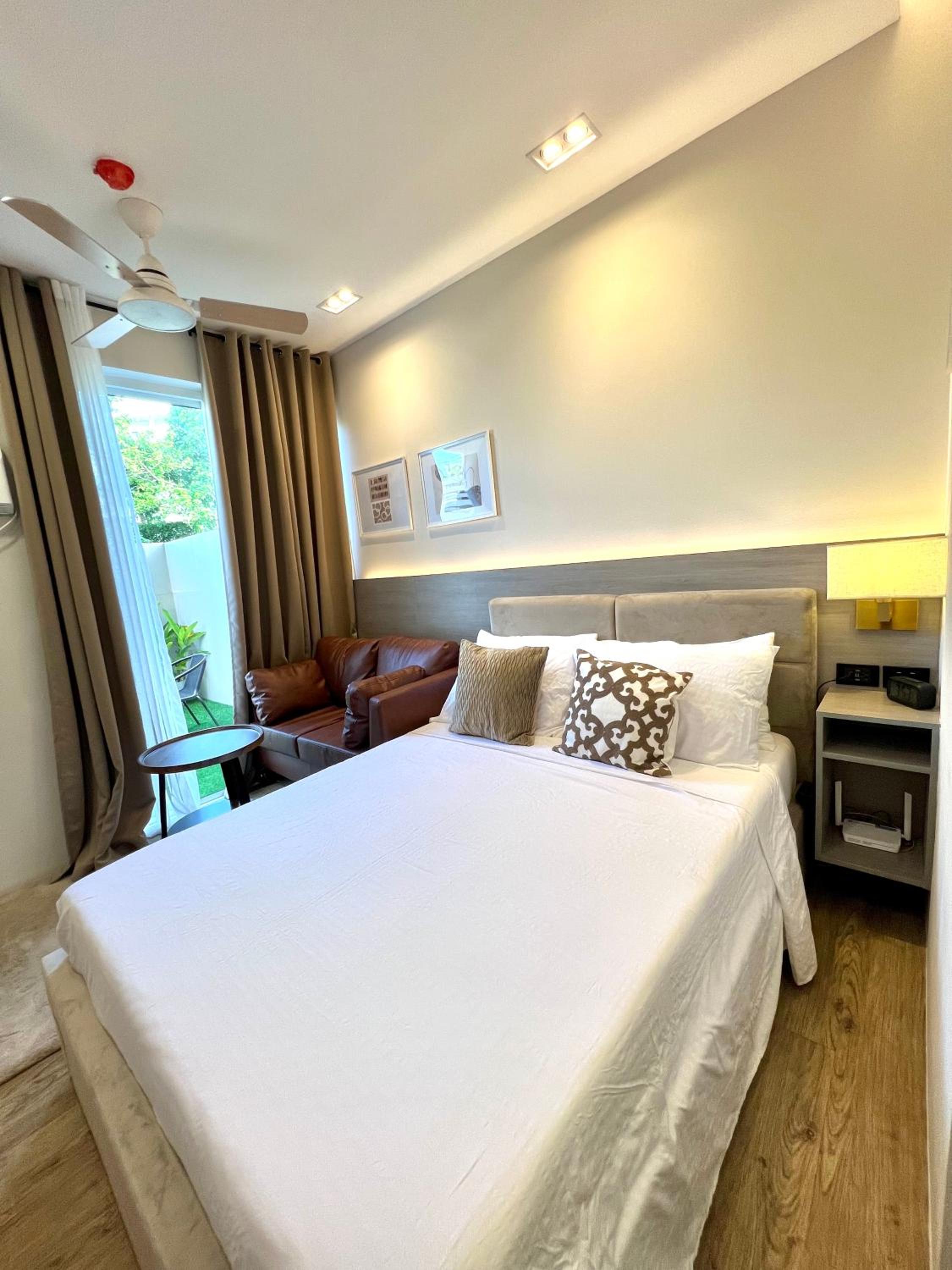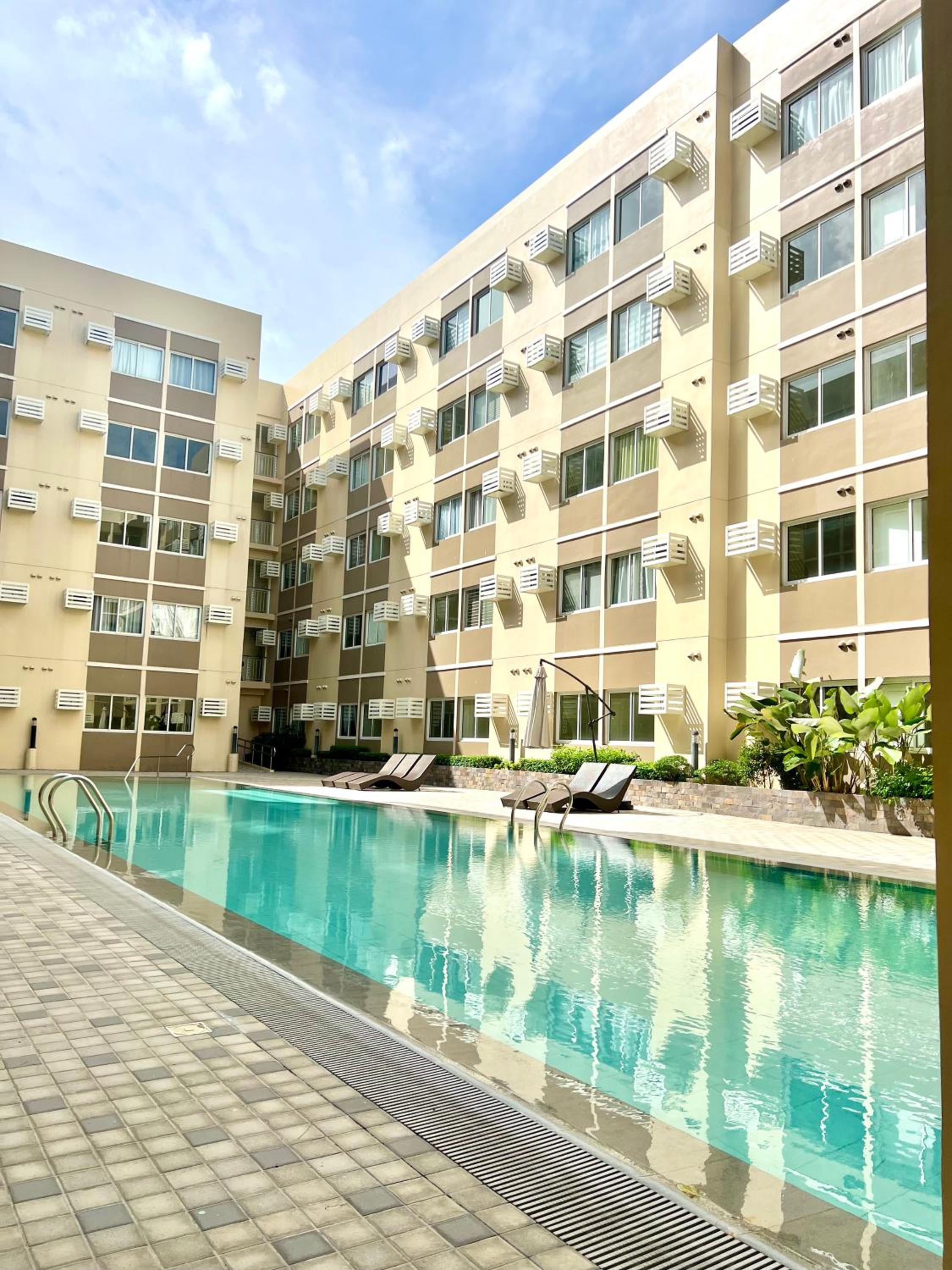 The location is close to the golf course of Silang, ideal if you like to play golf. It is a recently new building, the appartment is up tp date, extra nice were the complimantairy coffee/sugar in the kitchenette plus the complimentairy soap/shampoo/conditioner in the bathroom. The bed is super good quality, and since there is no road nearby there were no disturbing sounds, we slept like a King. On top of that there is a small secluded private outdoor space with a lounge set, perfect for breakfast or to relax after swimming. The complex has a big pool (closed on Monday) which is free to use. To be short, next travel in November we will book this room again!