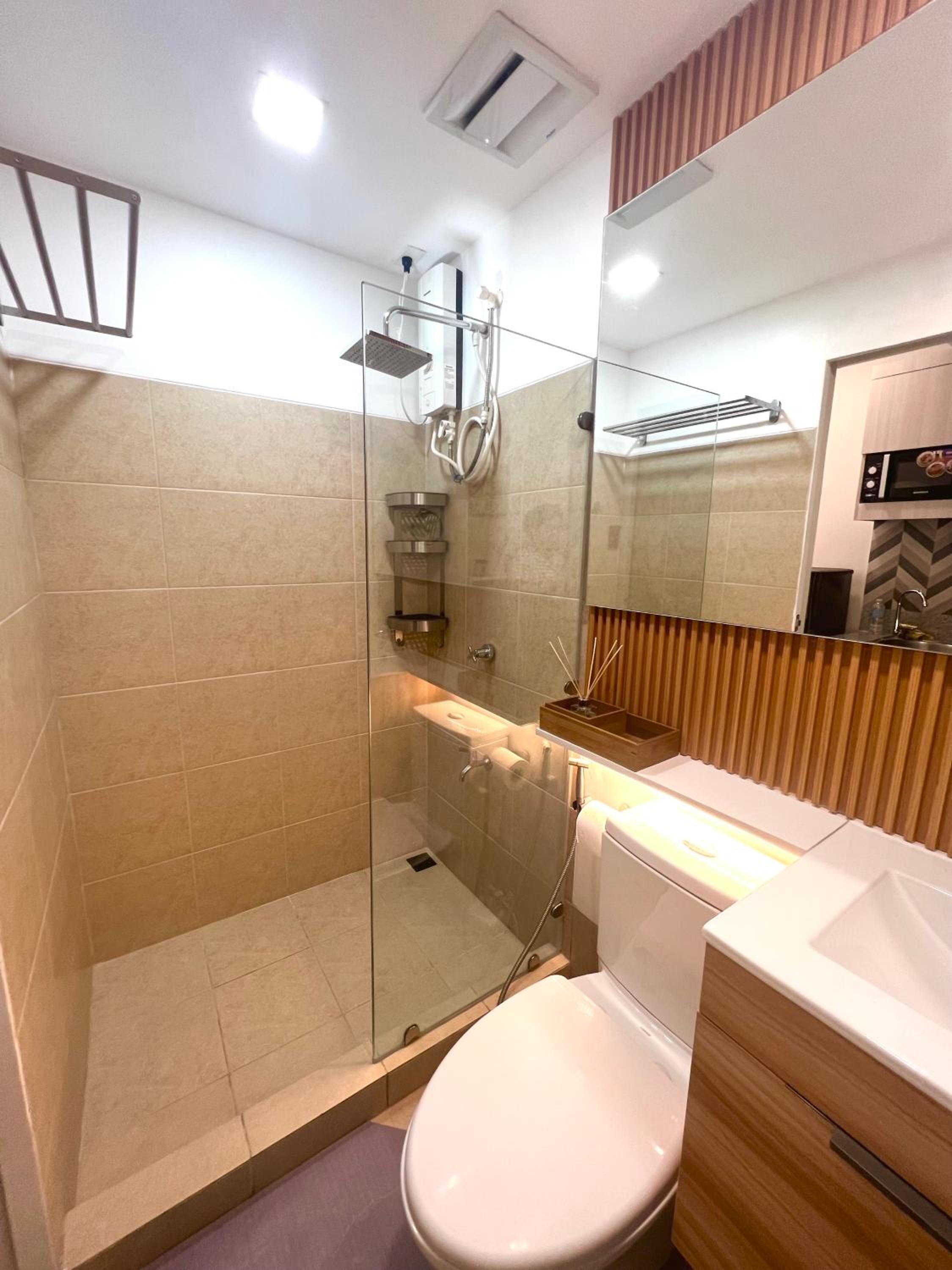The unit is clean, as well as the comfort room 🥰 We're so happy and satisfied with our stay. Sadly we aren't able to use the pool but will definitely sure to book again in this unit 🥰