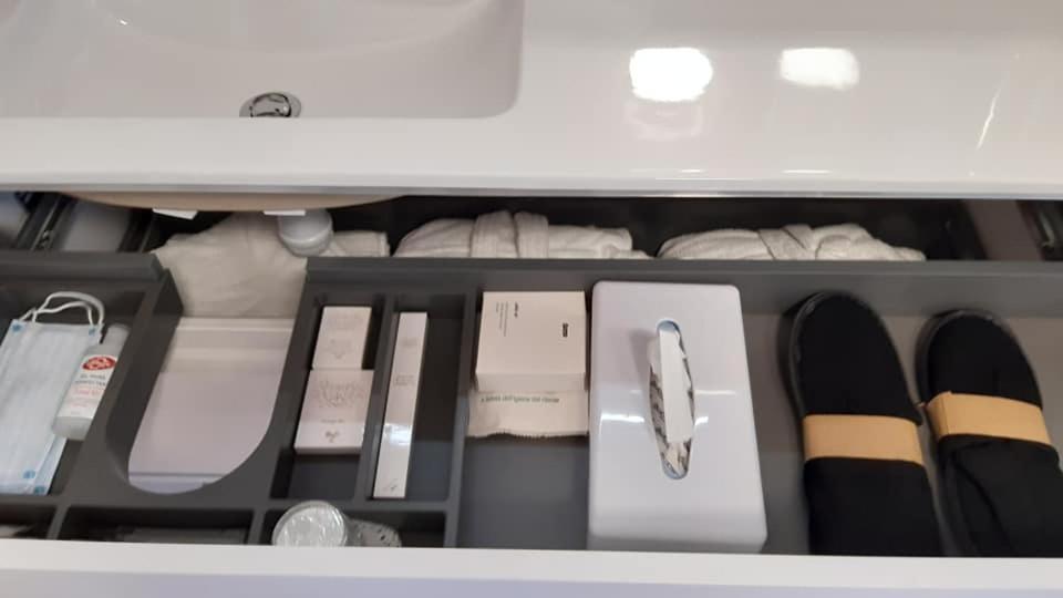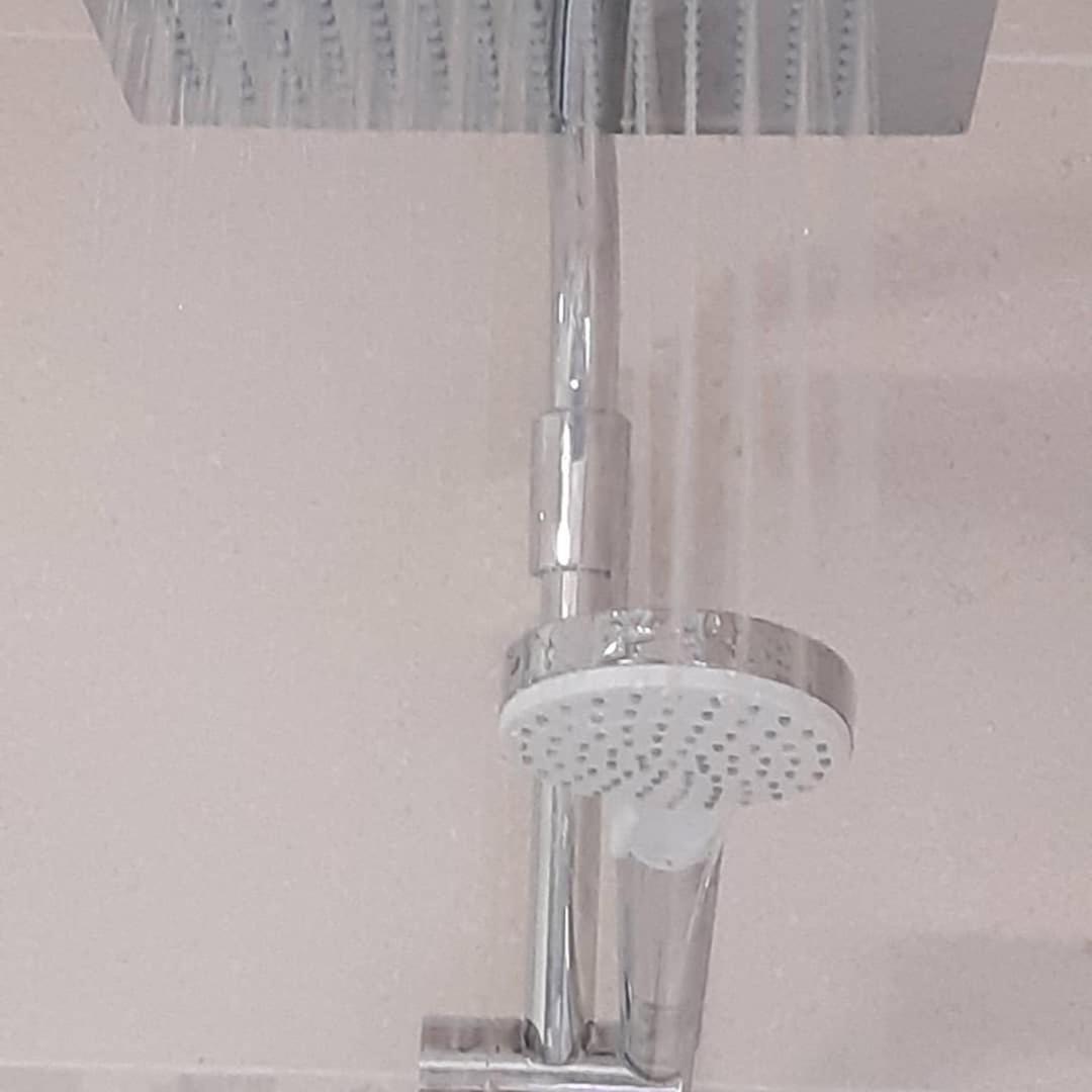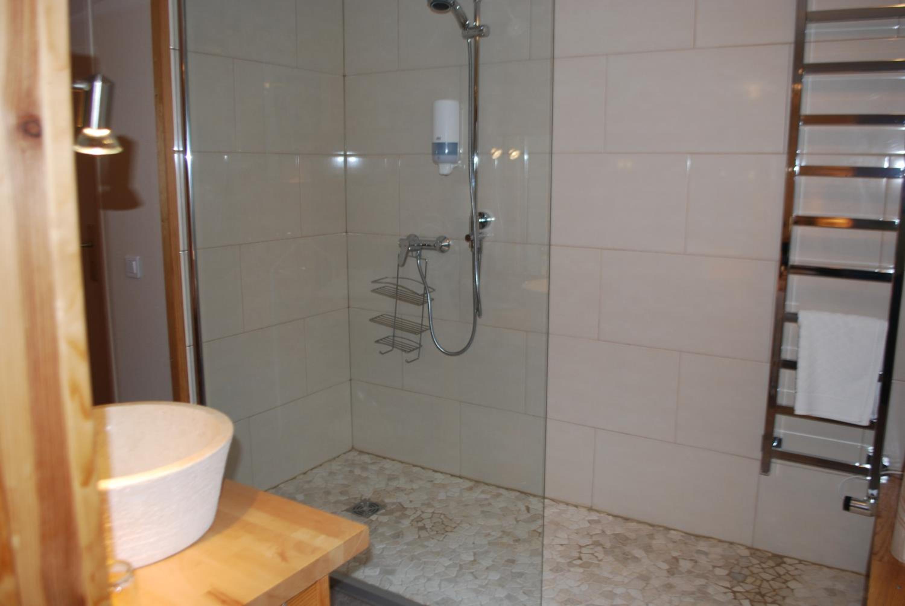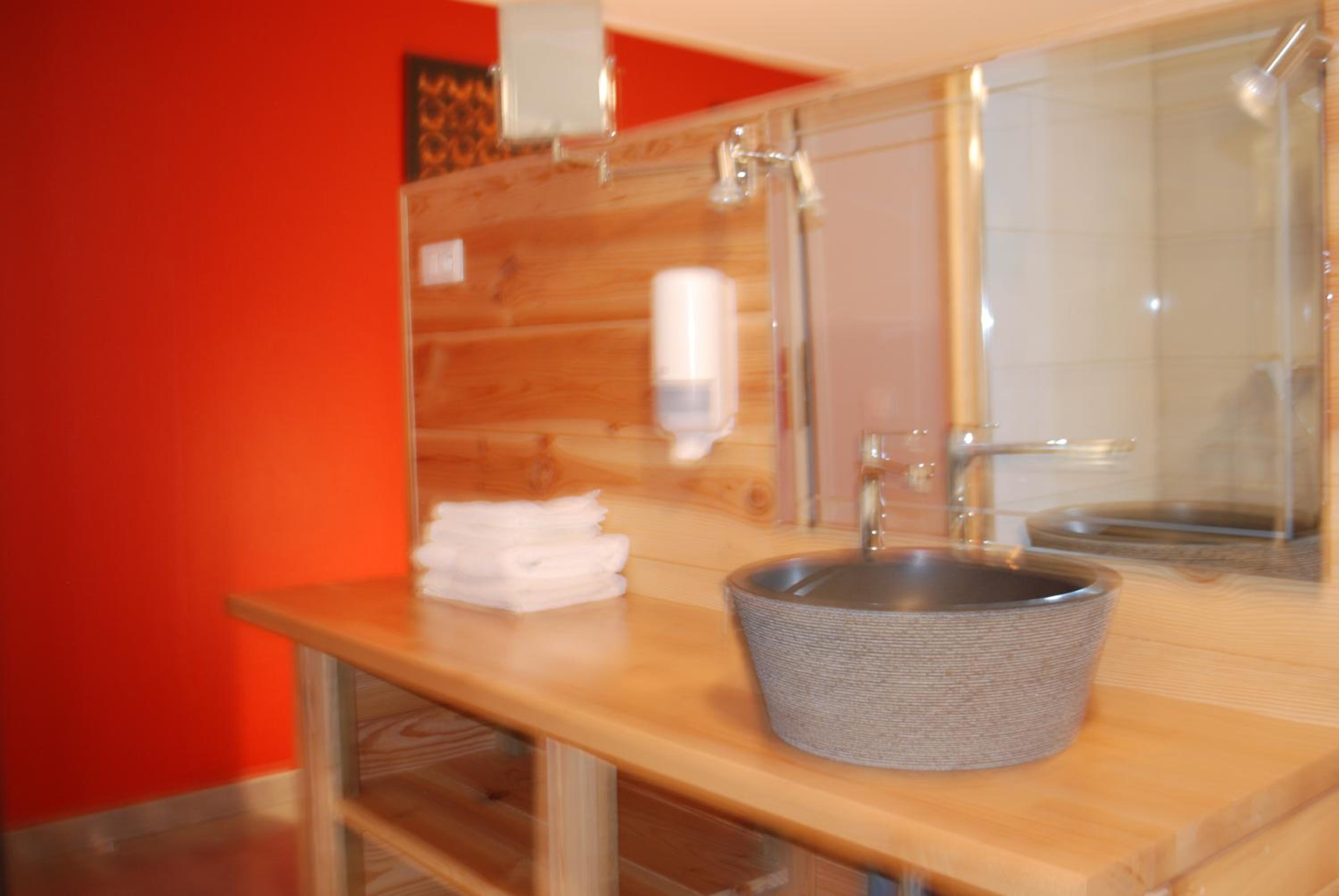 Vraiment dommage que la douche soit dans la chambre et qu'une ventilation bruyante s'enclenche dans les WC. L'absence de table de nuit n'est pas pratique.