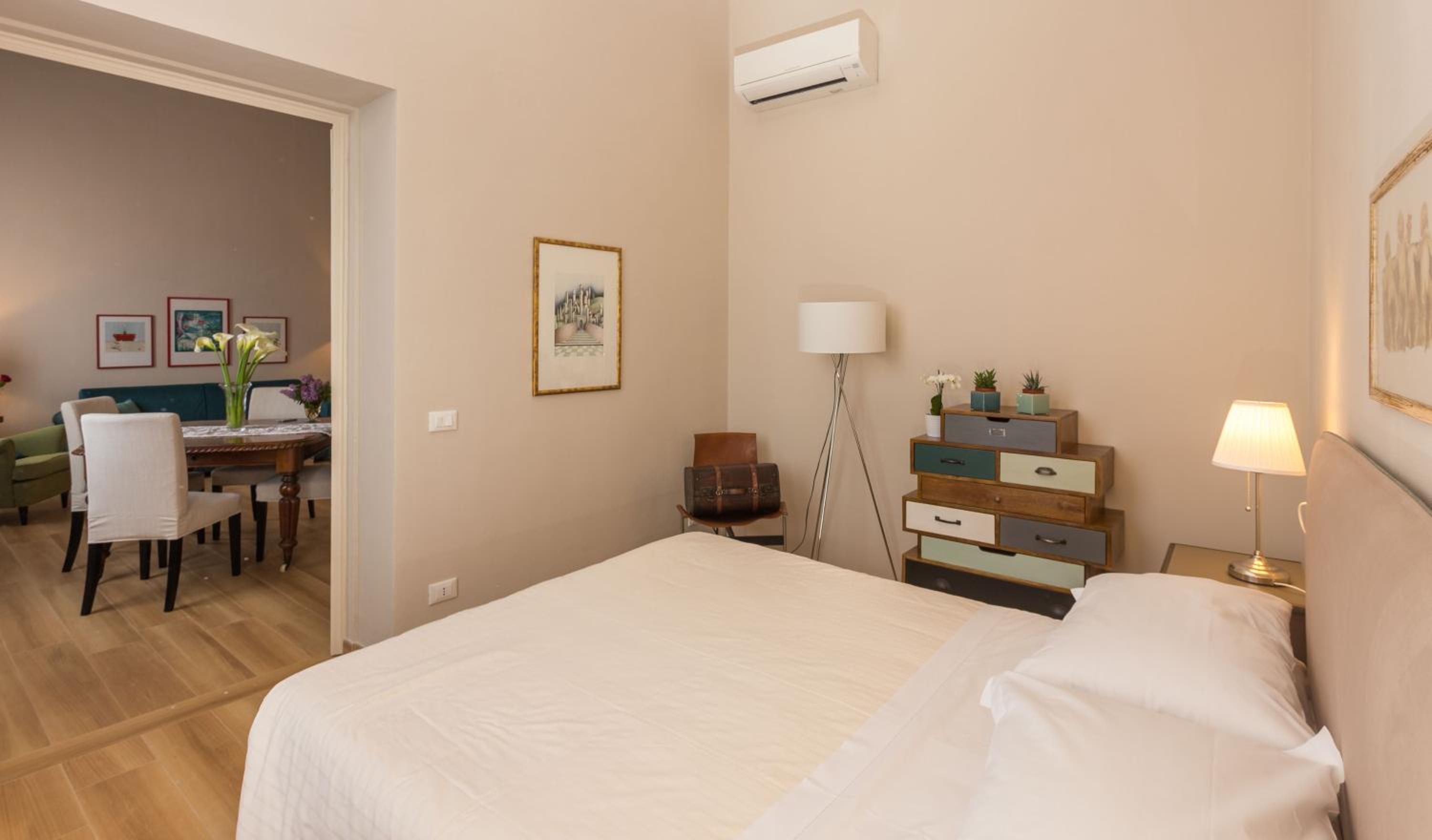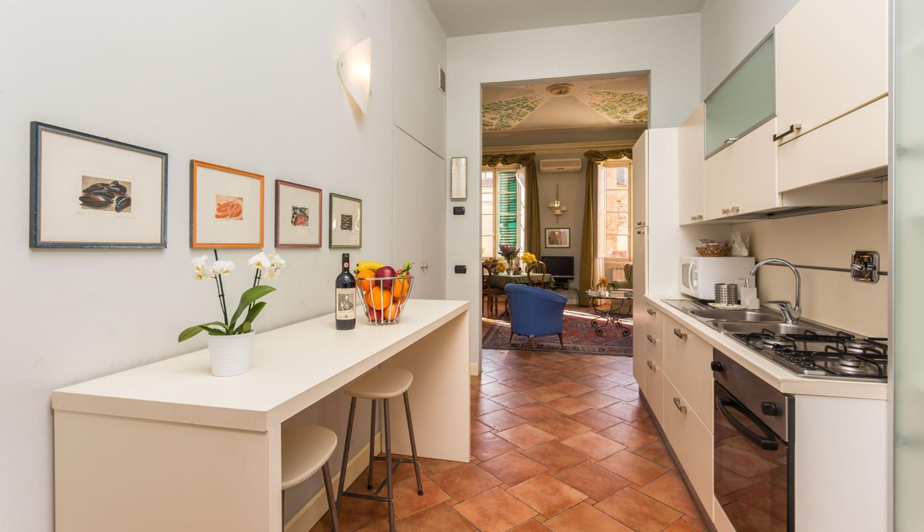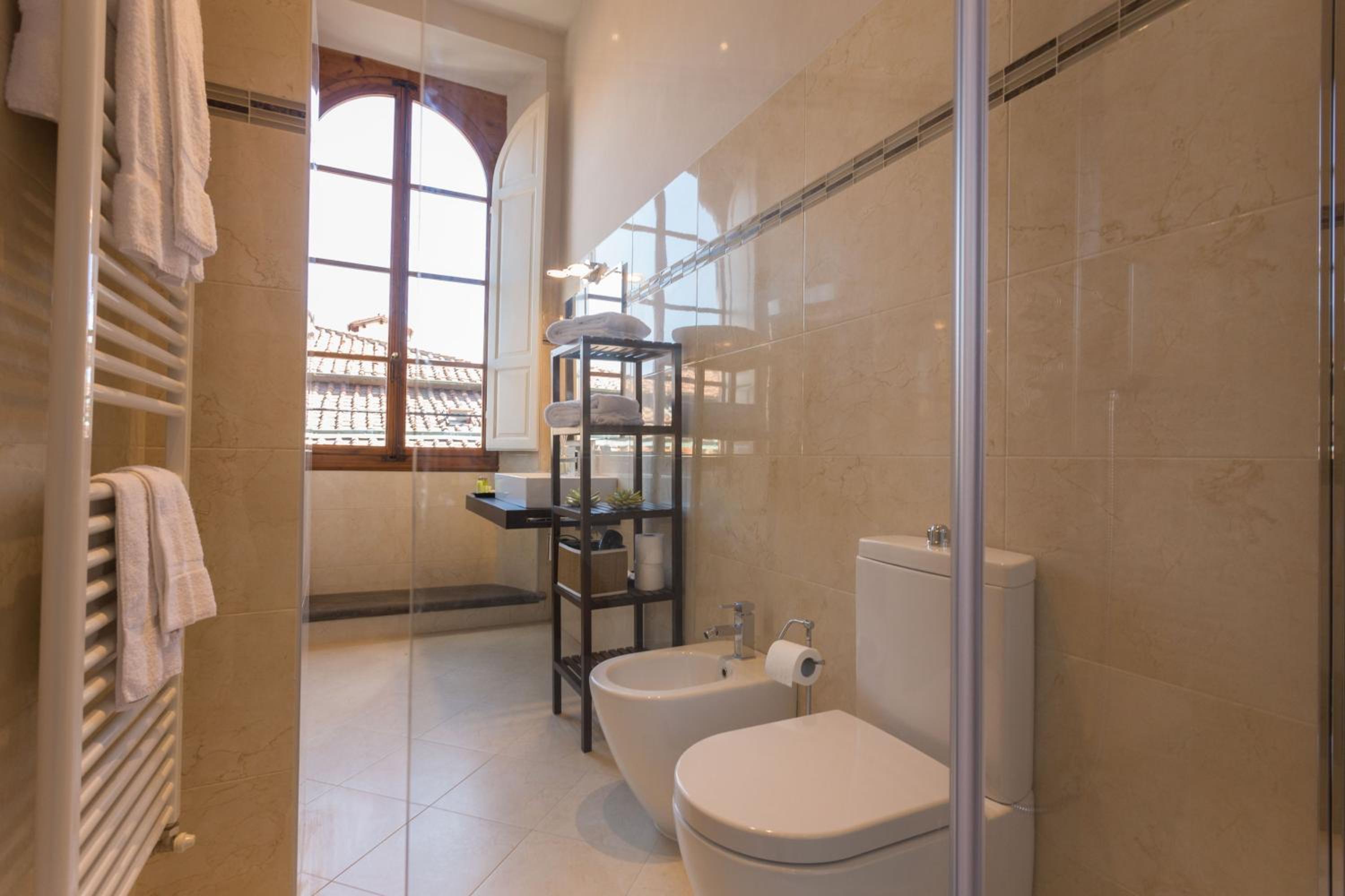 Admire the meticulously restored original fittings, floors, and banisters that adorn the Palazzo Alfani. Revel in the fusion of ancient architecture with modern technology for a truly unforgettable stay.