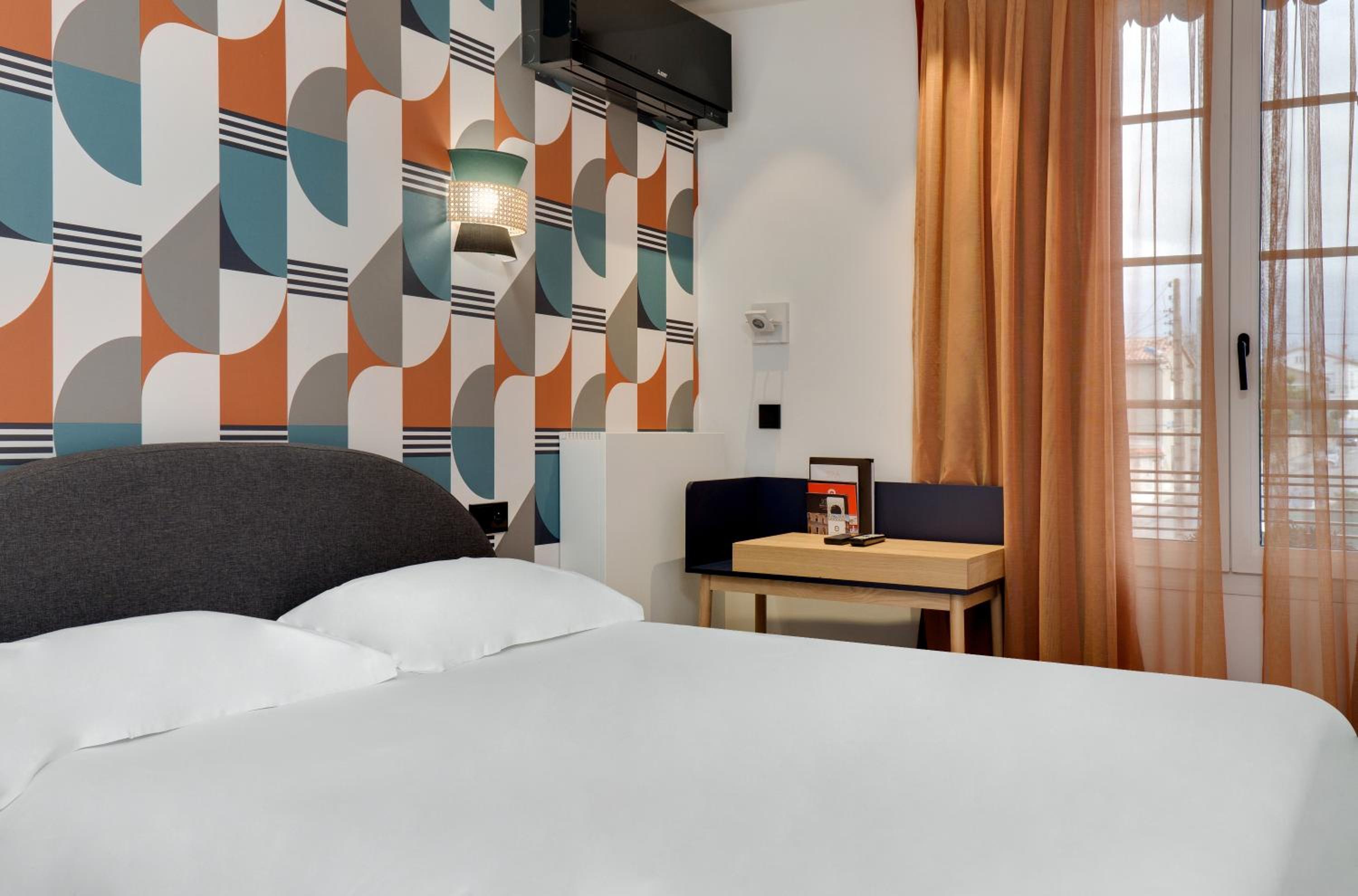 Ubicación perfecta para visitar centro histórico Carcasona (5 minutos andando). Personal muy amable. Decoración del hotel llamativa, diferente, muy bien.