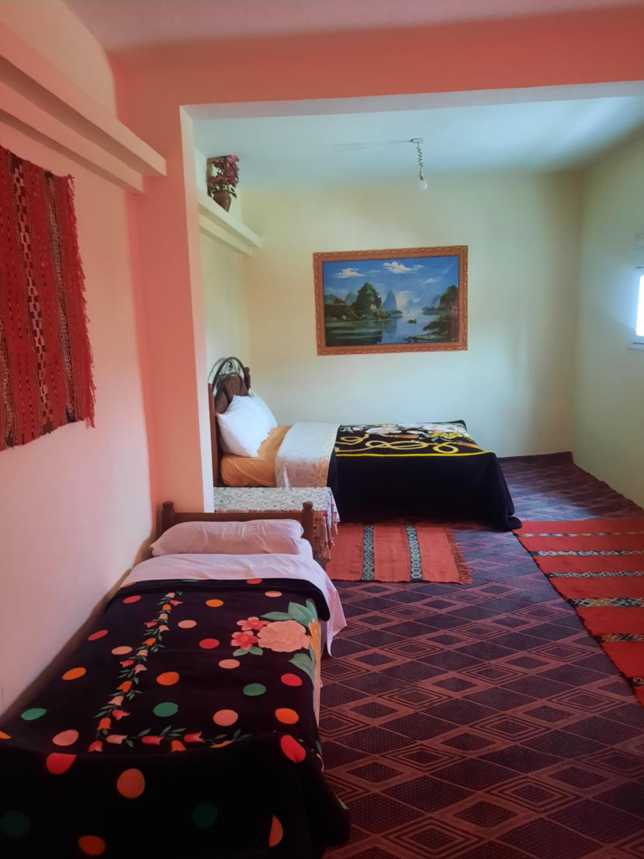 Trotz der Kälte (wir kamen im Dezember 2025) und die Wasserrohre waren teilweise eingeeist, hat alles andere an sich ganz gut geklappt. Die Not-Heizung im Zimmer - na ja - es war kein Eis da. Fatima mit ihrer Mütze und den Socken - so ist das im Atlas und im Winter - authentischer geht´s jetzt wirklich nicht. Das hat uns aber super gefallen. Oben war kein Platz mehr.