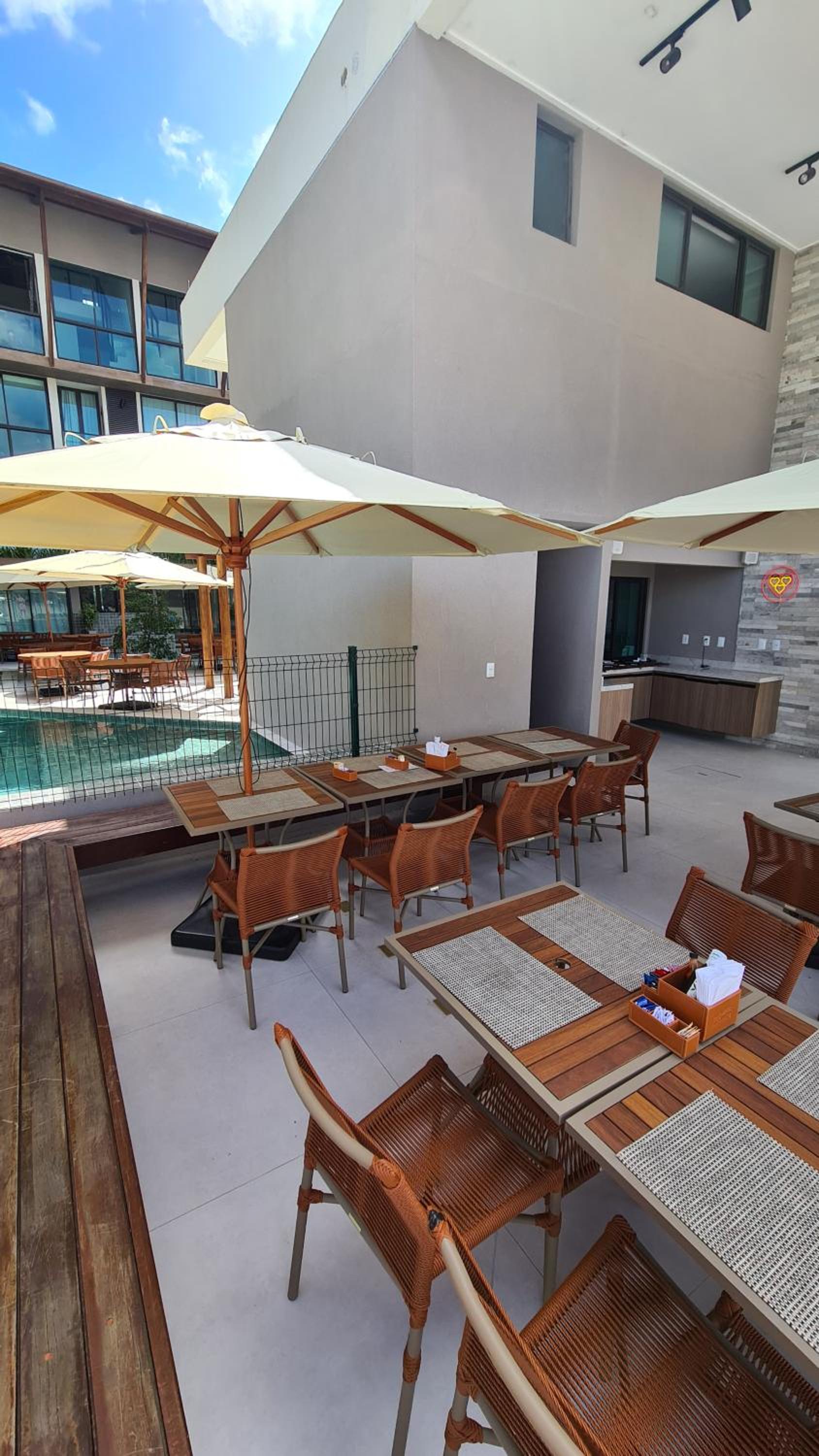 Ah o café da manhã era servido num local que pegava muito sol, ficando os alimentos no sol tbm, o que achei um pouco inadequado.
