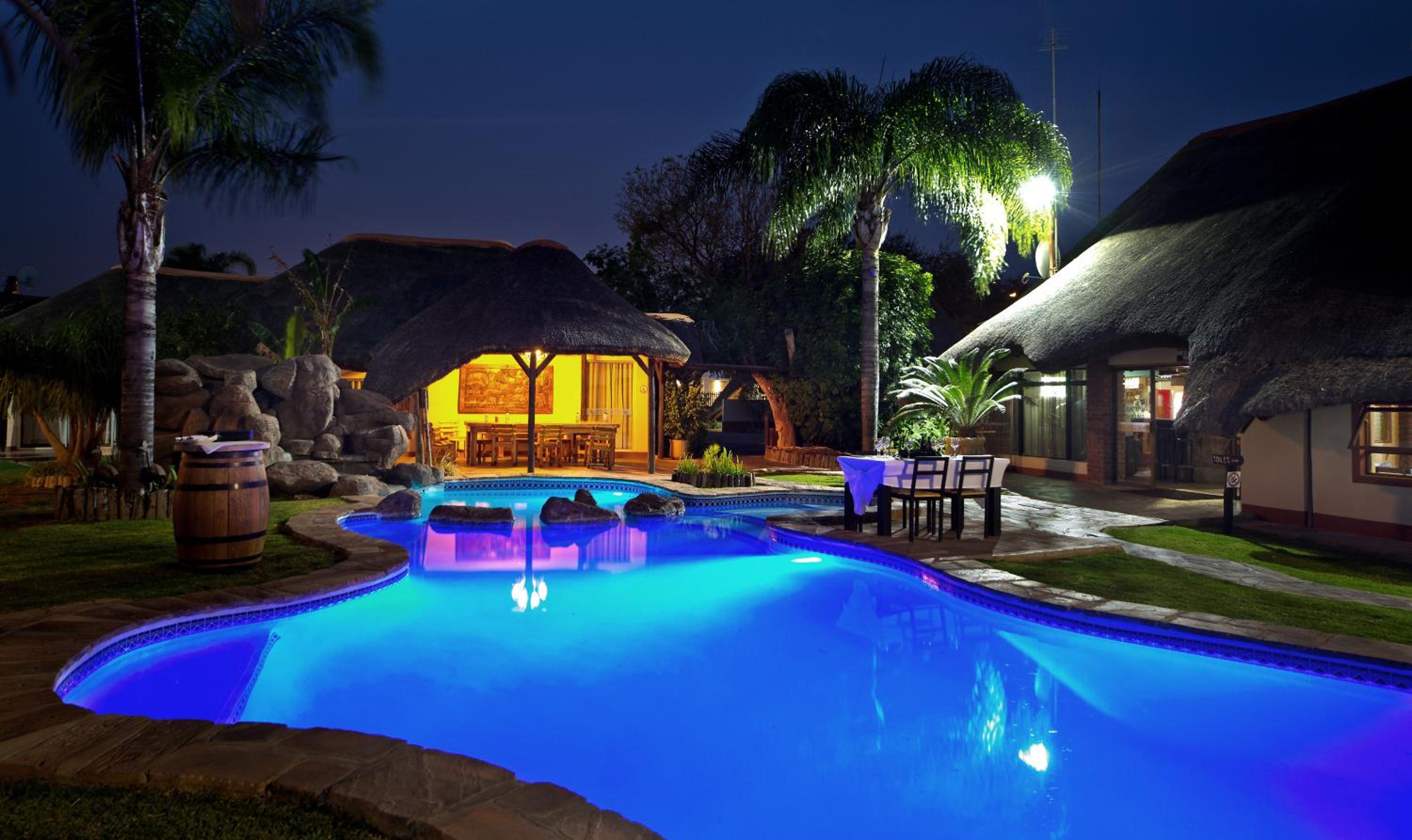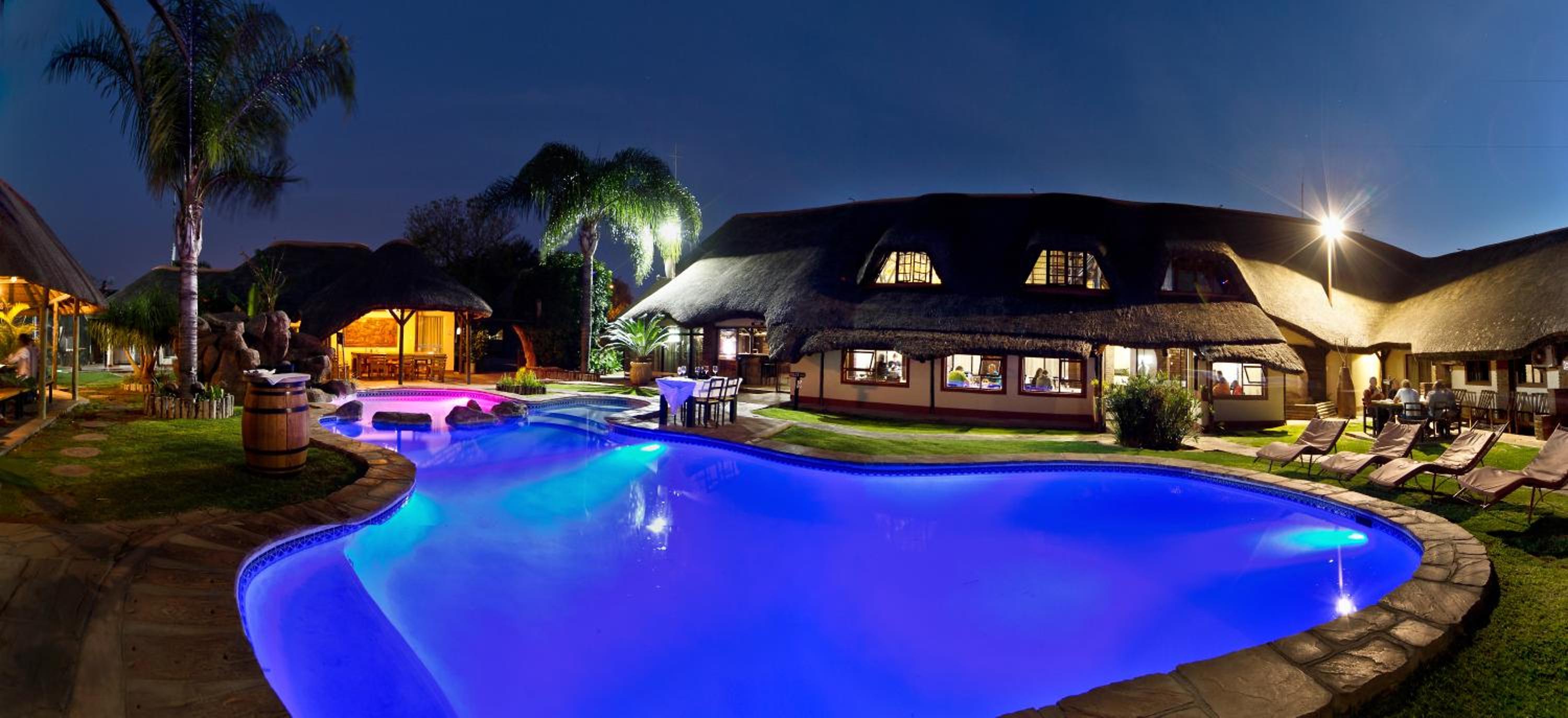 Experience the charm of African-style buildings nestled in a picturesque garden at Cest Si Bon Hotel in Otjiwarongo. Relax by the outdoor swimming pool or enjoy a friendly match at the tennis court.