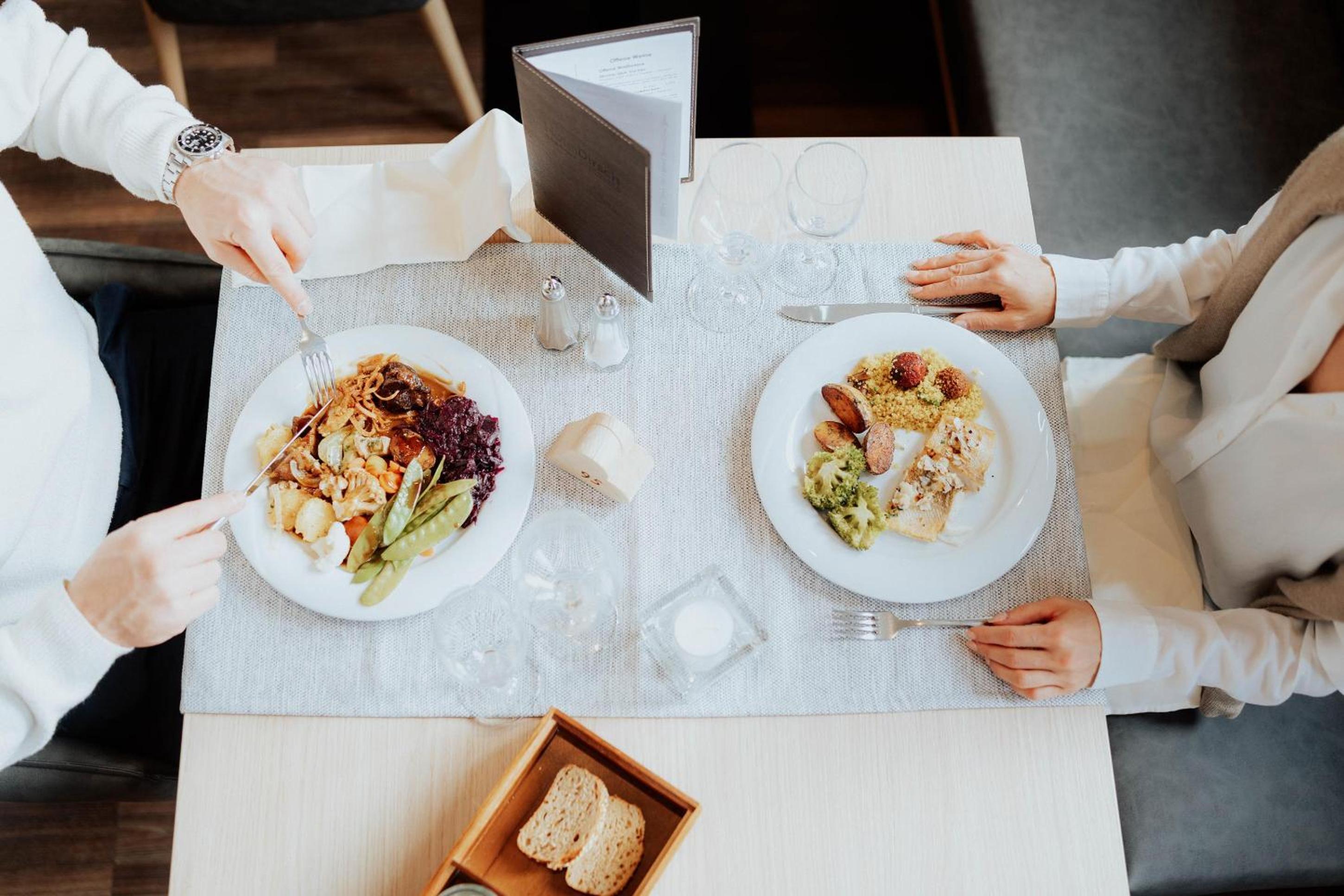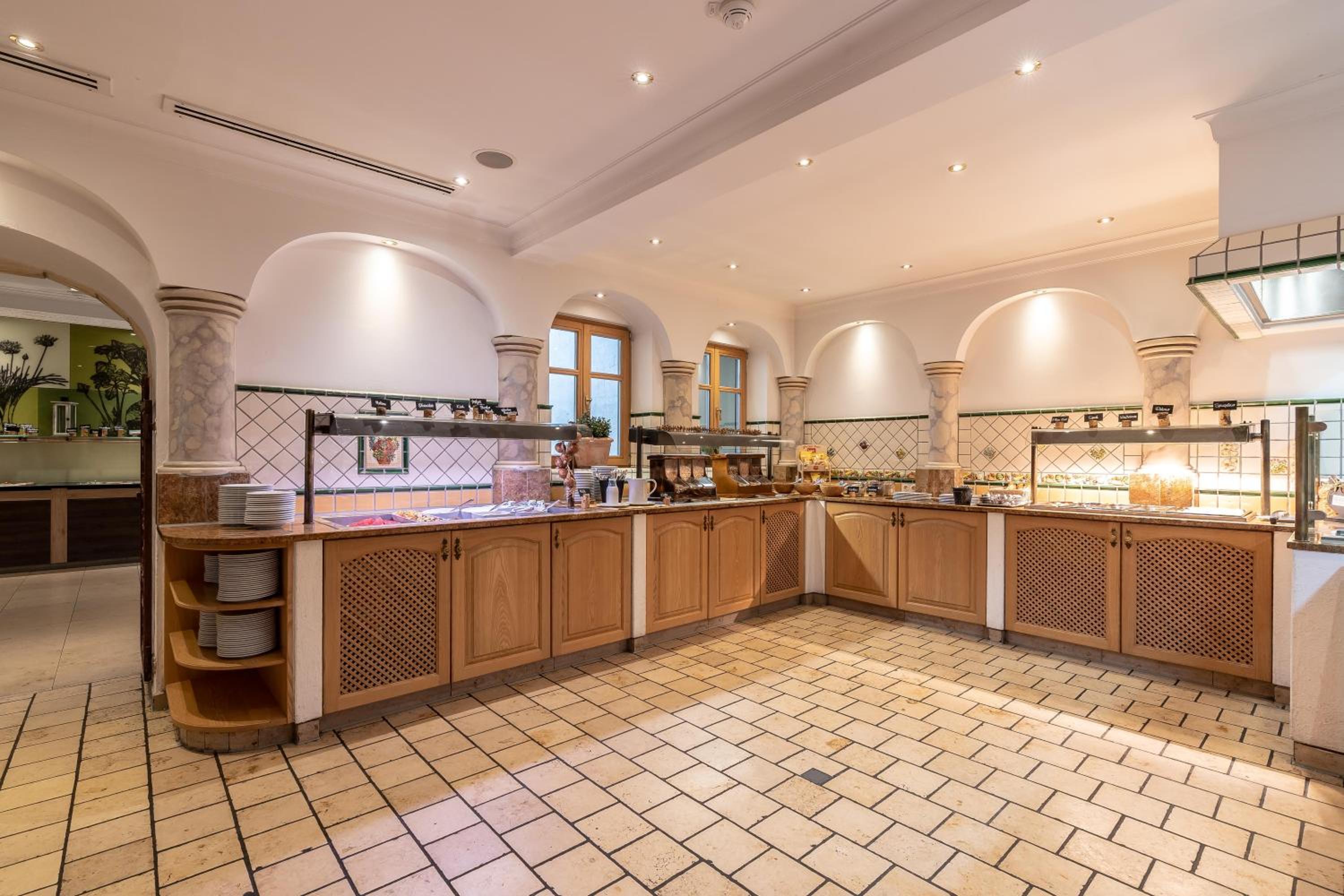 Vermisst habe ich beim Frühstück die klassische Kaffeetasse mit Untertasse, wie auch den Kaffeelöffel am Frühstückstisch. Verfügbar war nur der einfache Kaffeepott. Die Spiegeleier und der Frühstücksspeck waren vorbereitet und leider kalt (an beiden Buchungstagen). Die Auswahl der Speisen à la Carte für das Abendessen war sehr eingeschränkt und schwerpunktmäßig auf die Buffetauswahl ausgerichtet. Der Wellness-Bereich war am Wochenende überlaufen.