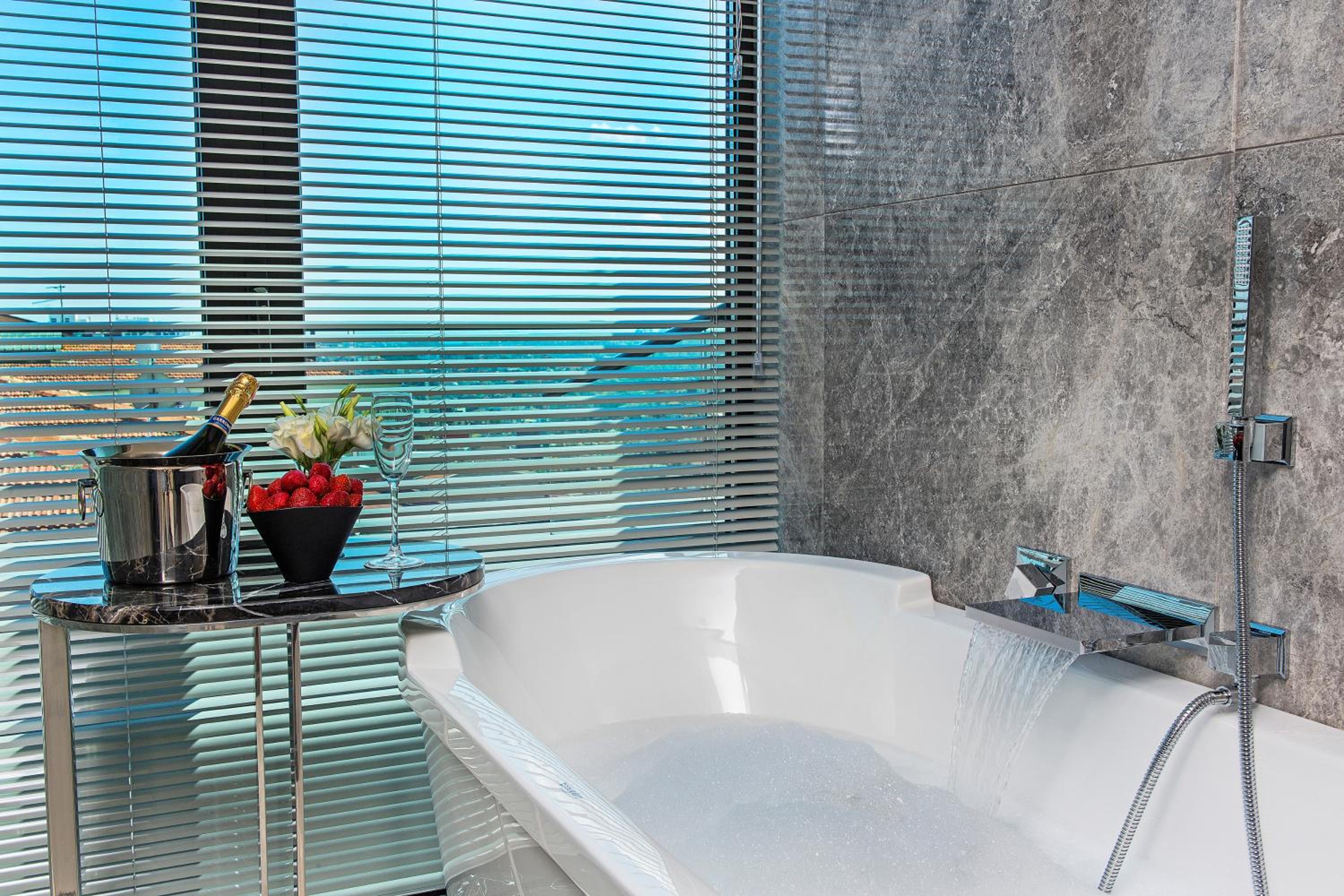 Modern and Stylish Rooms: Indulge in contemporary rooms with flat-screen TVs, private bathrooms, and stunning city views. Relax in comfort with plush bathrobes and slippers provided for your convenience.