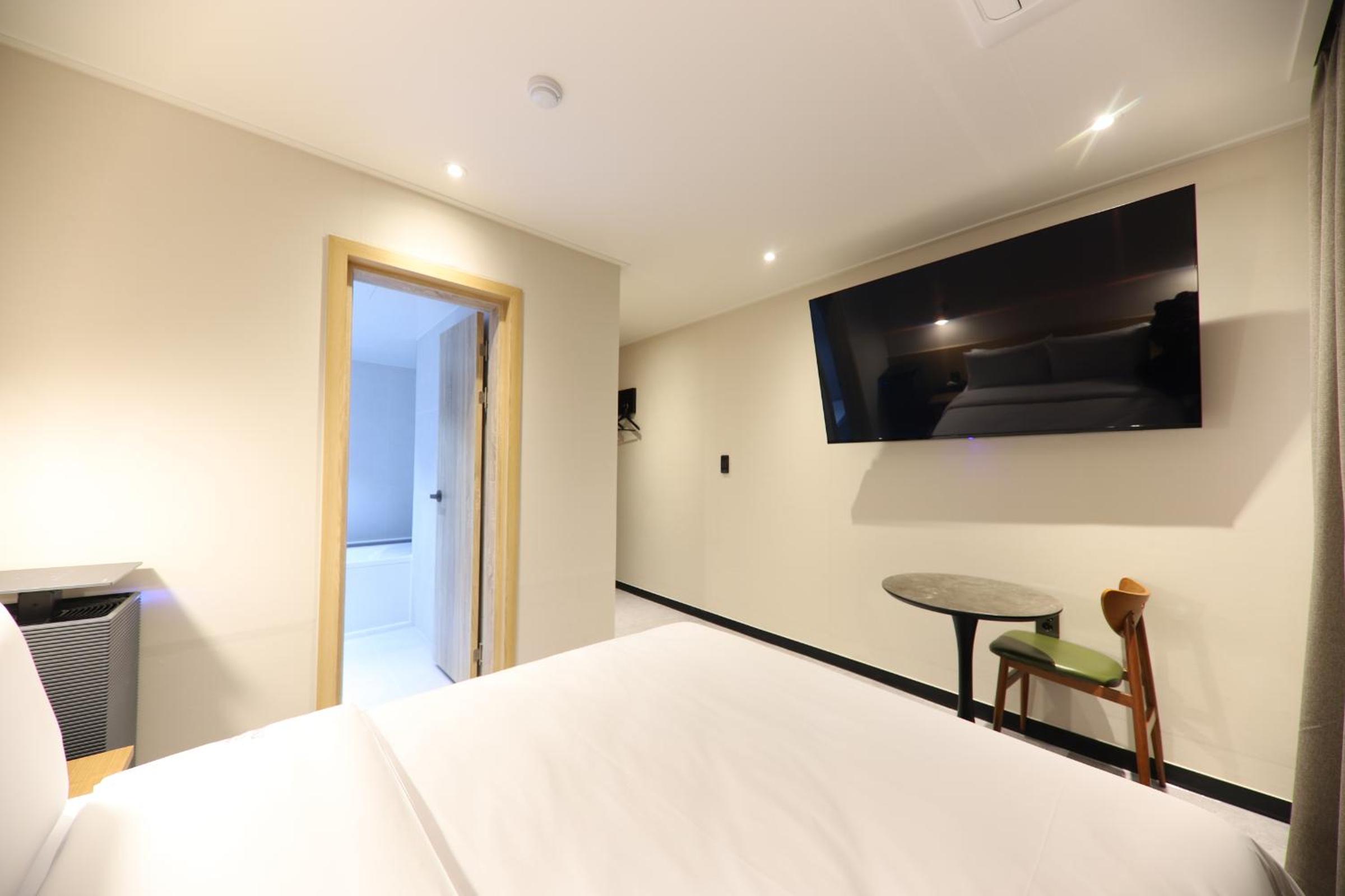 The room was a good size and the bed was comfortable. A large television streamed National Geographic programs well from the included Disney+. The amenity kit was more than expected (excellent scrubbing body towel!), and they provide both Korean-sized towels and a full-sized towel. A microwave and bottled water is available for guest use on the ground floor. During the week it was very quiet, and the room had a nice view overlooking rooftops and sunset-painted clouds. Location: reservoir and trekking trails (with swings and normal benches, respectively) are only 20 minutes away on foot, and the train station was 5 minutes/~5200krw by car. Lots of restaurants and convenience stores nearby, though do note that most of the major tourist sites are elsewhere.