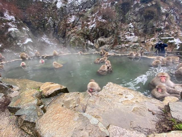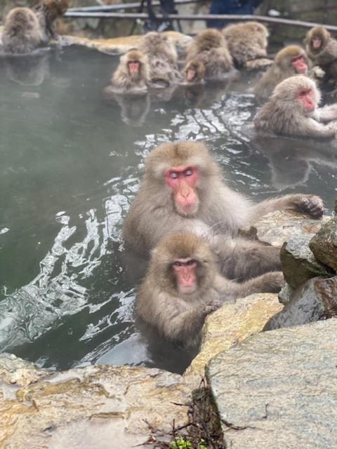 Die ruhige Lage inmitten von meterhohem Schnee direkt an der Piste und am Lift war sehr gut. Die Busse halten direkt am Hotel, sodass man auch Ausflüge in andere Skigebiete oder ins Städtchen oder vor allem zu den im heißen Wasser badenden Affen machen konnte. Das Zimmer war groß und warm und die Tatami Matten bequem, es gab auch genug davon und genug Decken zum Zudecken. Das Personal war immer freundlich und hilfsbereit, was bei uns auch nötig war, da Frühstück und Abendessen sehr japanisch waren und wir Erklärungen und Anleitung dafür brauchten. Ein ganz und gar japanisches Erlebnis!