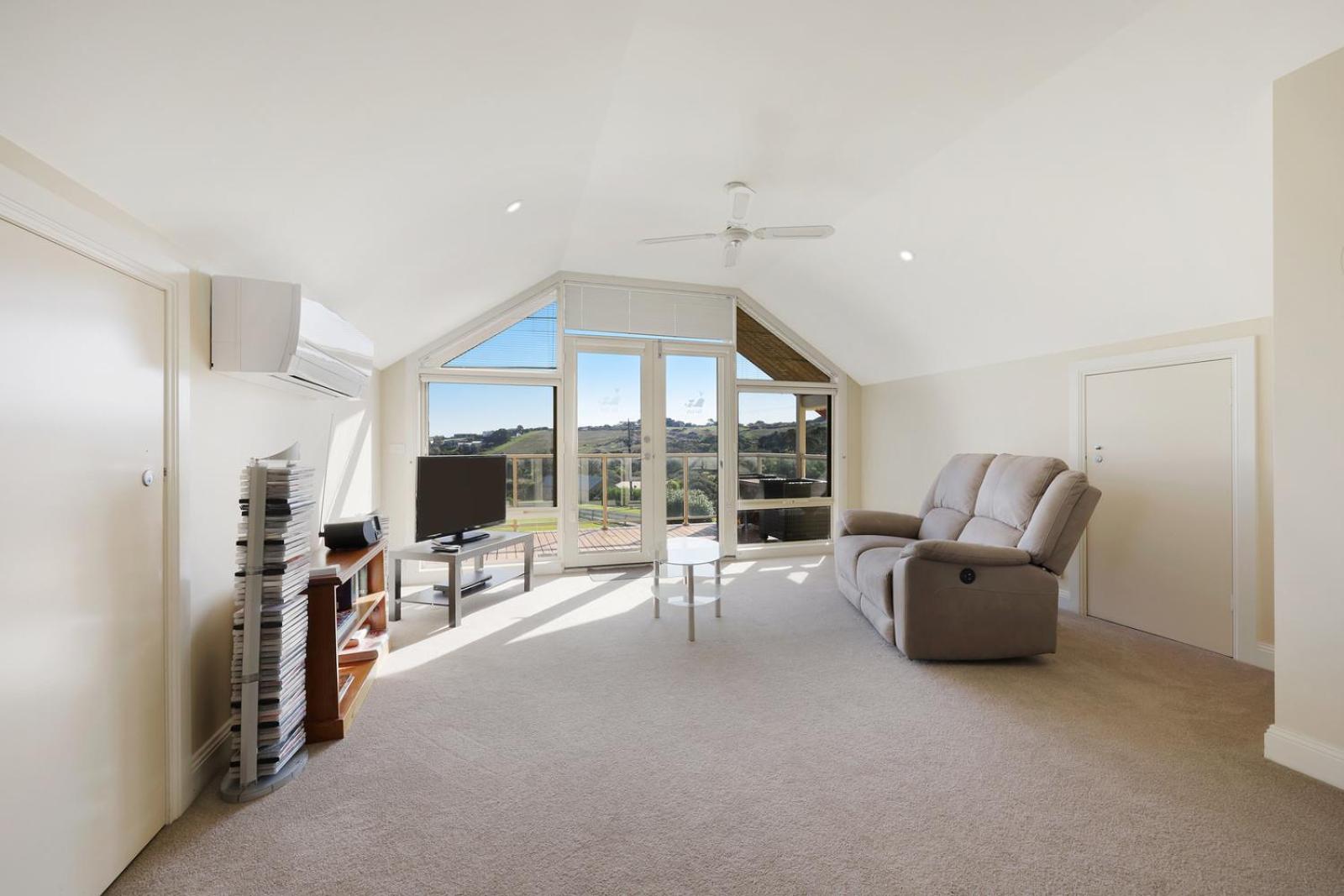 Super cute loft style accommodation boasting gorgeous views from the top balcony and a spa bath for max relaxation also.