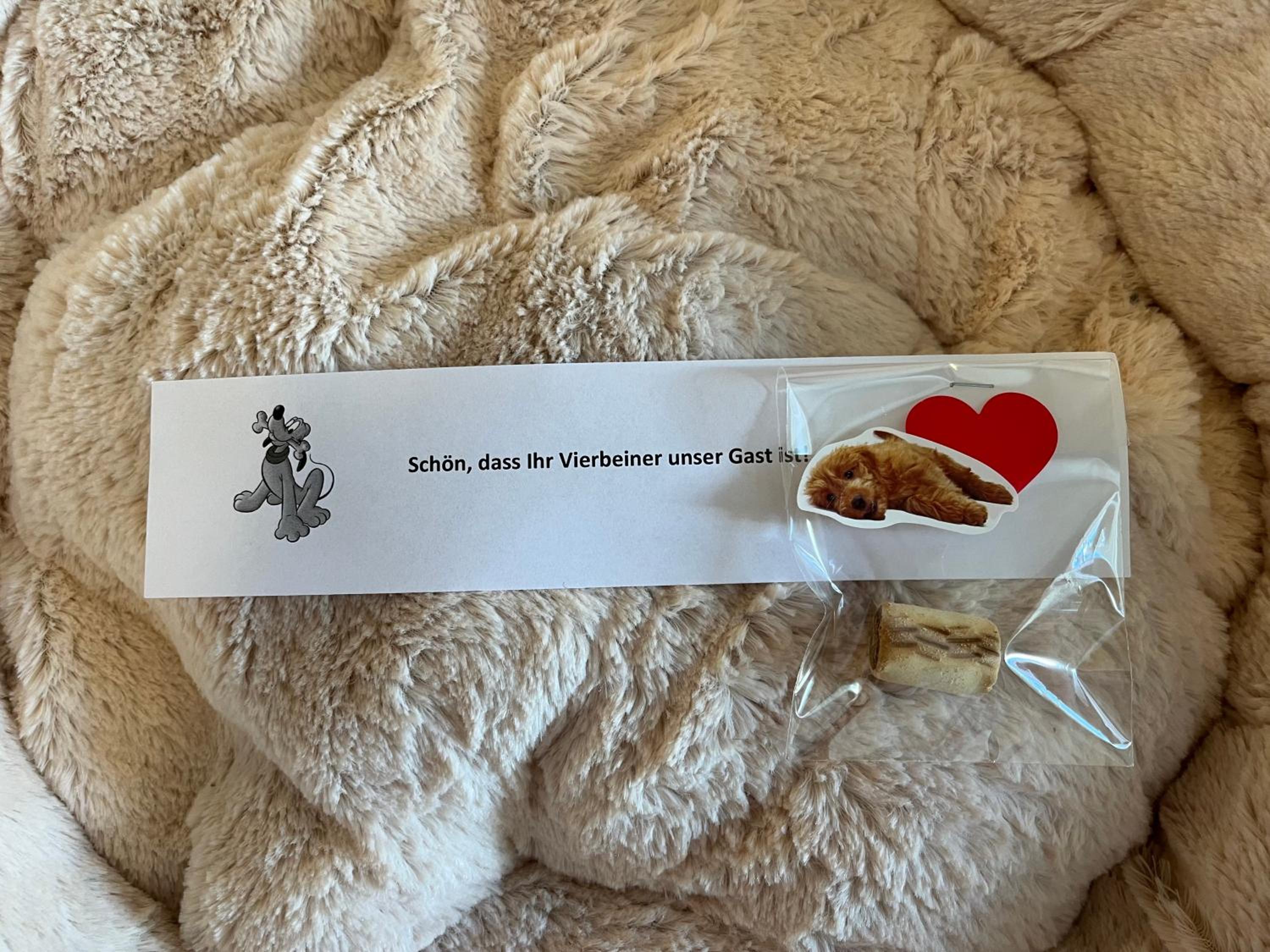 Die Unterkunft und das Personal ist absolut Hunde-freundlich. Es lagen sogar Leckerlis und eine Begrüssung für den Hund auf dem Tisch 🥰