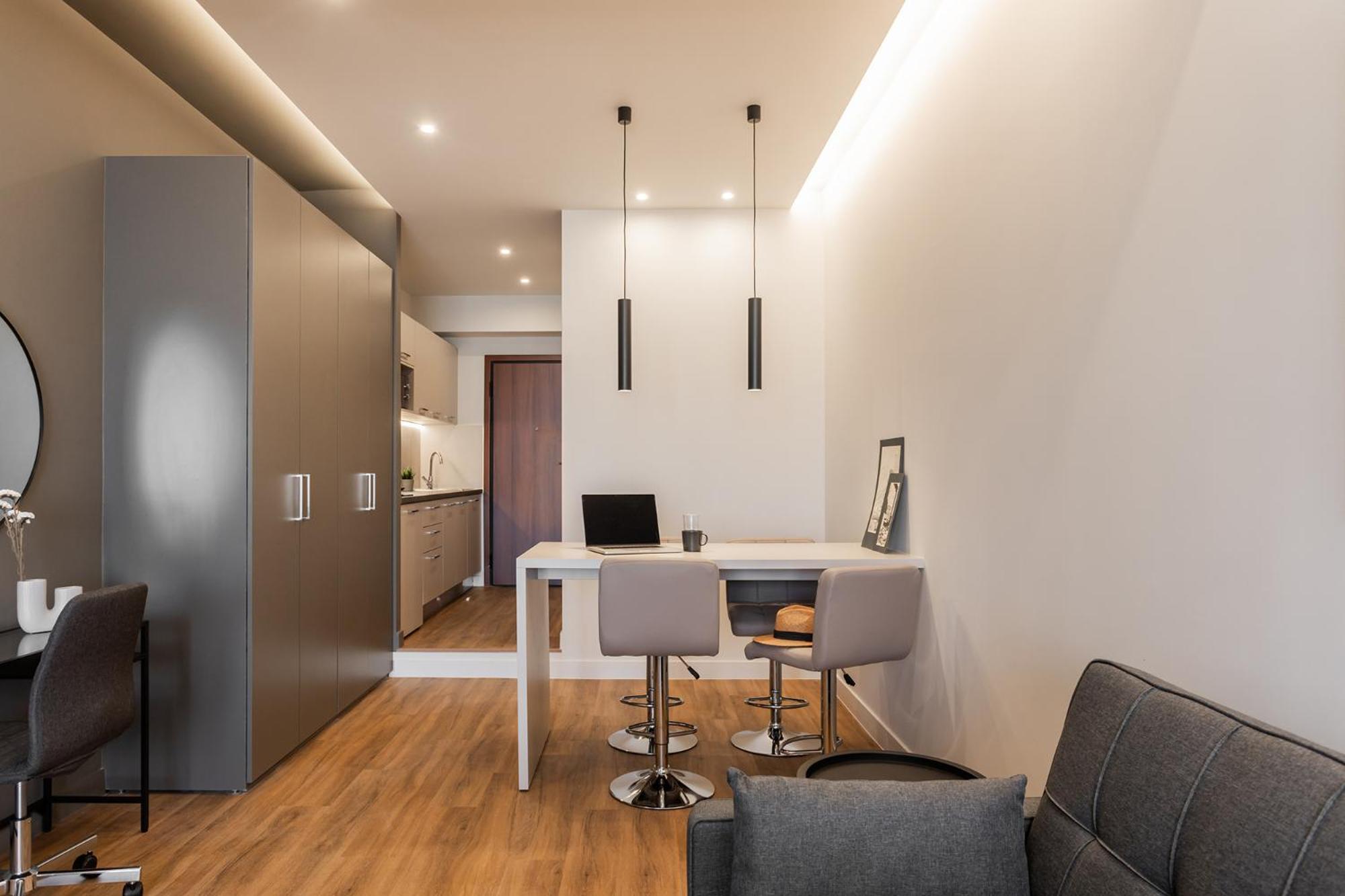 Good clean studio, ample space, also in bathroom. Comfortable bed. Lifts worked well. There was good communication with the virtual staff, and the access codes worked easily.