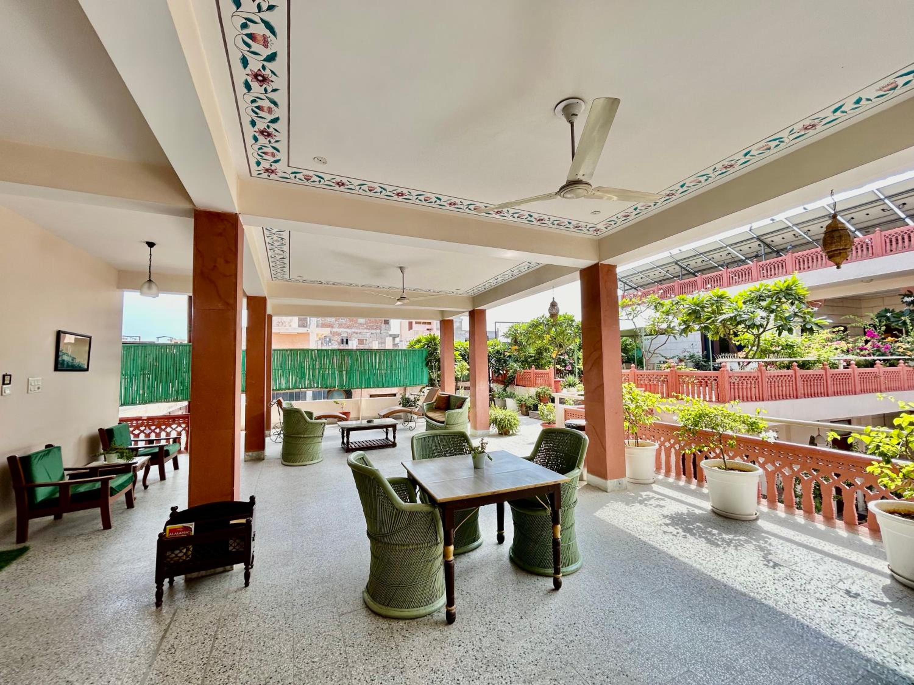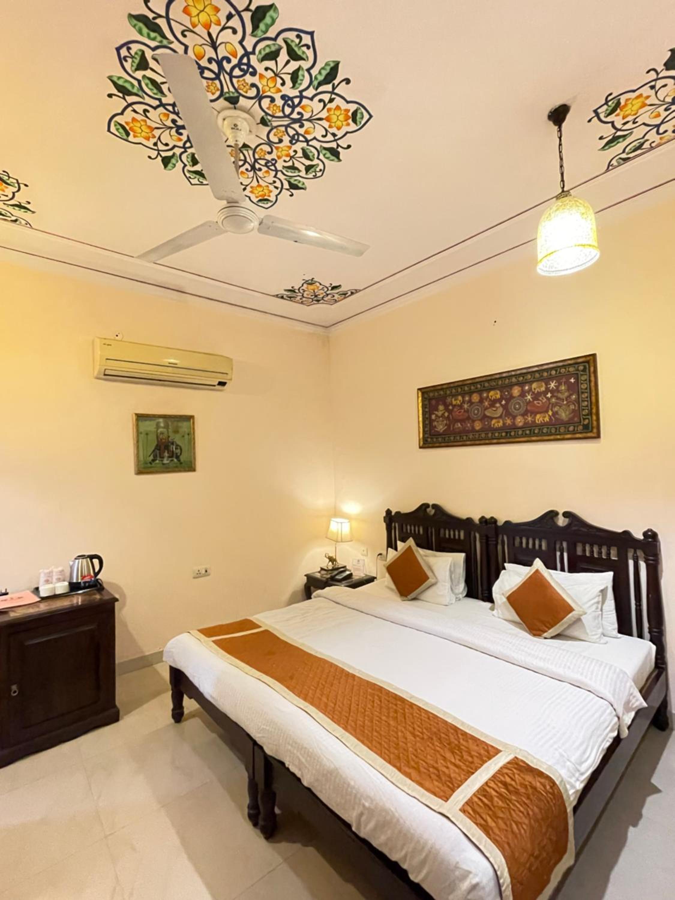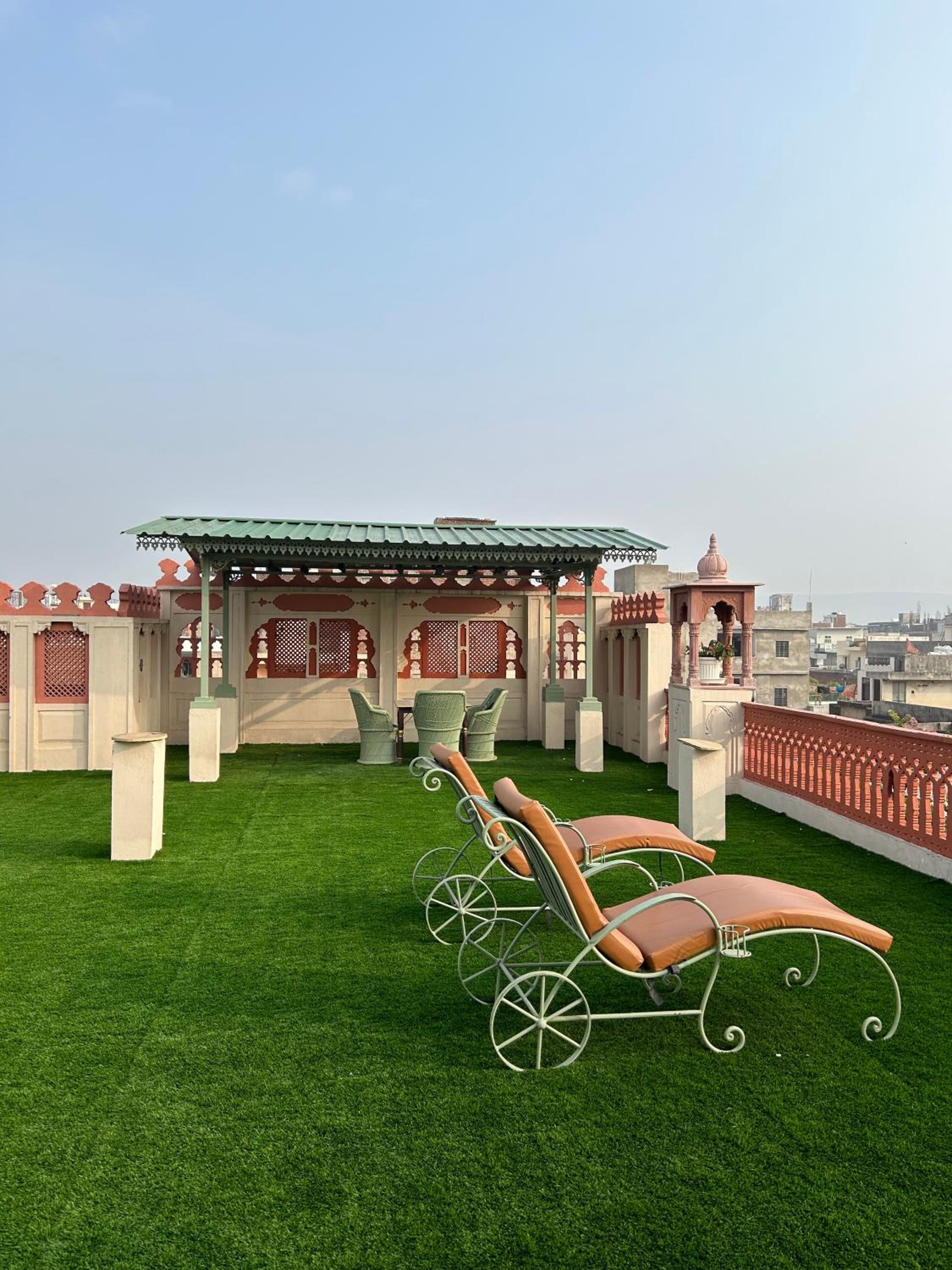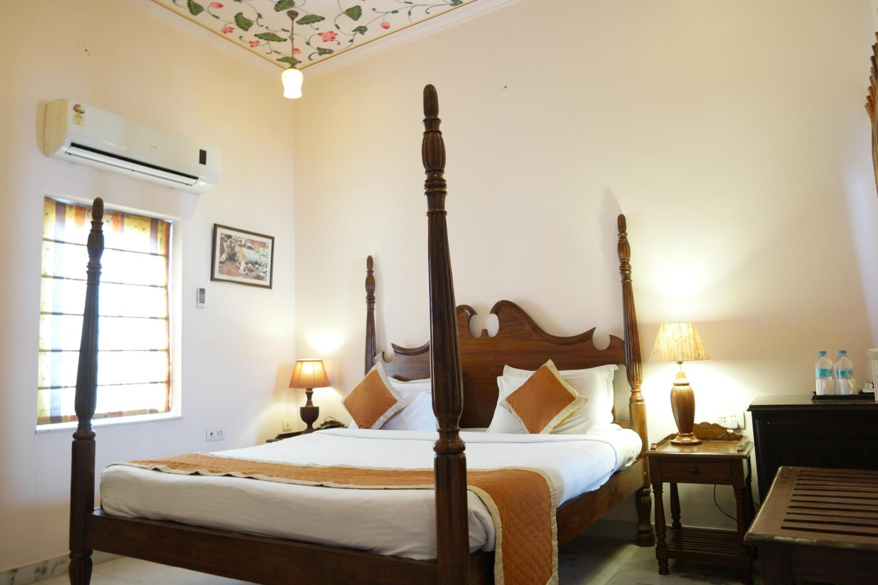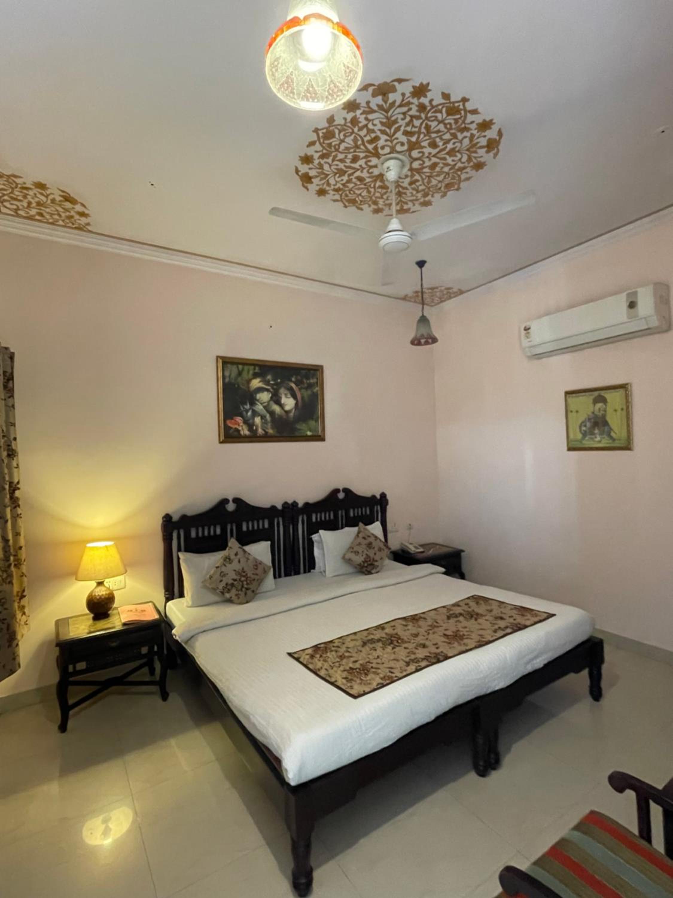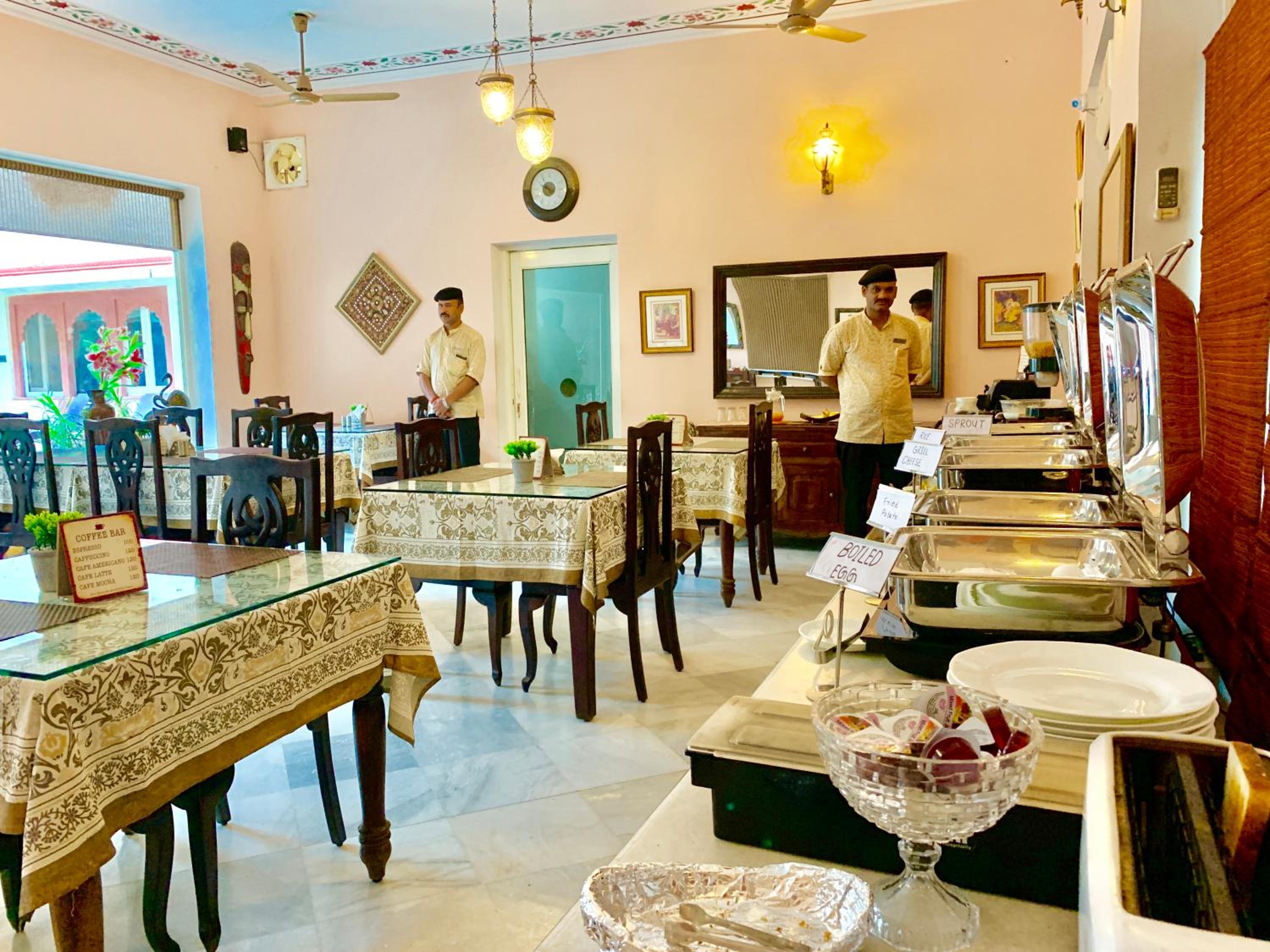 Suryaa Villa in Jaipur offers a blend of traditional wooden furnishings with modern amenities in its air-conditioned rooms. Each room is equipped with a seating area, flat-screen TV, and a minibar, ensuring a comfortable stay. The private bathrooms feature hot showers for relaxation after a day of exploring.