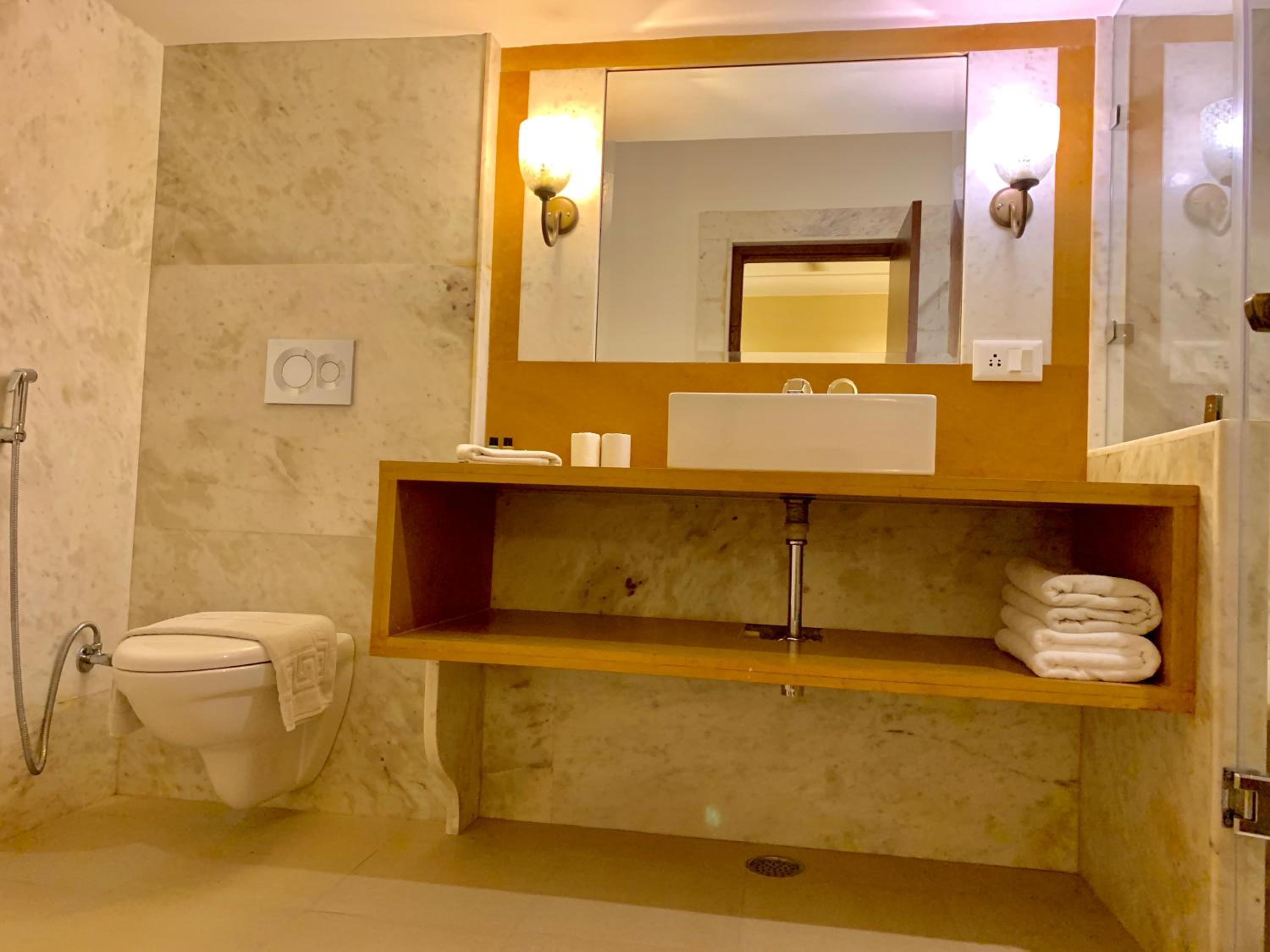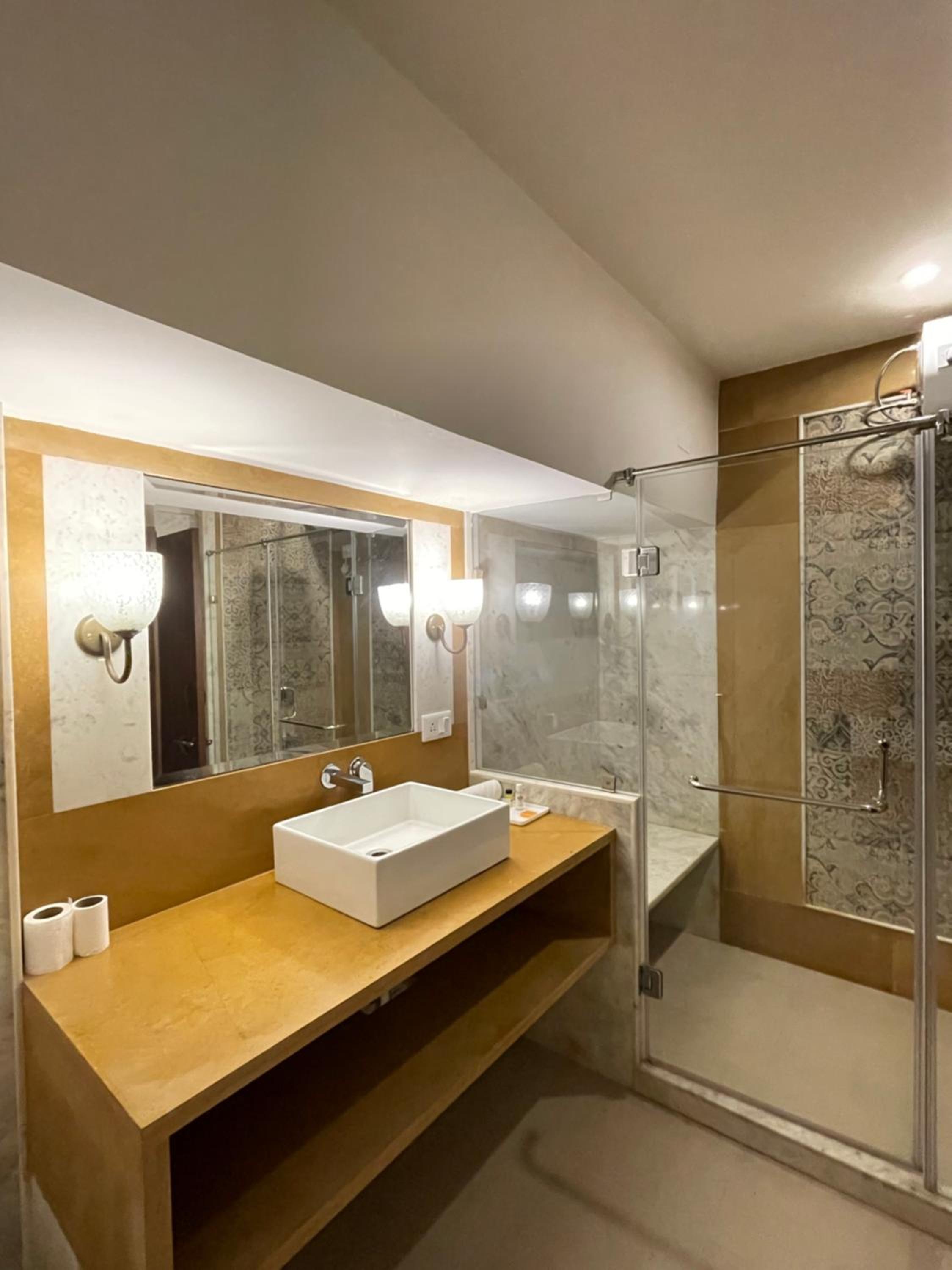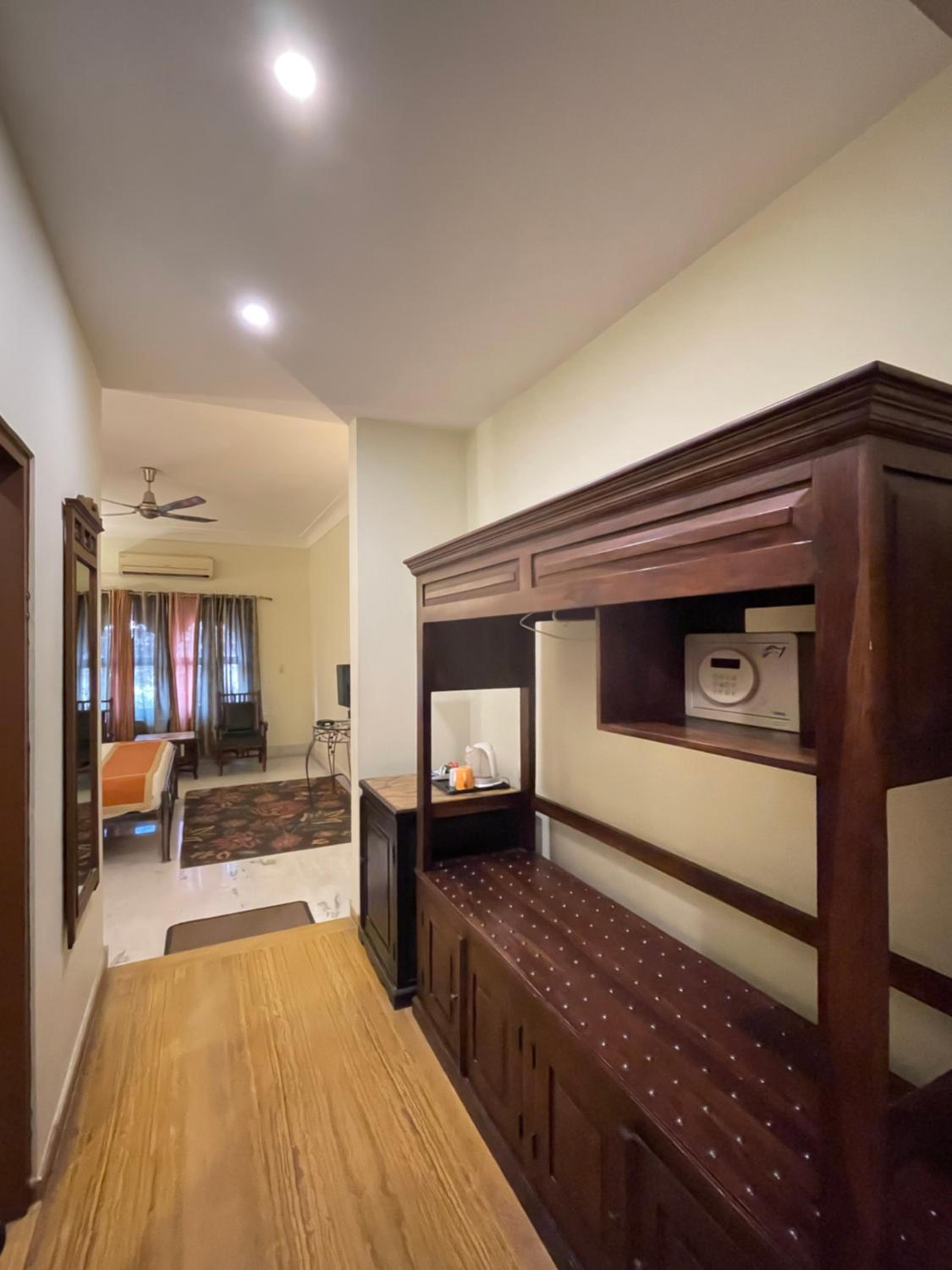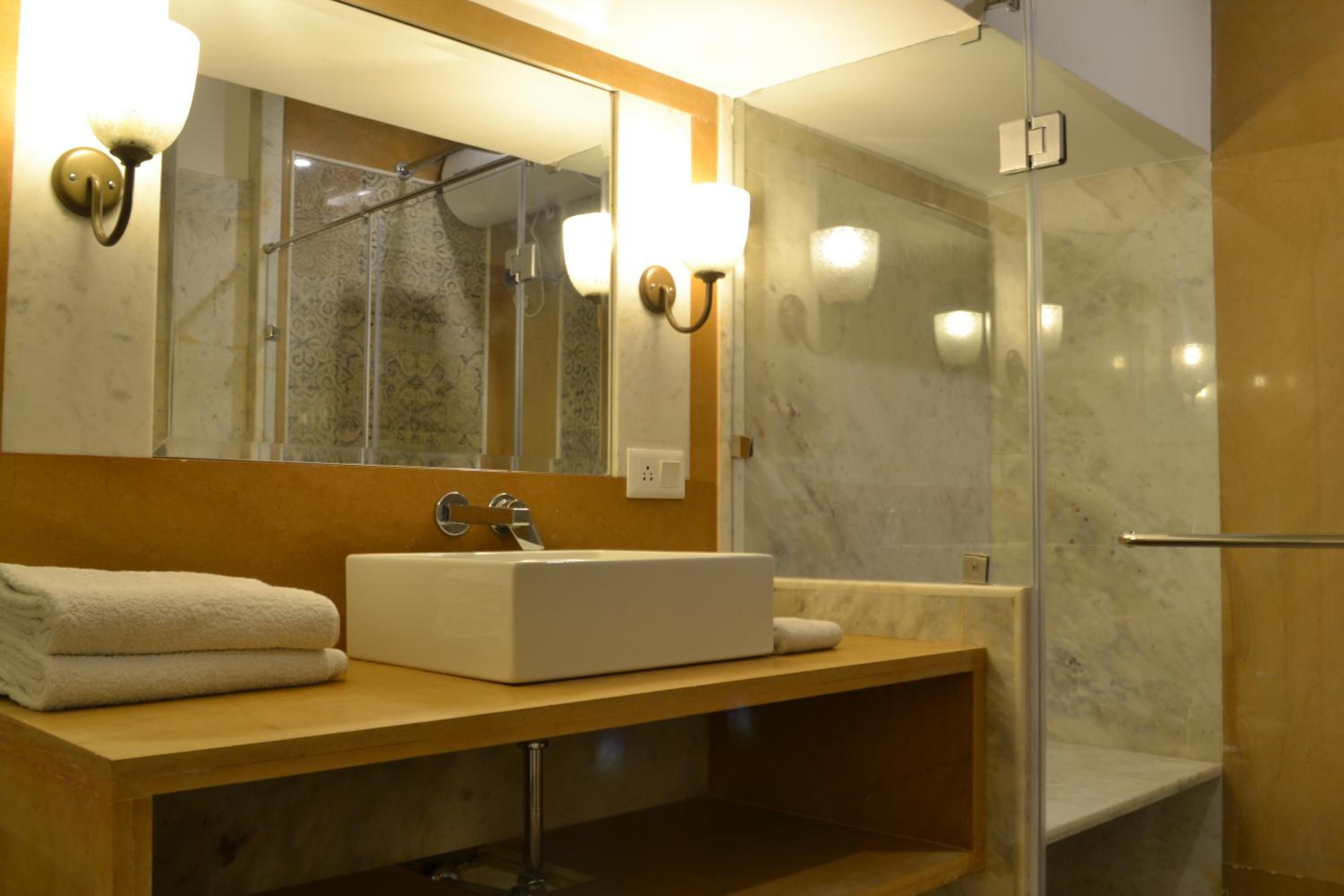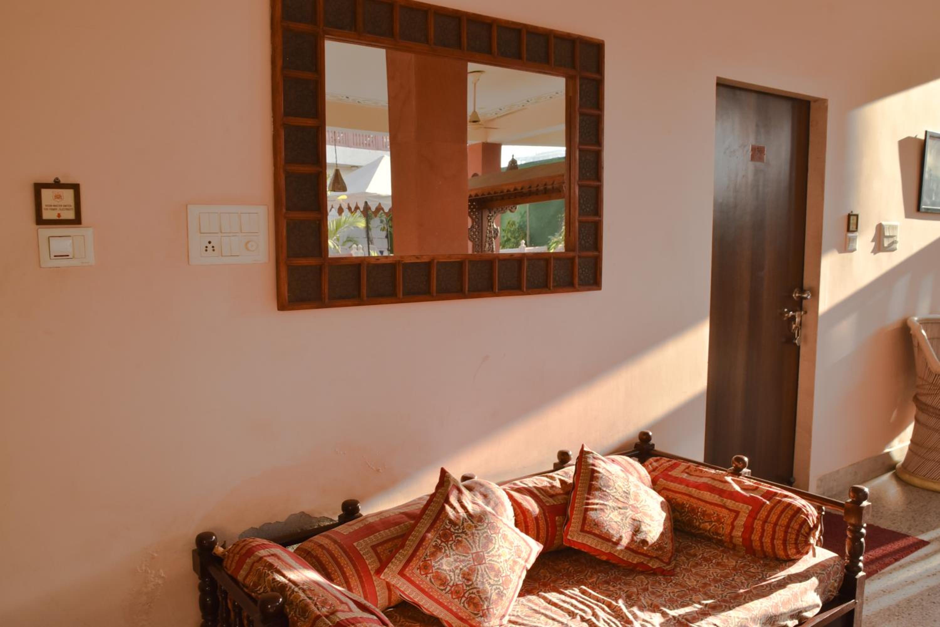 Suryaa Villa in Jaipur offers a blend of traditional wooden furnishings with modern amenities in its air-conditioned rooms. Each room is equipped with a seating area, flat-screen TV, and a minibar, ensuring a comfortable stay. The private bathrooms feature hot showers for relaxation after a day of exploring.