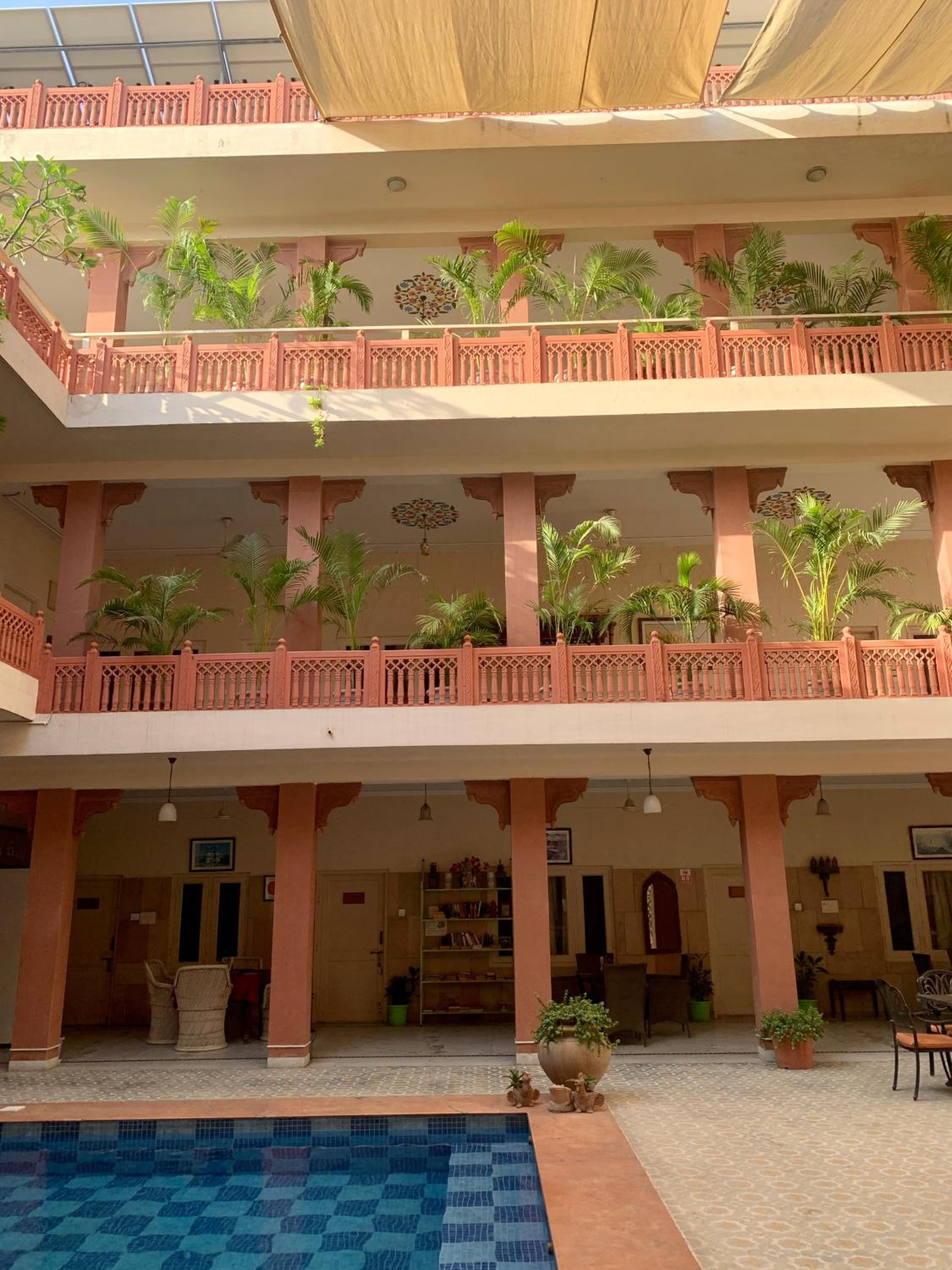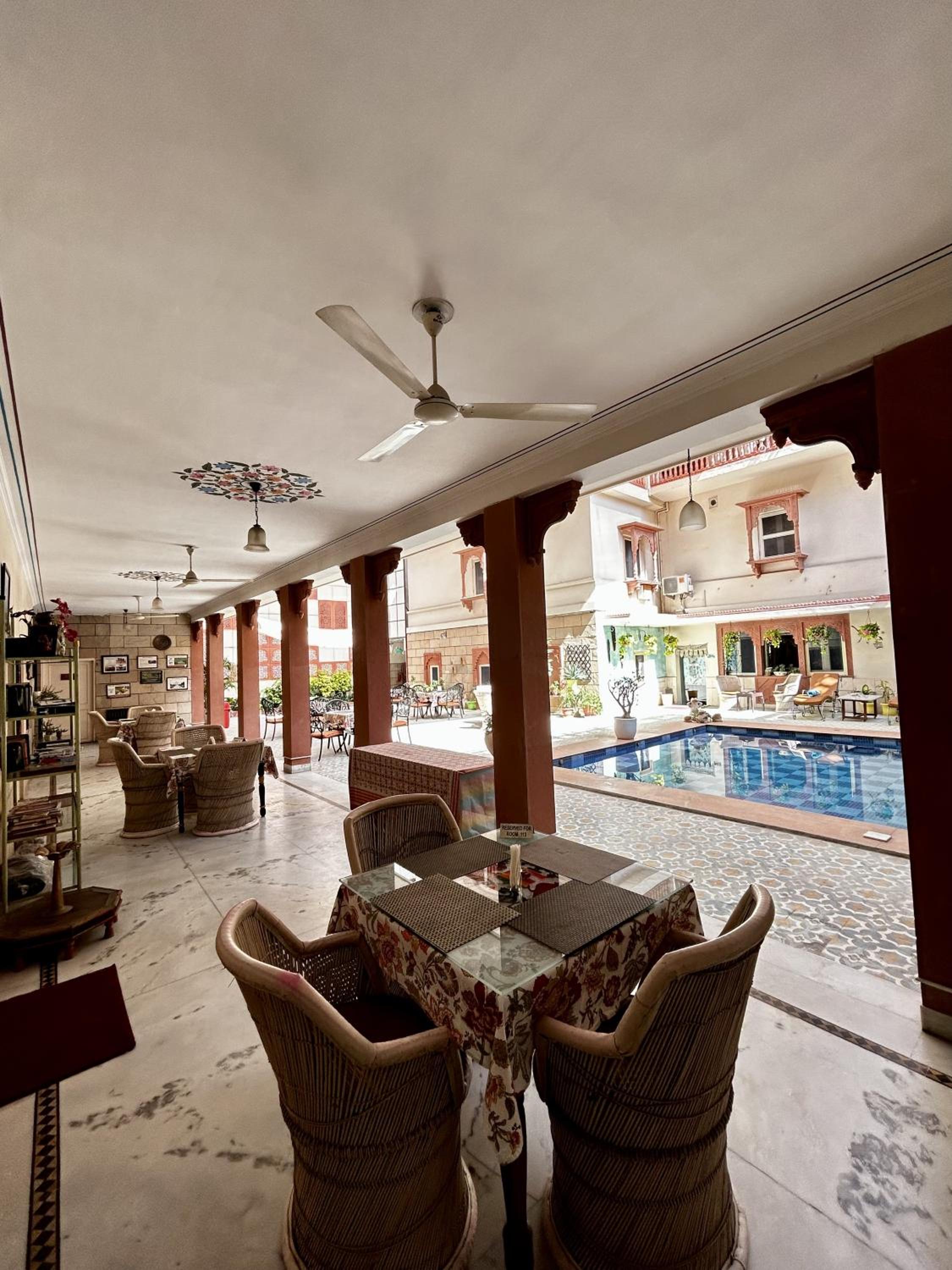 Fantastic open areas, some shaded, some sunny. Wonderful courtyard serving great food next to the pool.