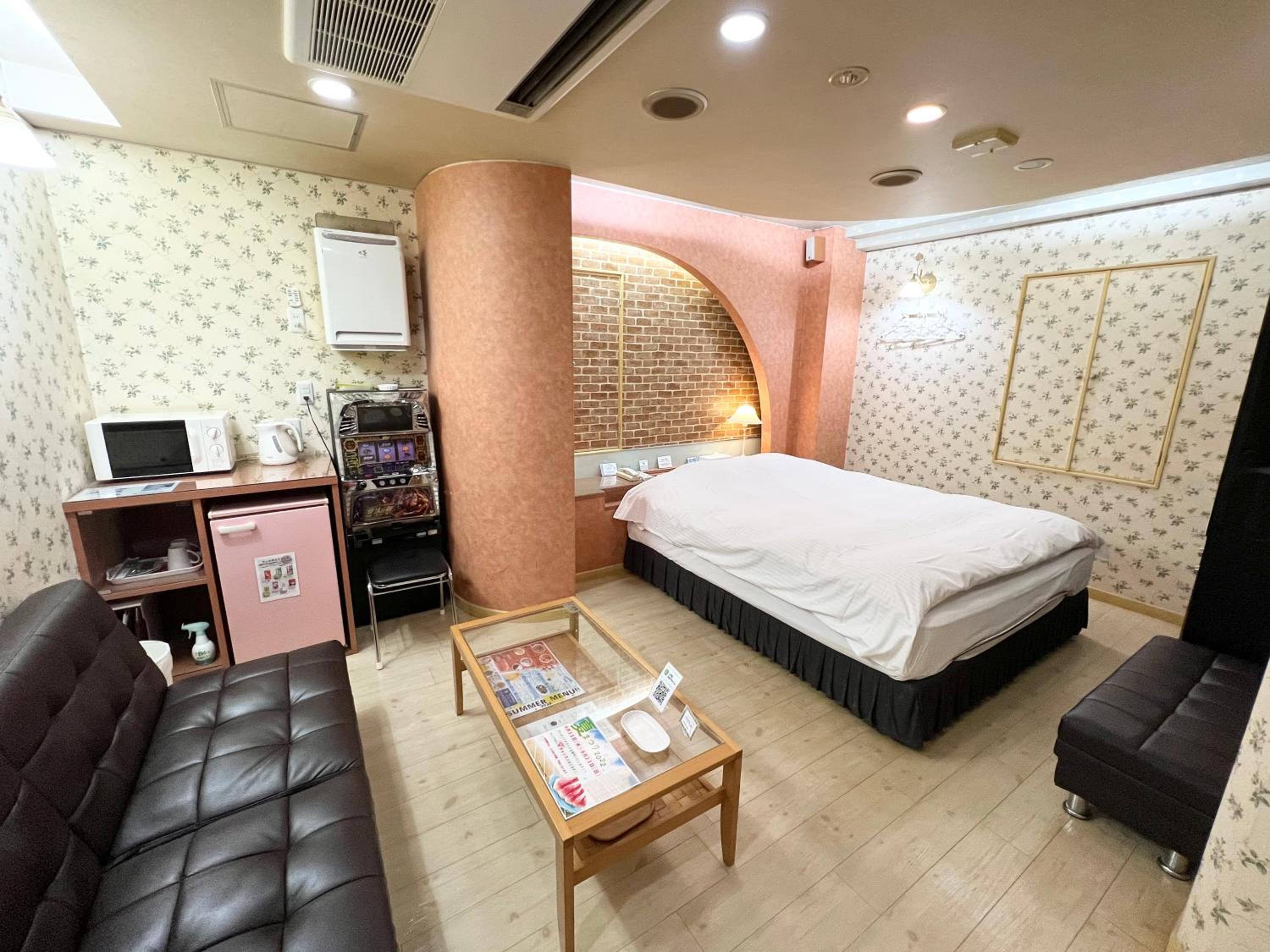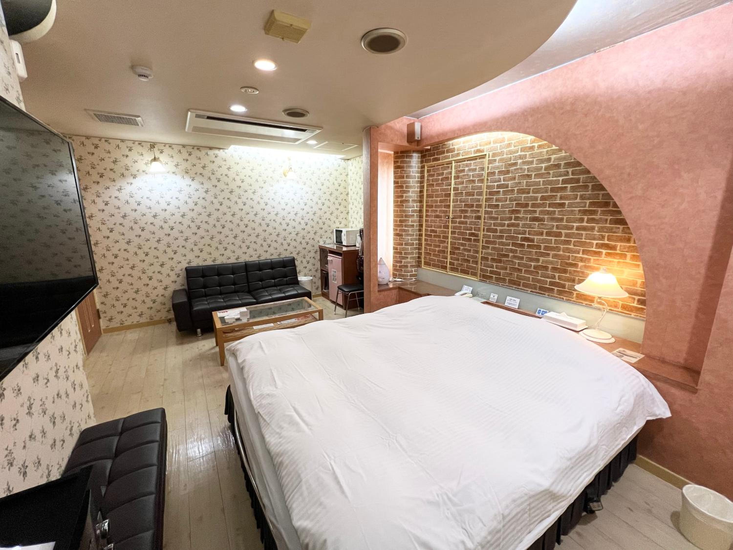Experience comfort and style at HOTEL MINT HOUSE -resort and relaxation-. Our 2-star love hotel offers well-appointed guest rooms with modern amenities including air conditioning, fridge, microwave, and free toiletries.