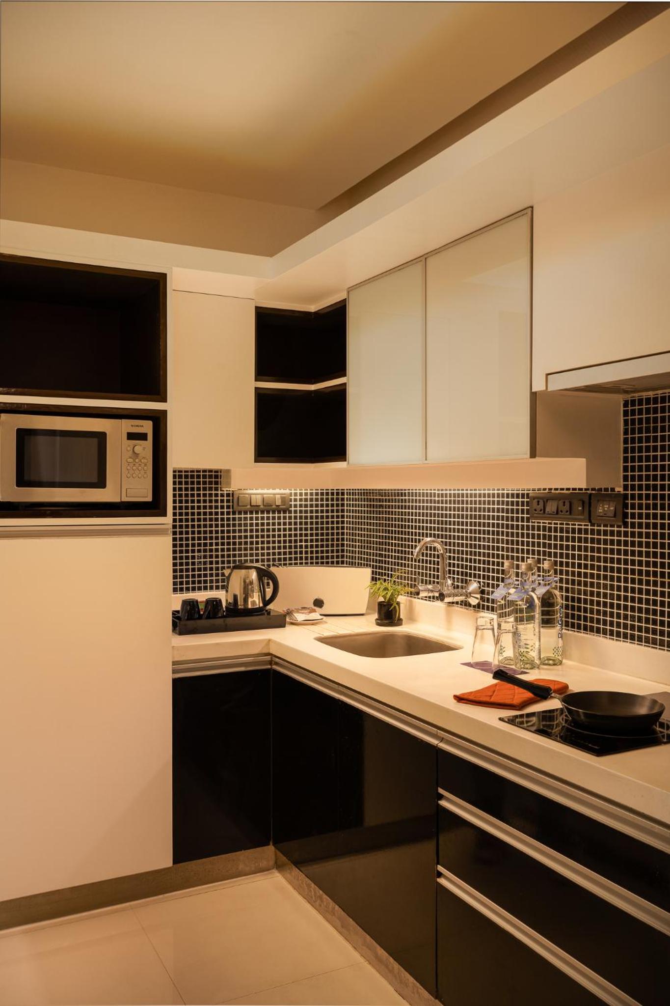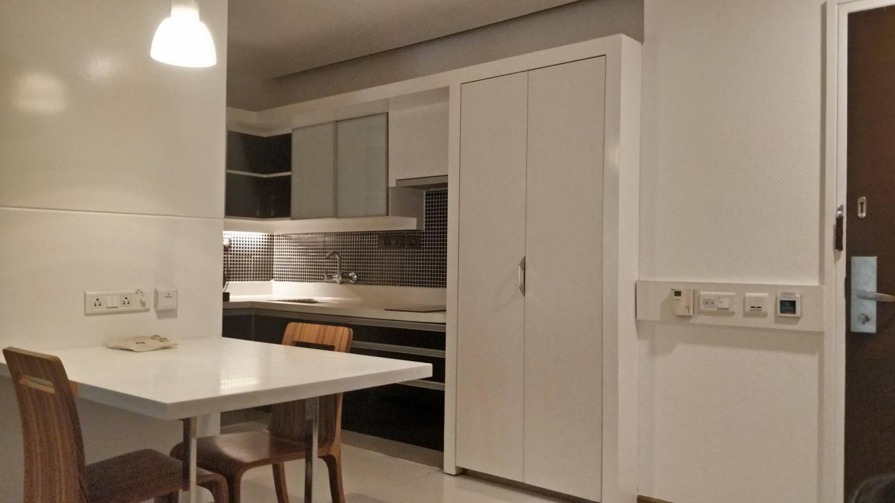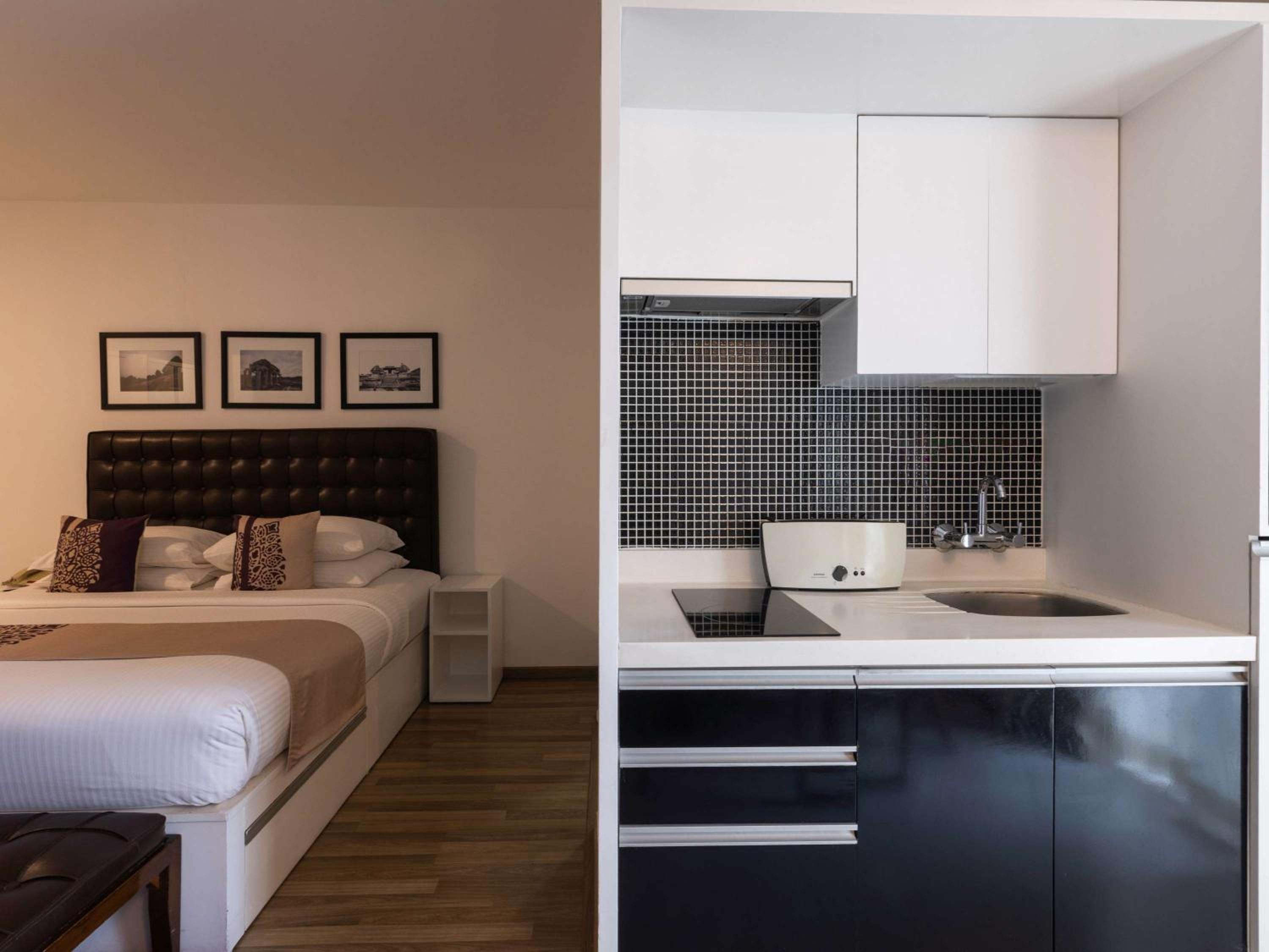 Really good location, away from chatter and noise, yet not far from shops and restaurants. Our suite was spacious. The bathroom had a nice shower stall. The kitchen section included a fridge, a cooktop, a microwave and a water purifier. Very convenient.