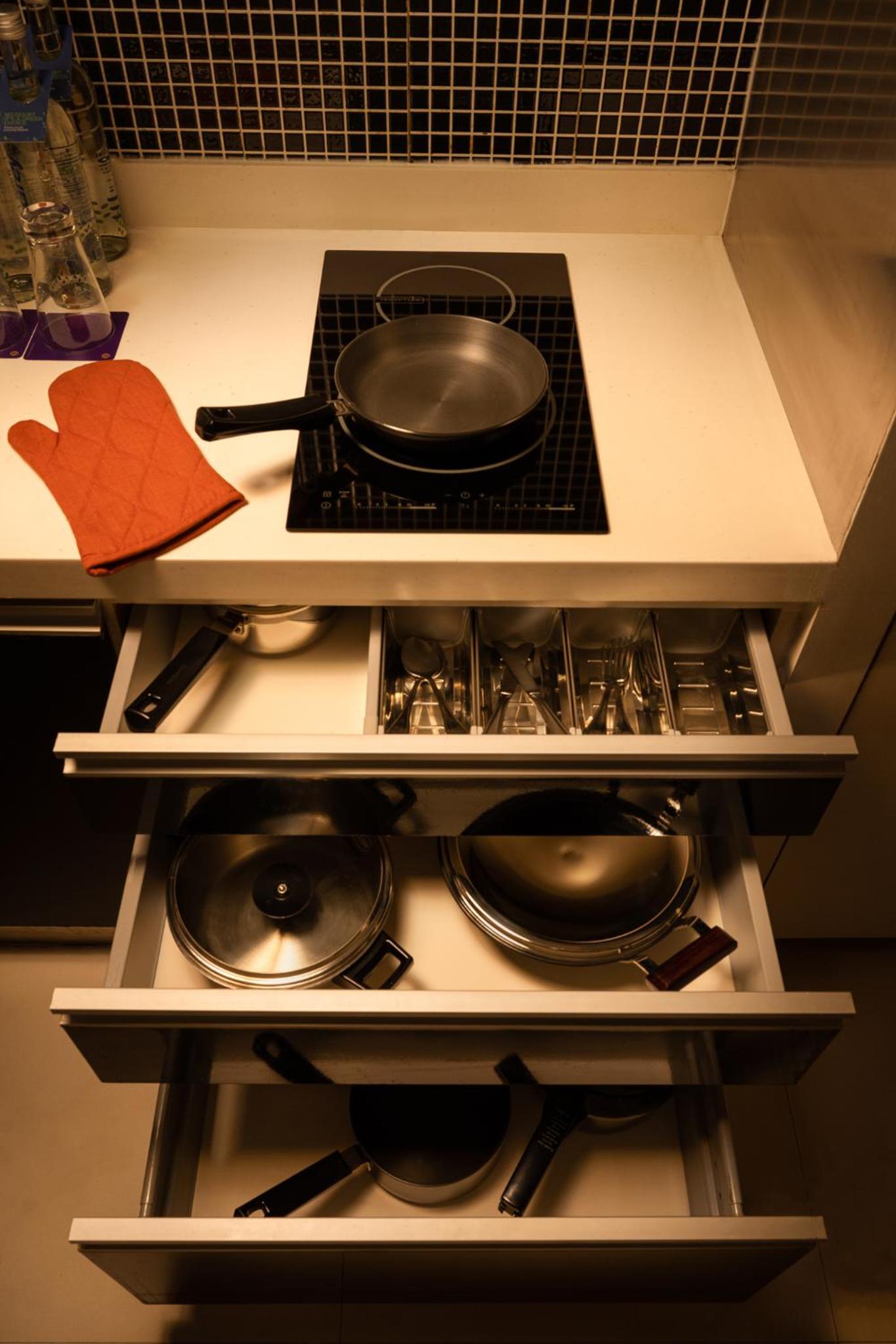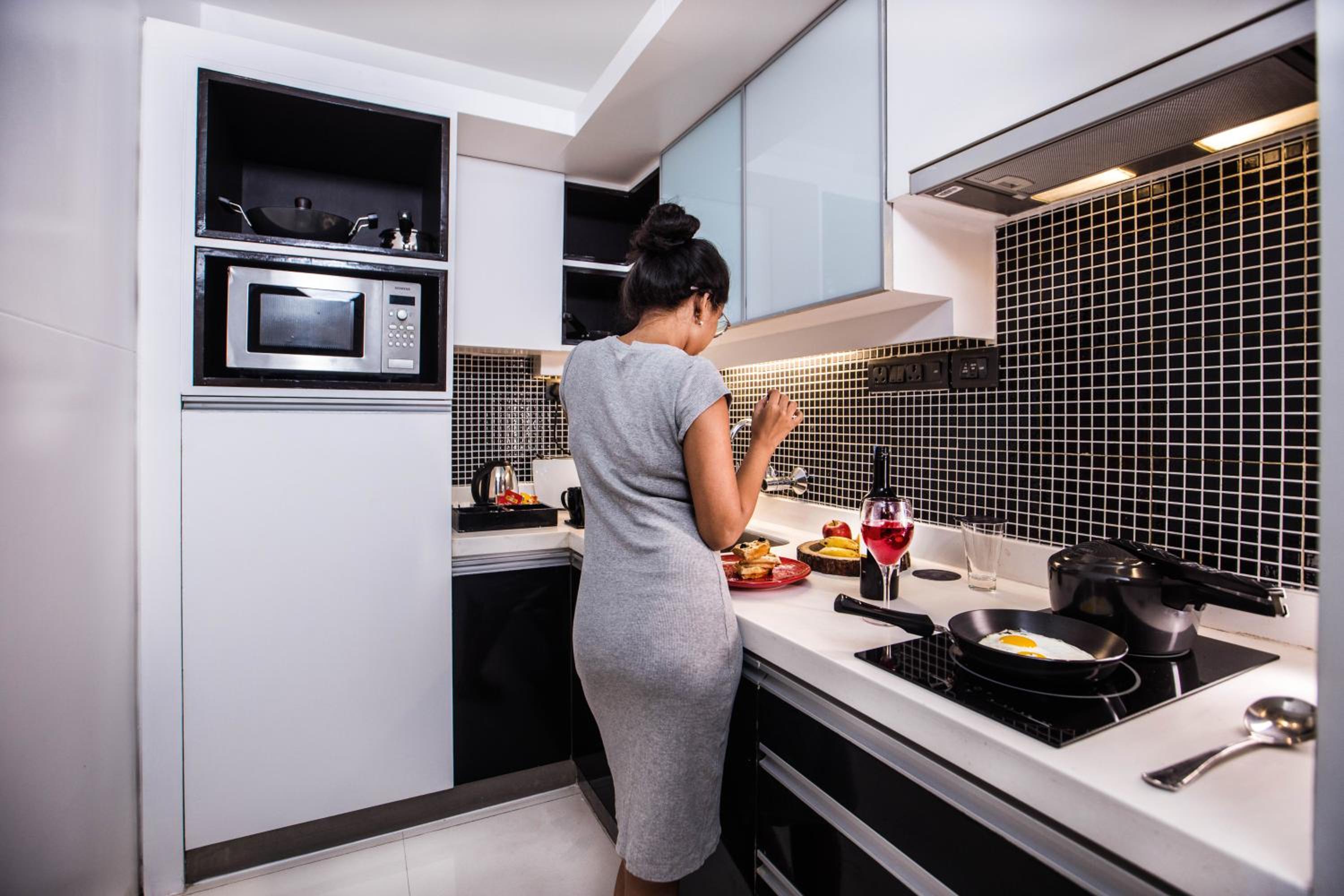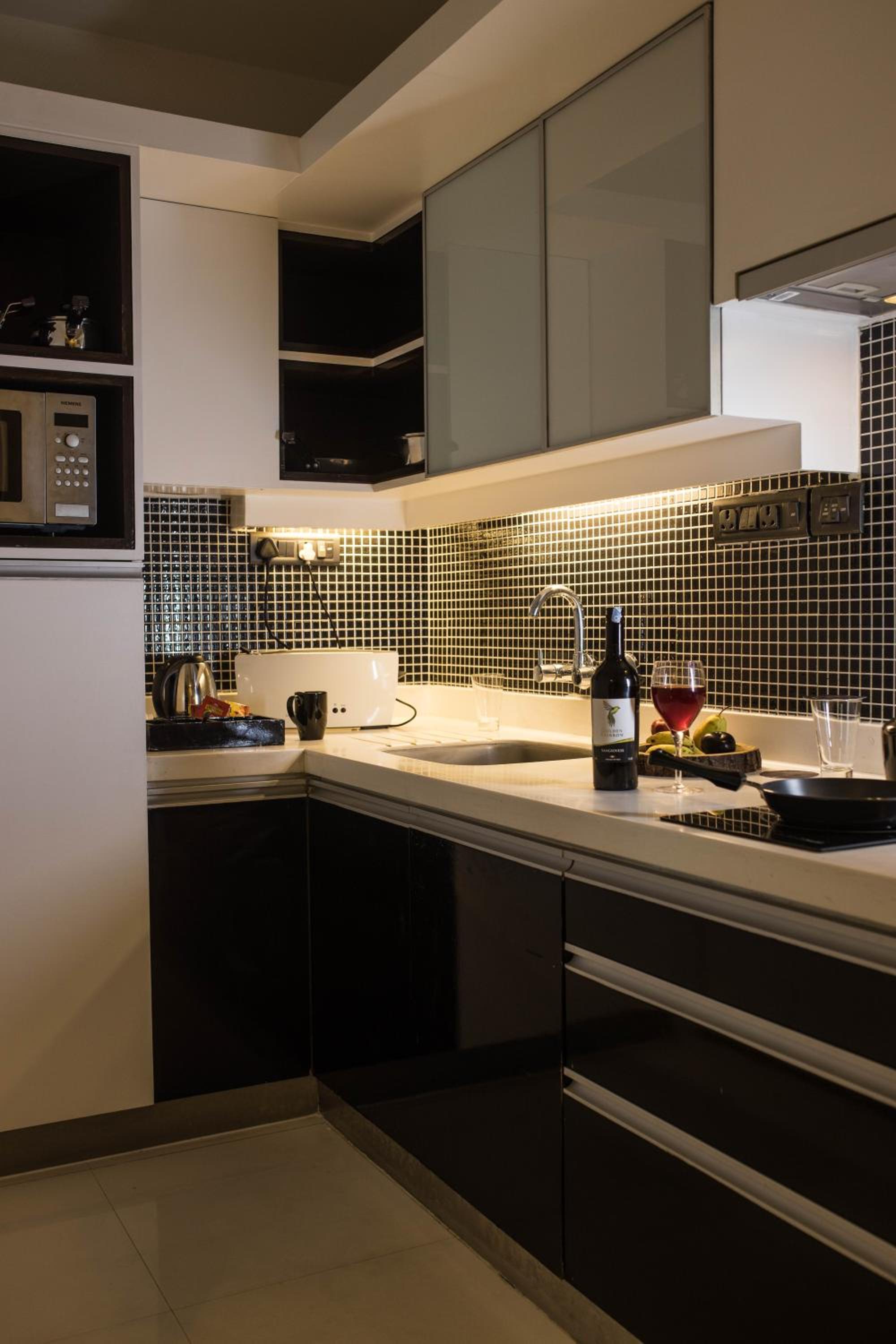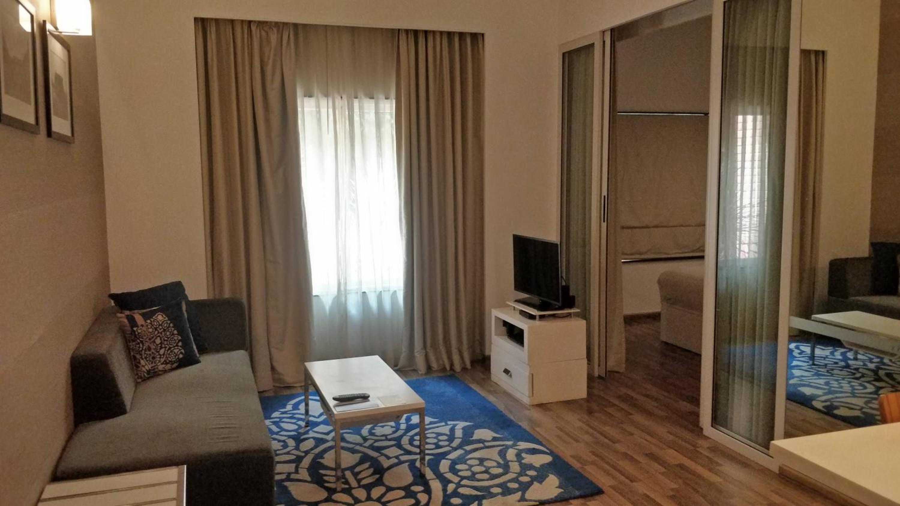 Really good location, away from chatter and noise, yet not far from shops and restaurants. Our suite was spacious. The bathroom had a nice shower stall. The kitchen section included a fridge, a cooktop, a microwave and a water purifier. Very convenient.