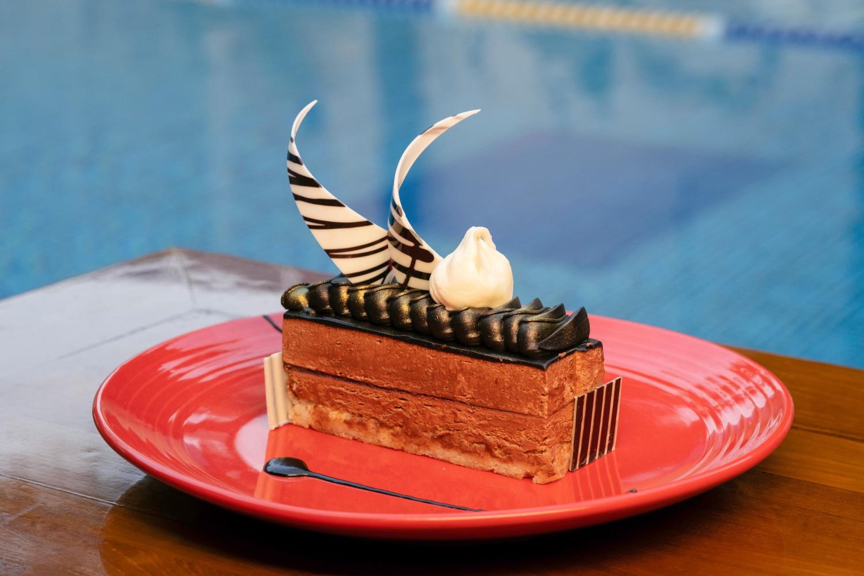 The Verandah restaurant is quite echoey, and the music volume and chosen 'genre' added to the noise levels. Would have preferred volume and type of music to be much more calming, especially at breakfast time. But there is an outdoor courtyard section which is a peaceful alternative! The Sunday brunch by the pool (with a generous variety of buffet foods) had a live singer, who was very good but again the speakers were on such high volume it was almost impossible to hear what our guests were saying. We moved tables to an area below the terrace and sat behind a speaker to solve this....