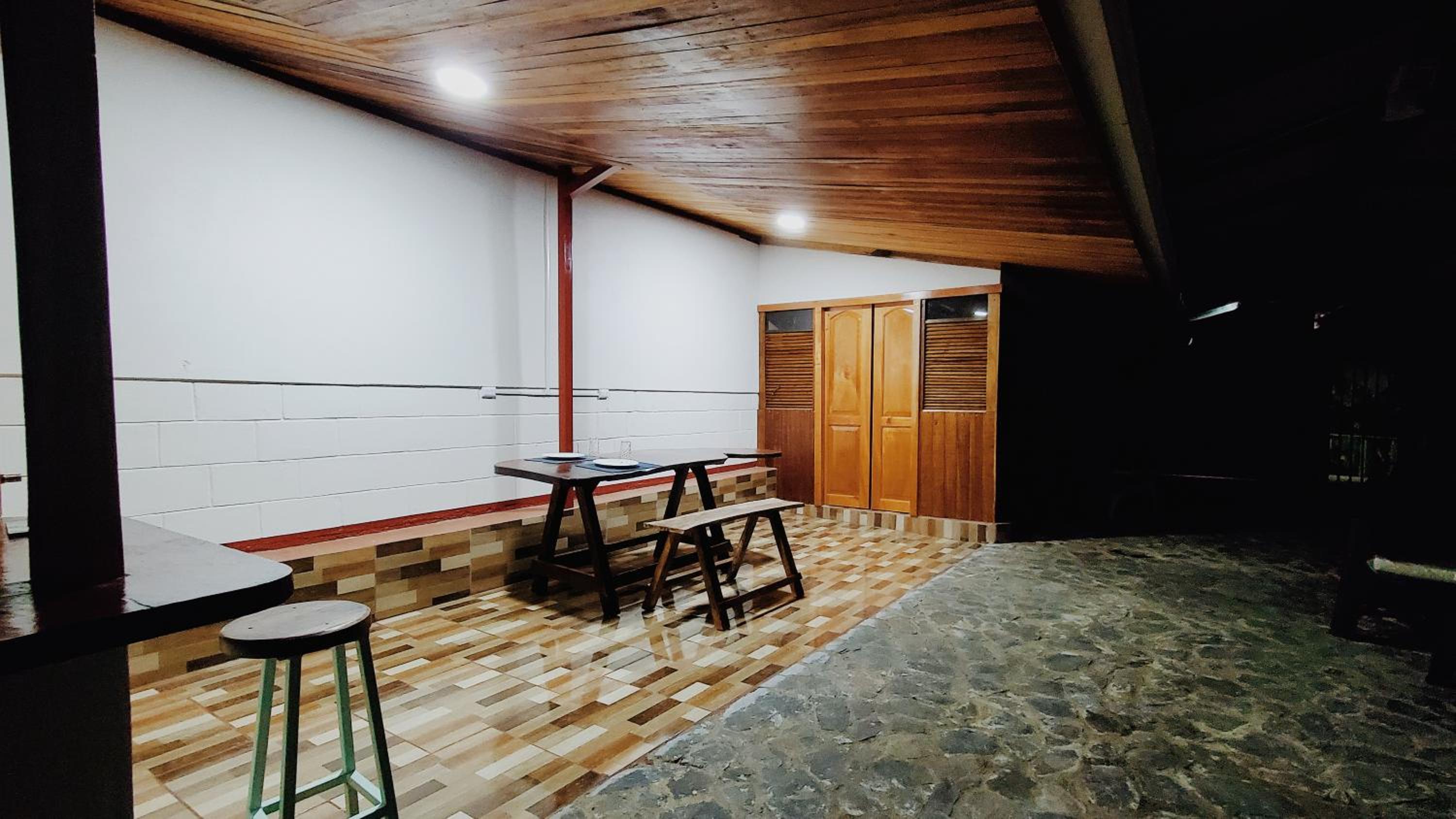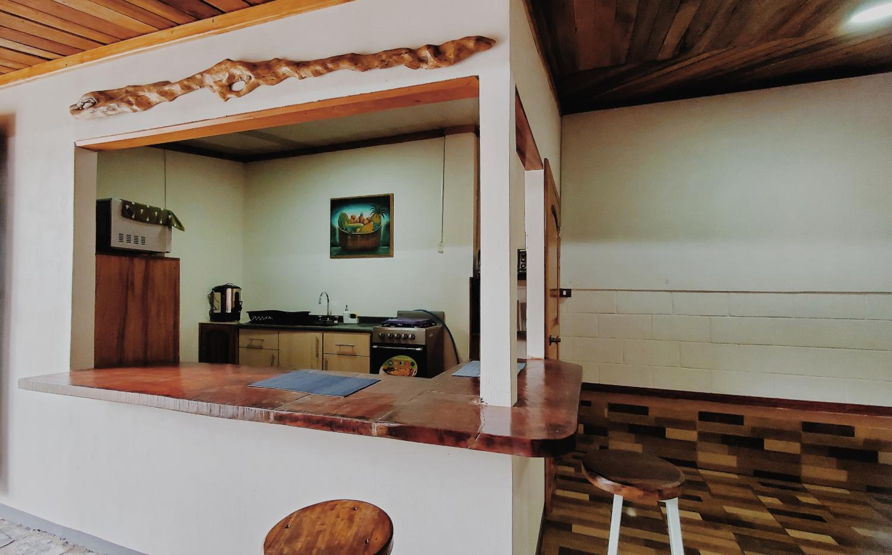 The location is a nice house, 20 minutes from Santa Elena. We were traveling as a group of 6 (3 couples) and had the place to ourselves but believe there are one or two additional rooms. Aside from your private room with bathroom, you share a kitchen and sitting area. We spent our evenings have dinner, which we cooked in the shared kitchen, hanging around the dinner table and sitting area. It was really lovely. The location is super relaxed with very little traffic, some wild life to spot from the garden, but not completely off the grid. We had hot water in the shower, steady WIFI and even enough cell service to call our stay-at-homes. The host is very friendly and helpful.